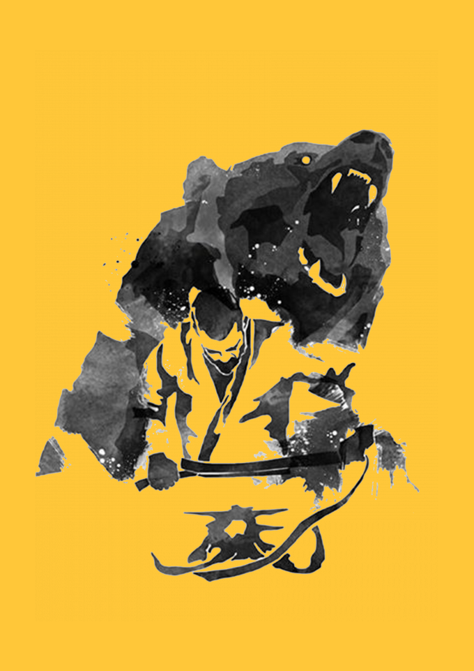Estampa inspirada na força de espirito de um lutador de arte marcial