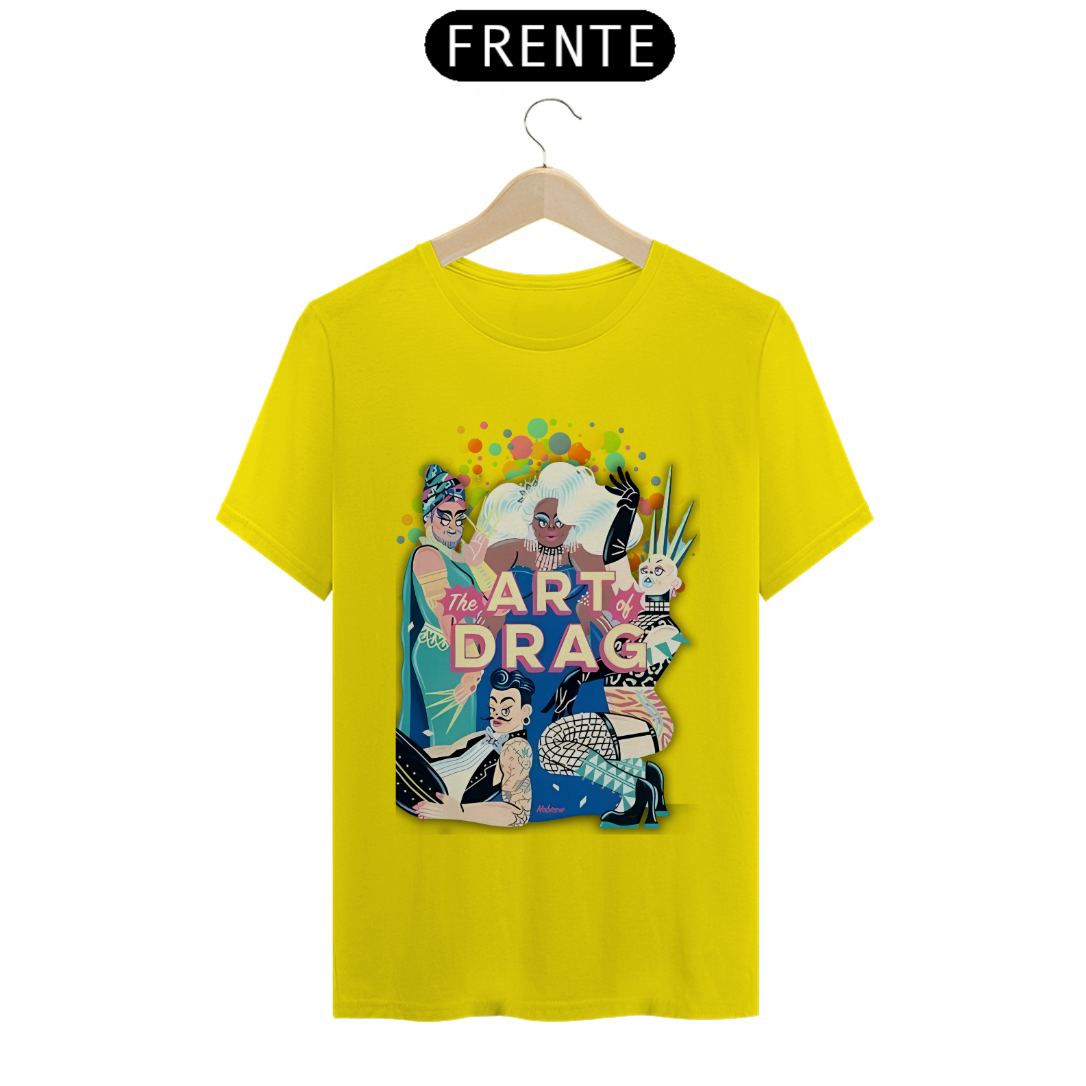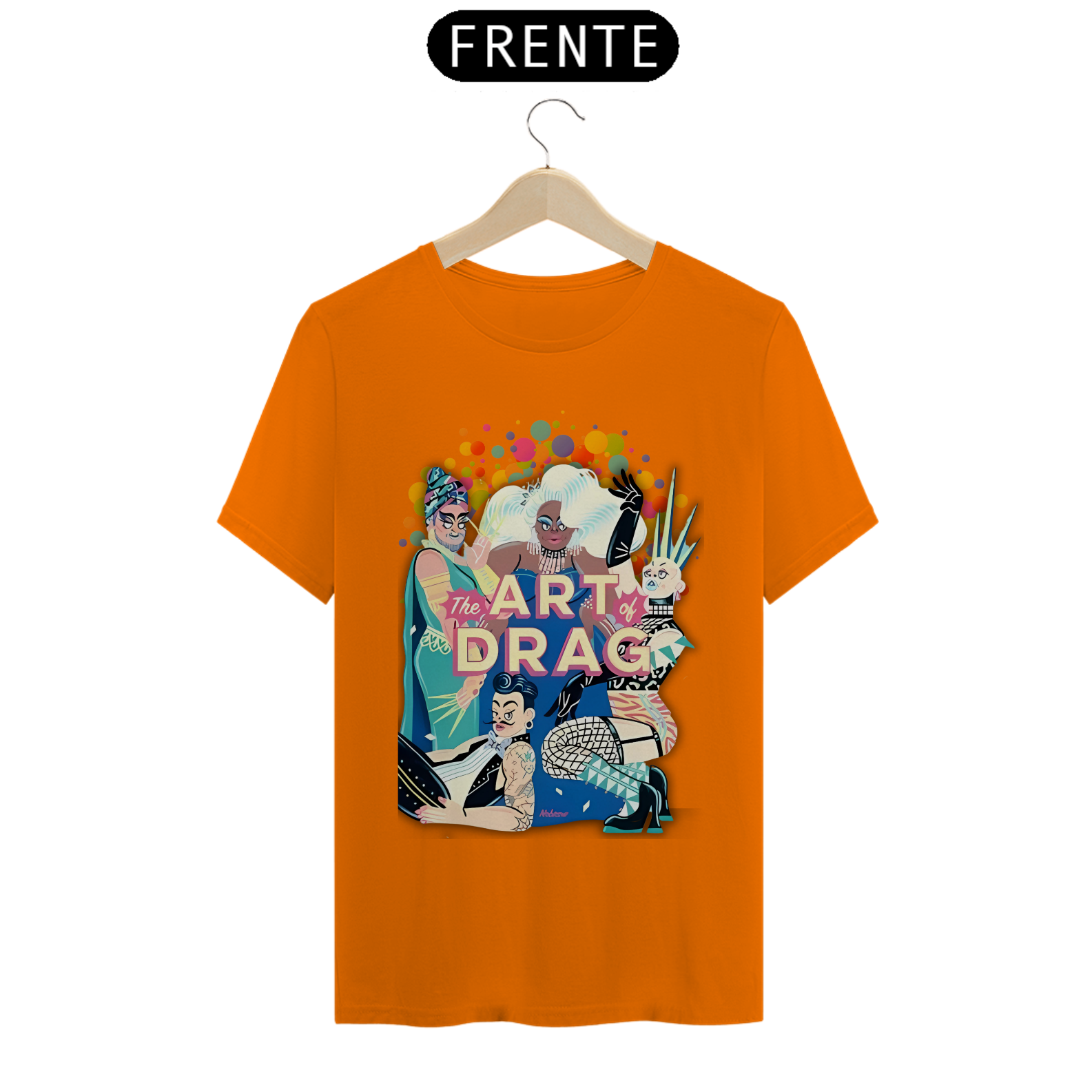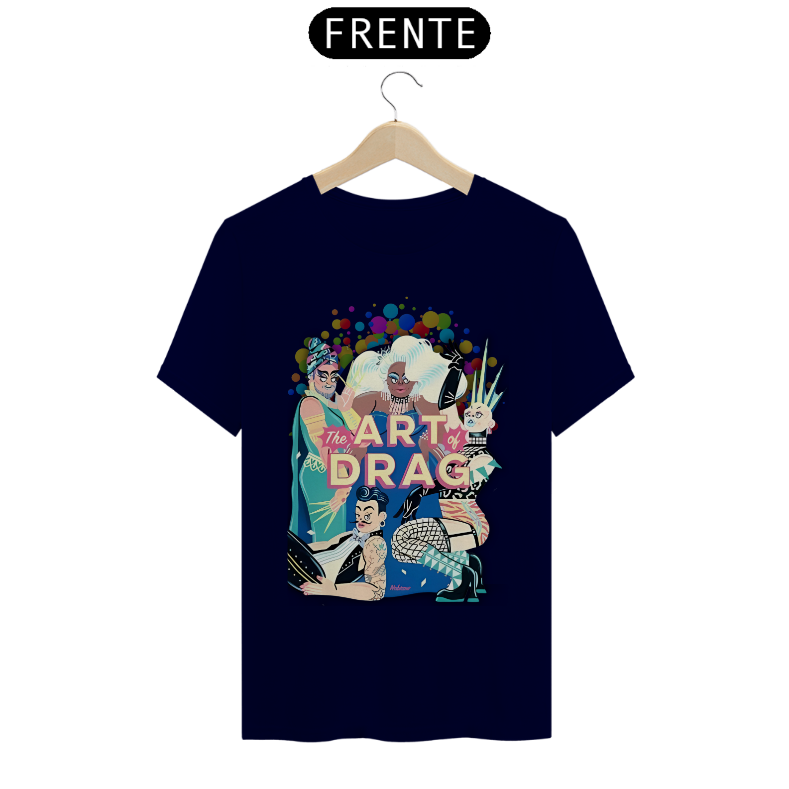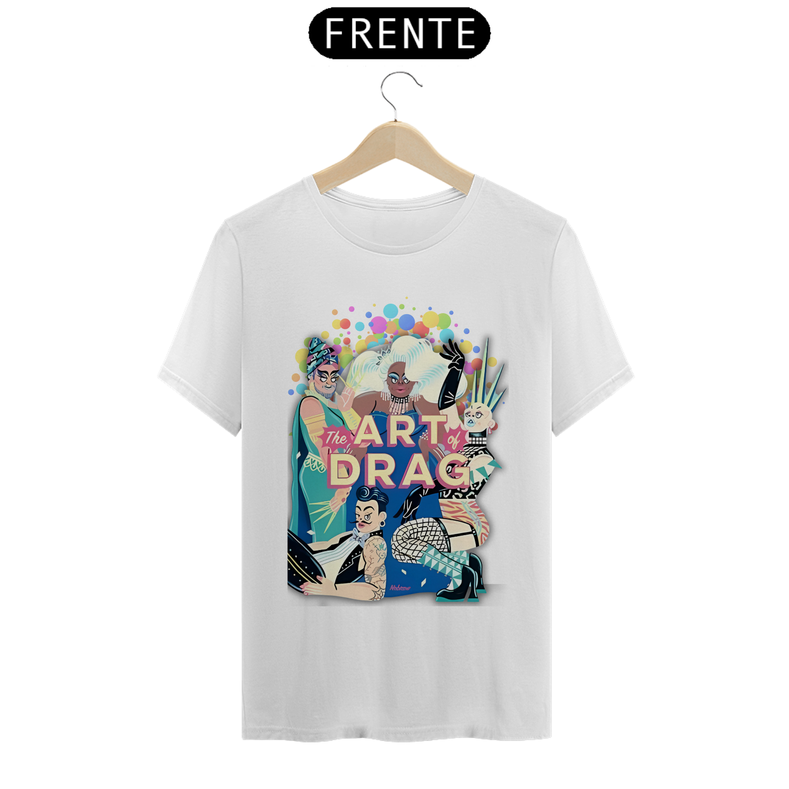 A estampa "Arte Drag" celebra a vibrante e expressiva cultura Drag dentro da comunidade LGBT. Com uma ilustração dinâmica e cheia de cores, esta estampa apresenta quatro Drag Queens, cada uma com seu estilo único e marcante, simbolizando a diversidade e a arte de se reinventar. As figuras estão cercadas por um fundo colorido de bolhas, realçando ainda mais a energia e o brilho do universo Drag. A frase "The Art of Drag" em destaque, em um tom rosado, reforça a importância e a beleza desta forma de expressão artística. A camiseta "Arte Drag" é perfeita para quem deseja expressar seu apoio e admiração pela cultura Drag, trazendo um toque de glamour e criatividade ao seu guarda-roupa, enquanto celebra a diversidade e a inclusão.