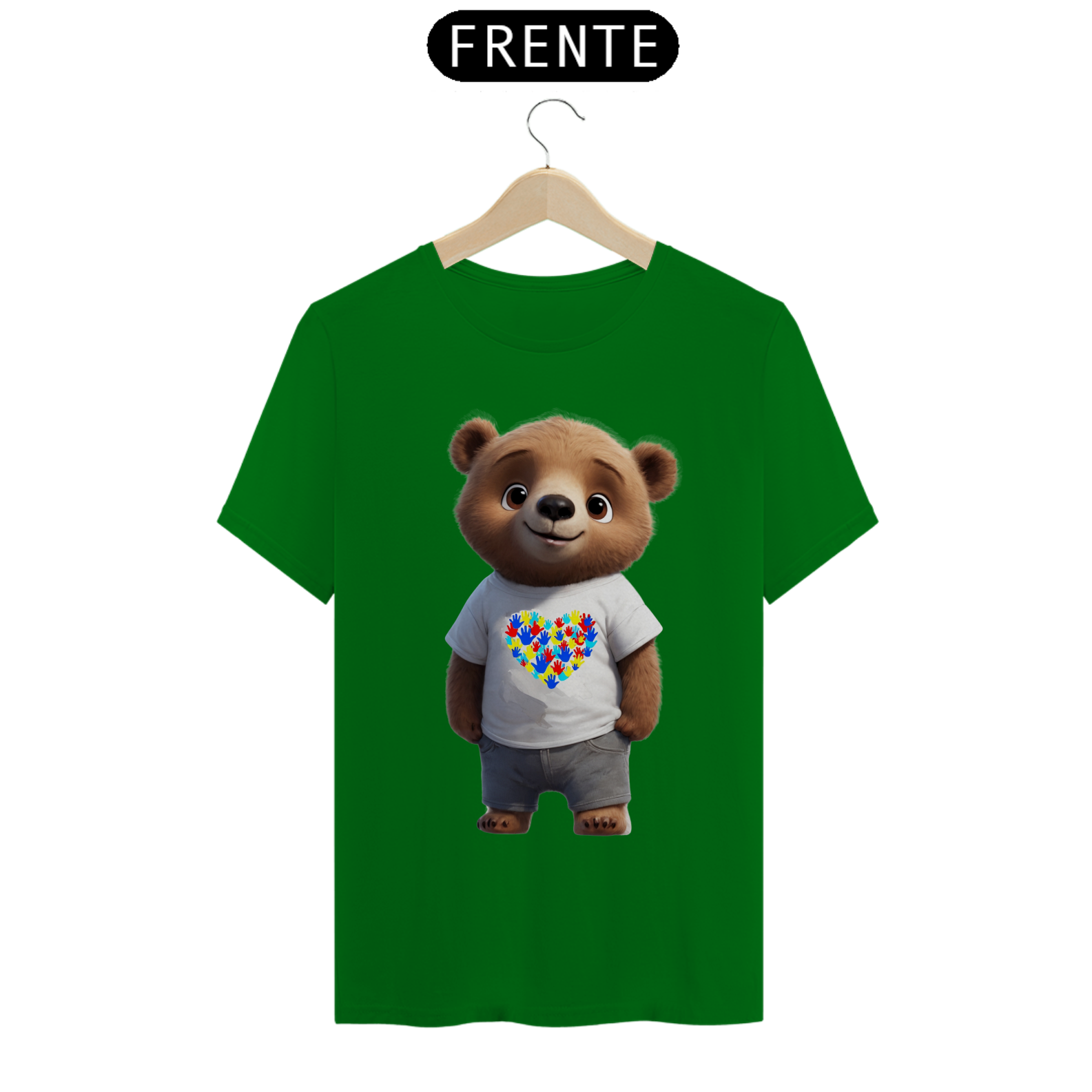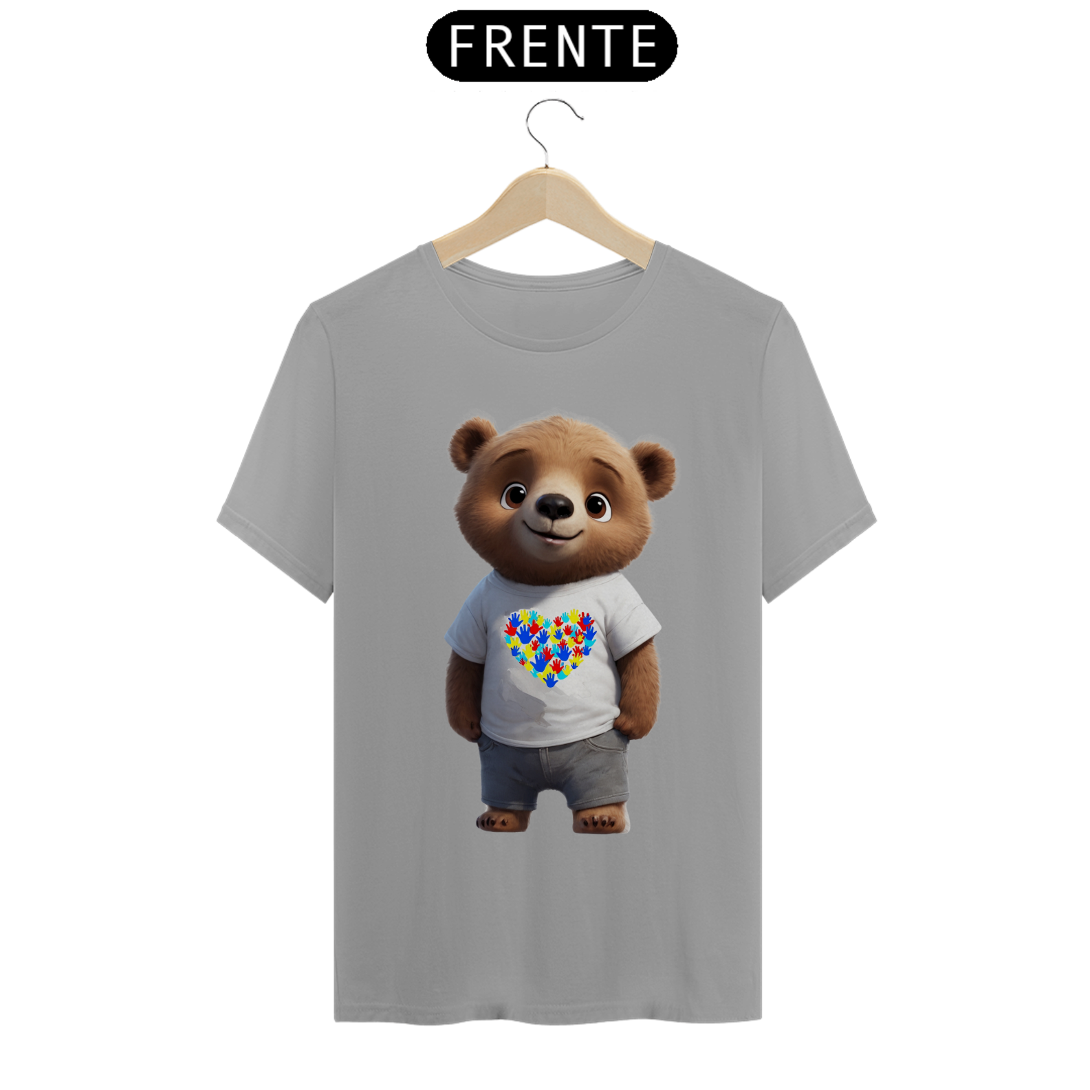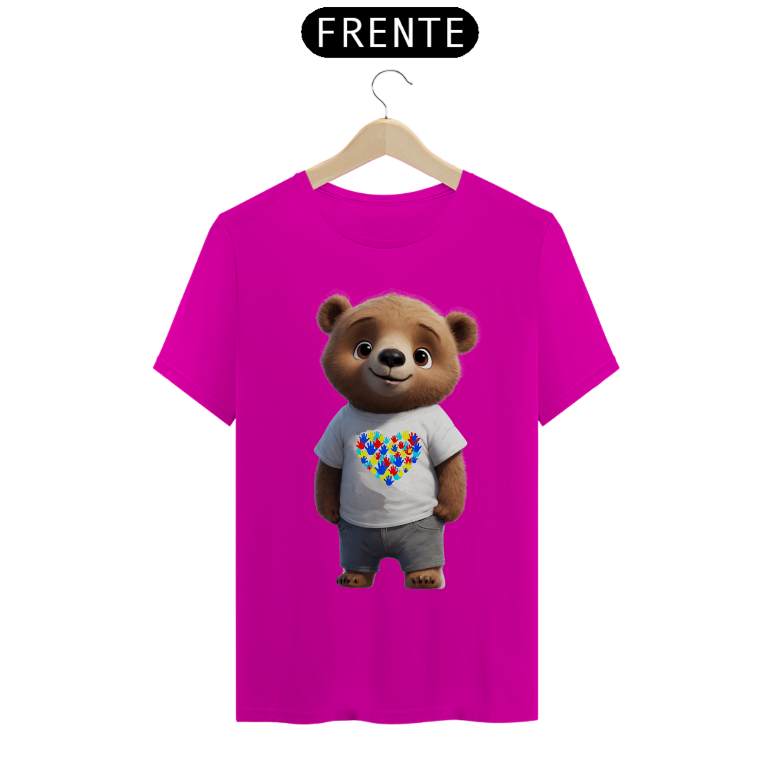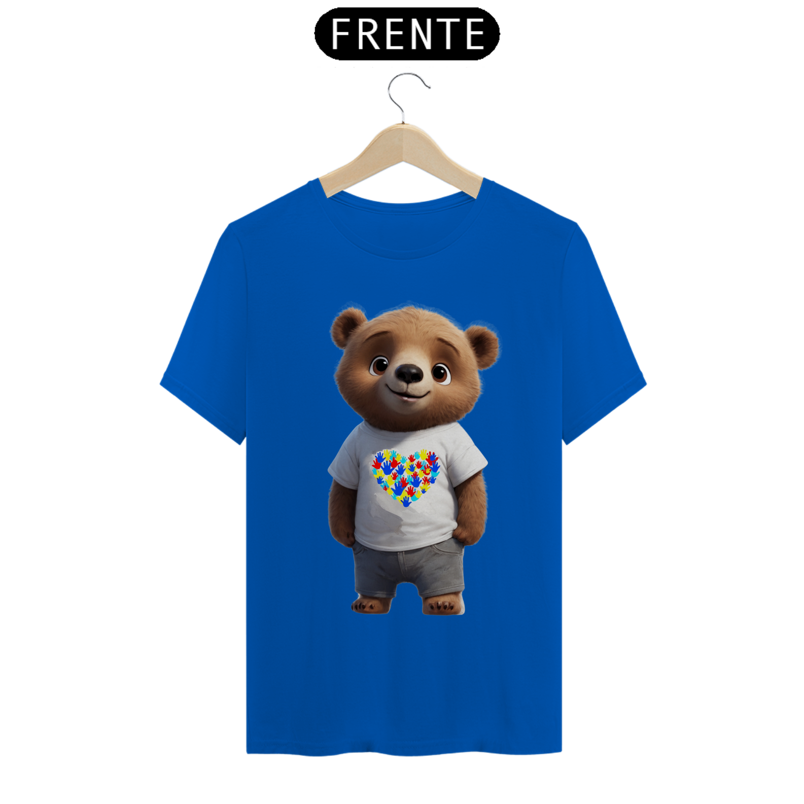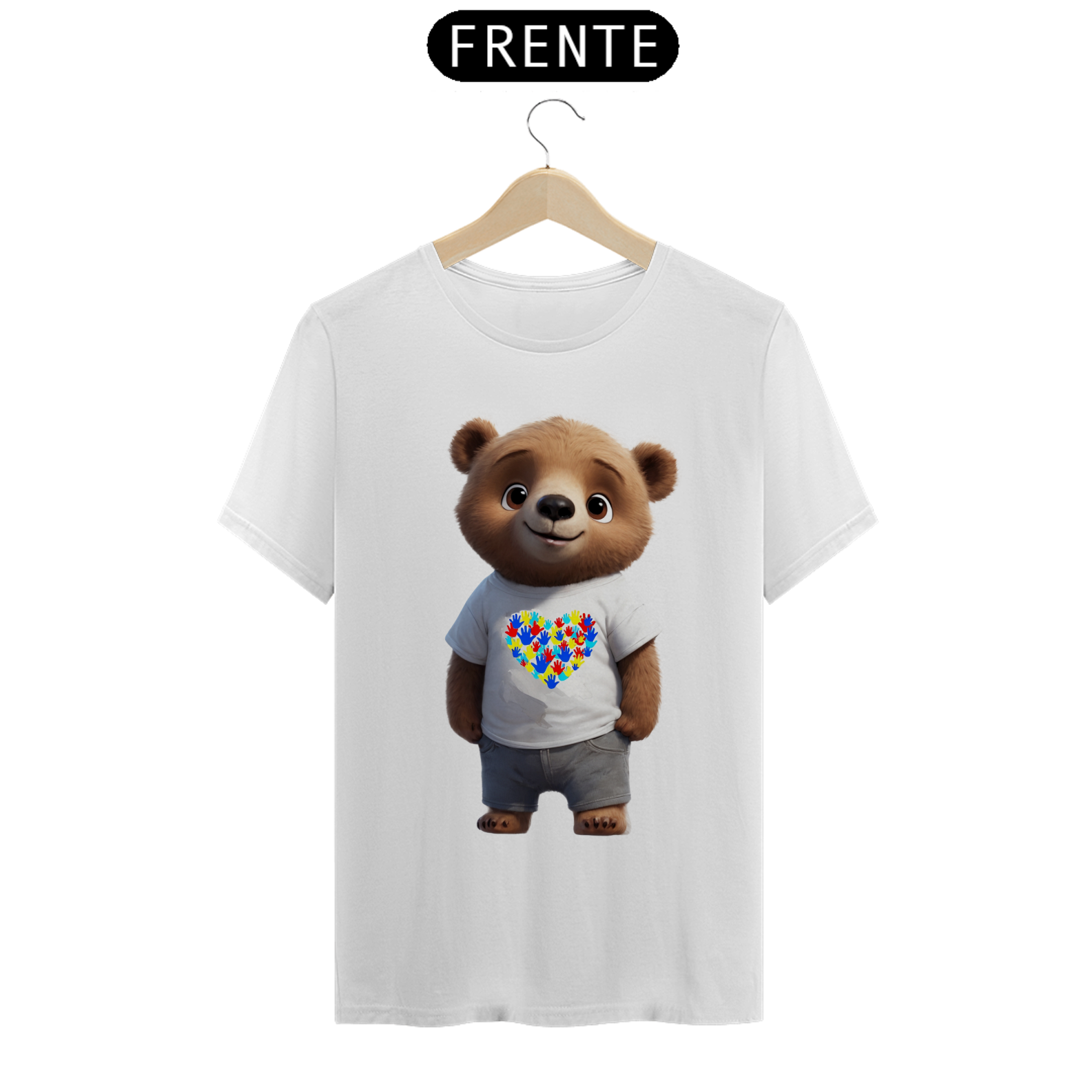 Esta camiseta é uma bela expressão de solidariedade e inclusão, apresentando um ursinho vestindo uma camiseta branca com um coração formado por impressões de mãos, símbolo do autismo. A imagem transmite uma mensagem de amor e aceitação, tanto para a comunidade Gay Bear quanto para aqueles que estão no espectro do autismo. Uma declaração de apoio à diversidade e à empatia, esta estampa é perfeita para aqueles que buscam promover a conscientização e a aceitação mútua.