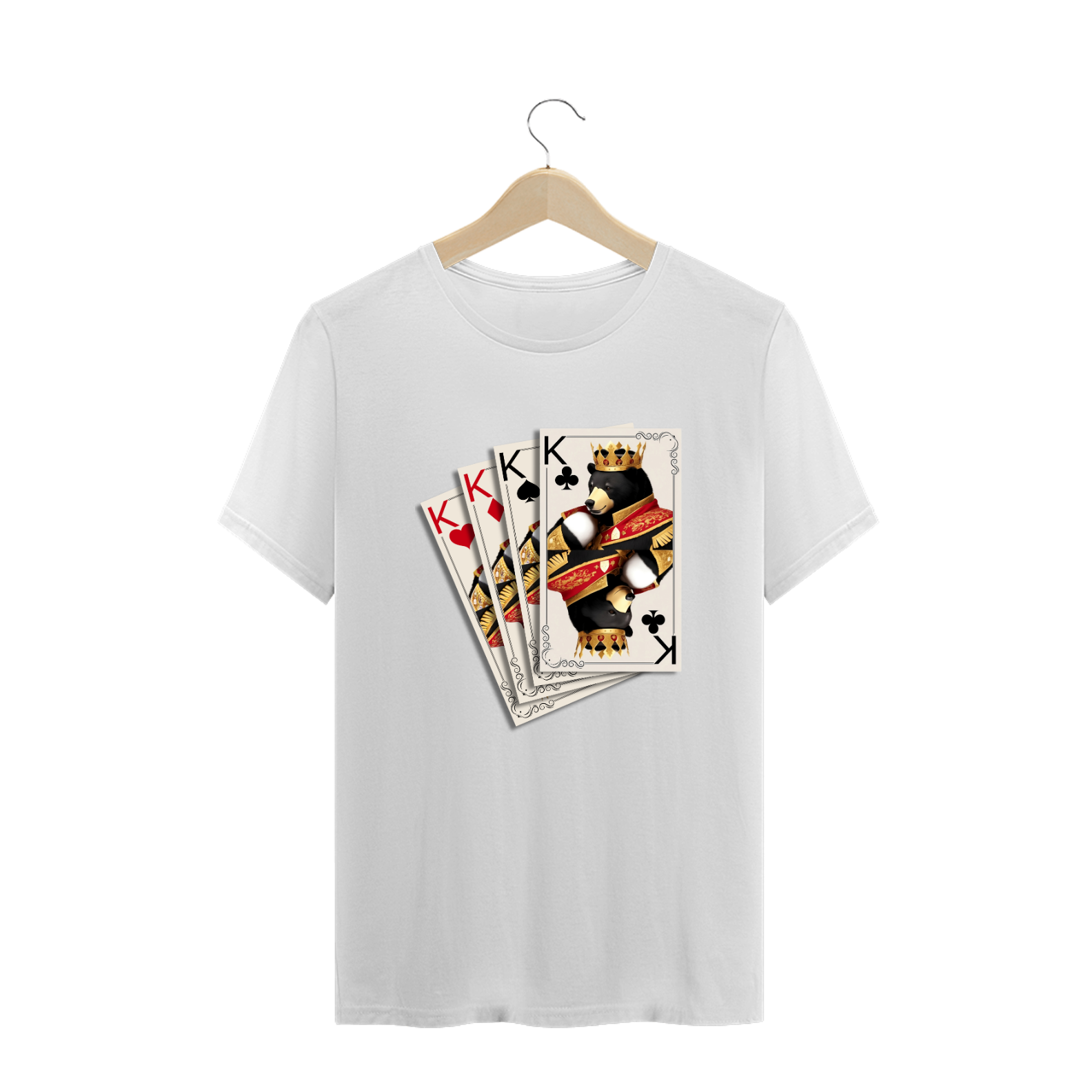 Apresentamos uma estampa incrivelmente criativa e significativa, especialmente projetada para a vibrante comunidade Gaybear. Neste design único, a imagem de quatro cartas de baralho, todas representando Reis de diferentes naipes, é a personificação visual da unidade, poder e diversidade dentro da comunidade.