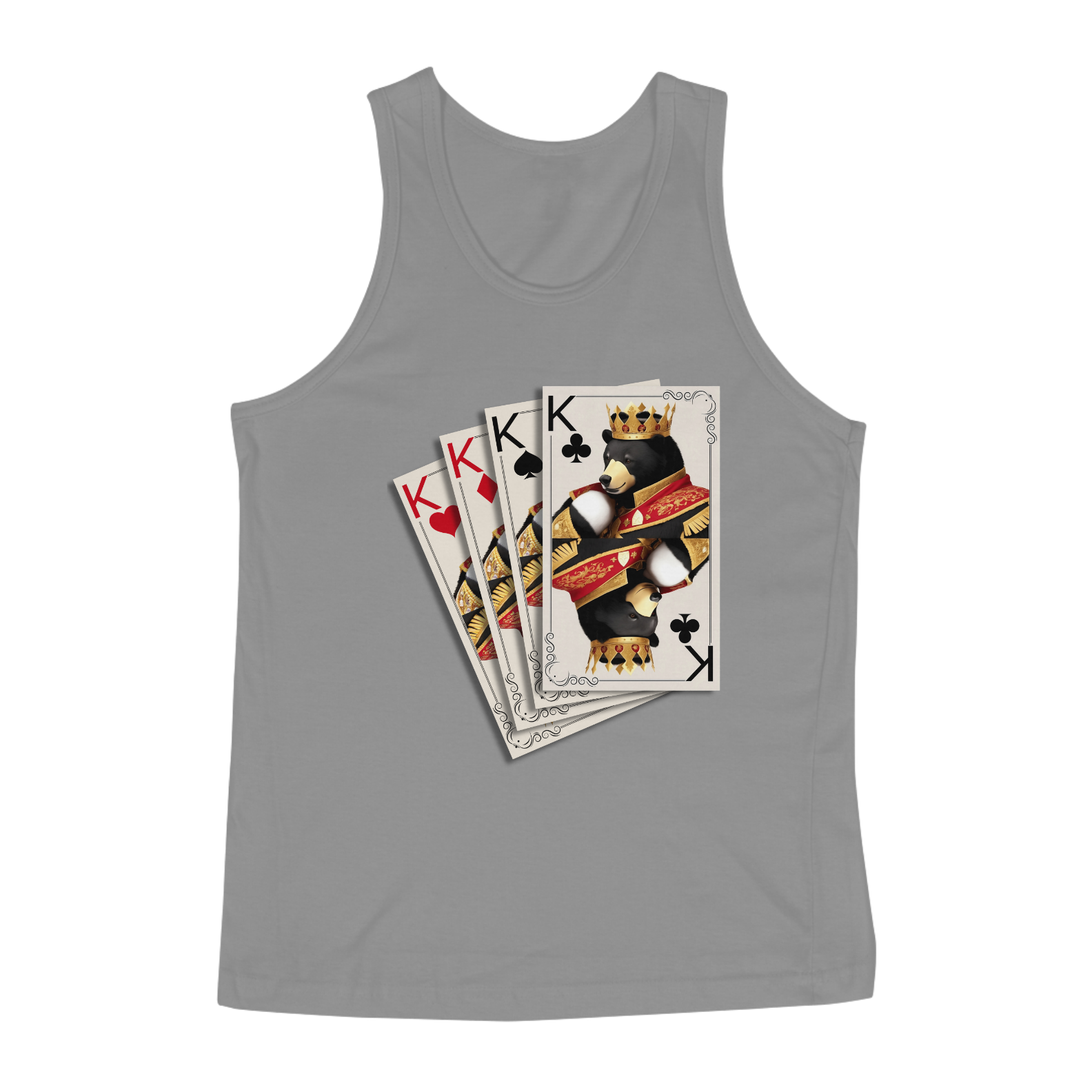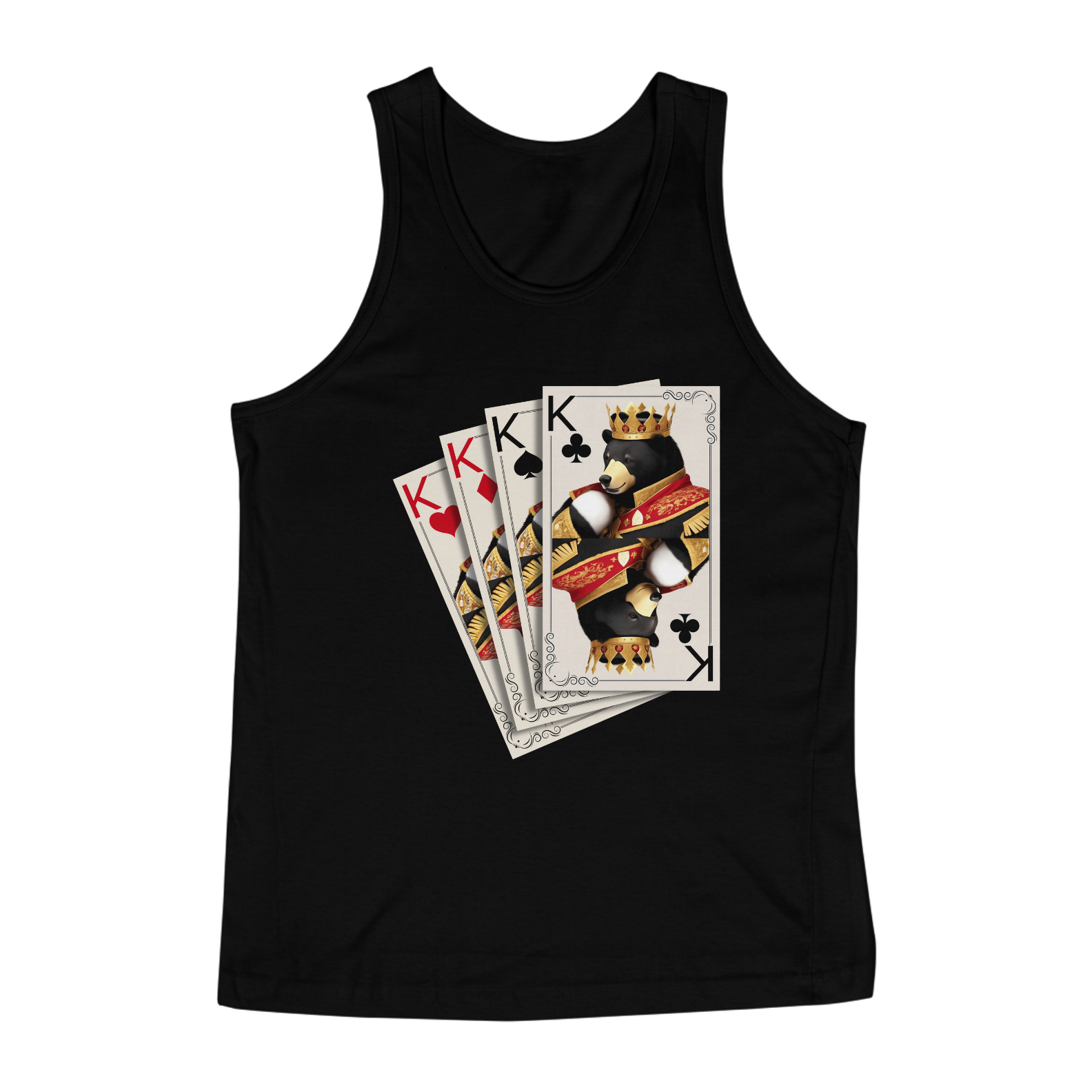 Apresentamos uma estampa incrivelmente criativa e significativa, especialmente projetada para a vibrante comunidade Gaybear. Neste design único, a imagem de quatro cartas de baralho, todas representando Reis de diferentes naipes, é a personificação visual da unidade, poder e diversidade dentro da comunidade.