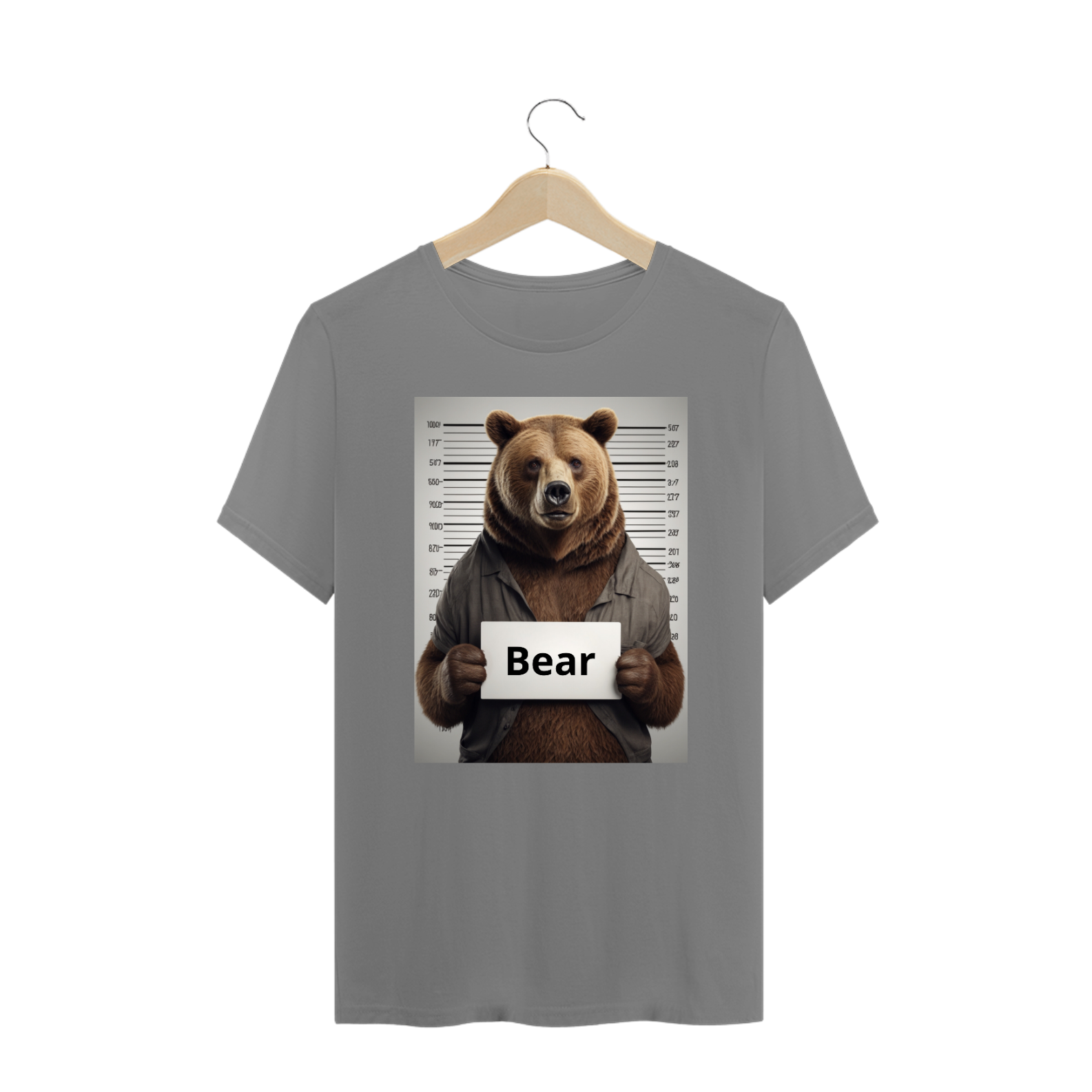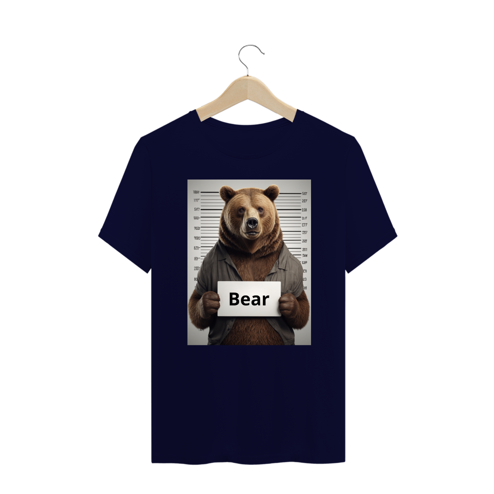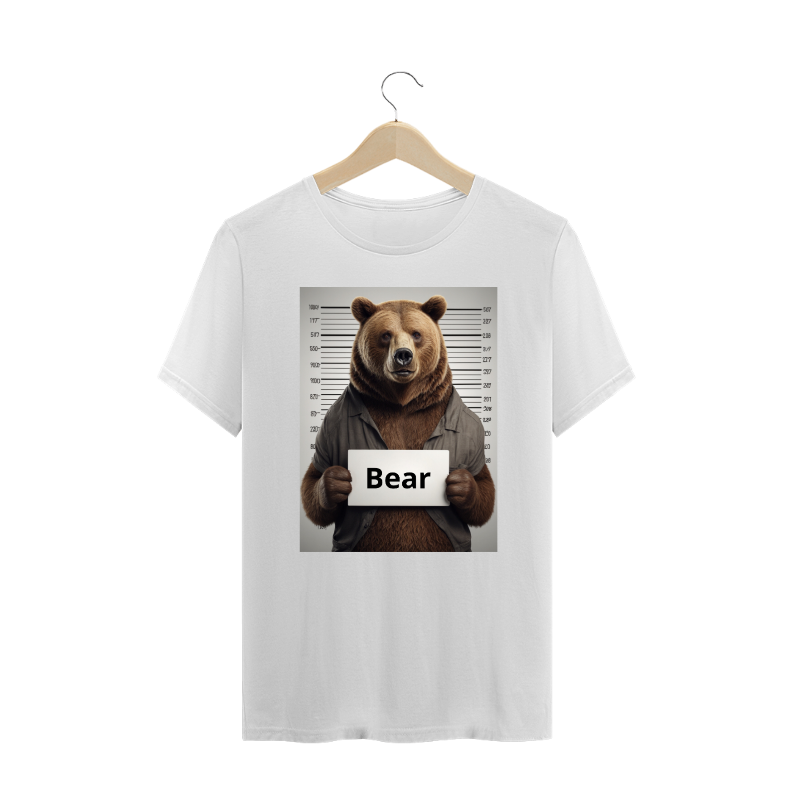 Esta estampa irreverente e cheia de personalidade apresenta uma mugshot de um urso, capturando a essência travessa e autoconfiante da cultura Gay Bear. O urso na imagem segura uma placa com a palavra 'bear', adicionando um toque de humor autêntico à representação. Ao usar esta camiseta, você não apenas expressa seu orgulho como membro da comunidade Gay Bear, mas também incorpora o espírito lúdico e descomplicado que caracteriza essa subcultura única.