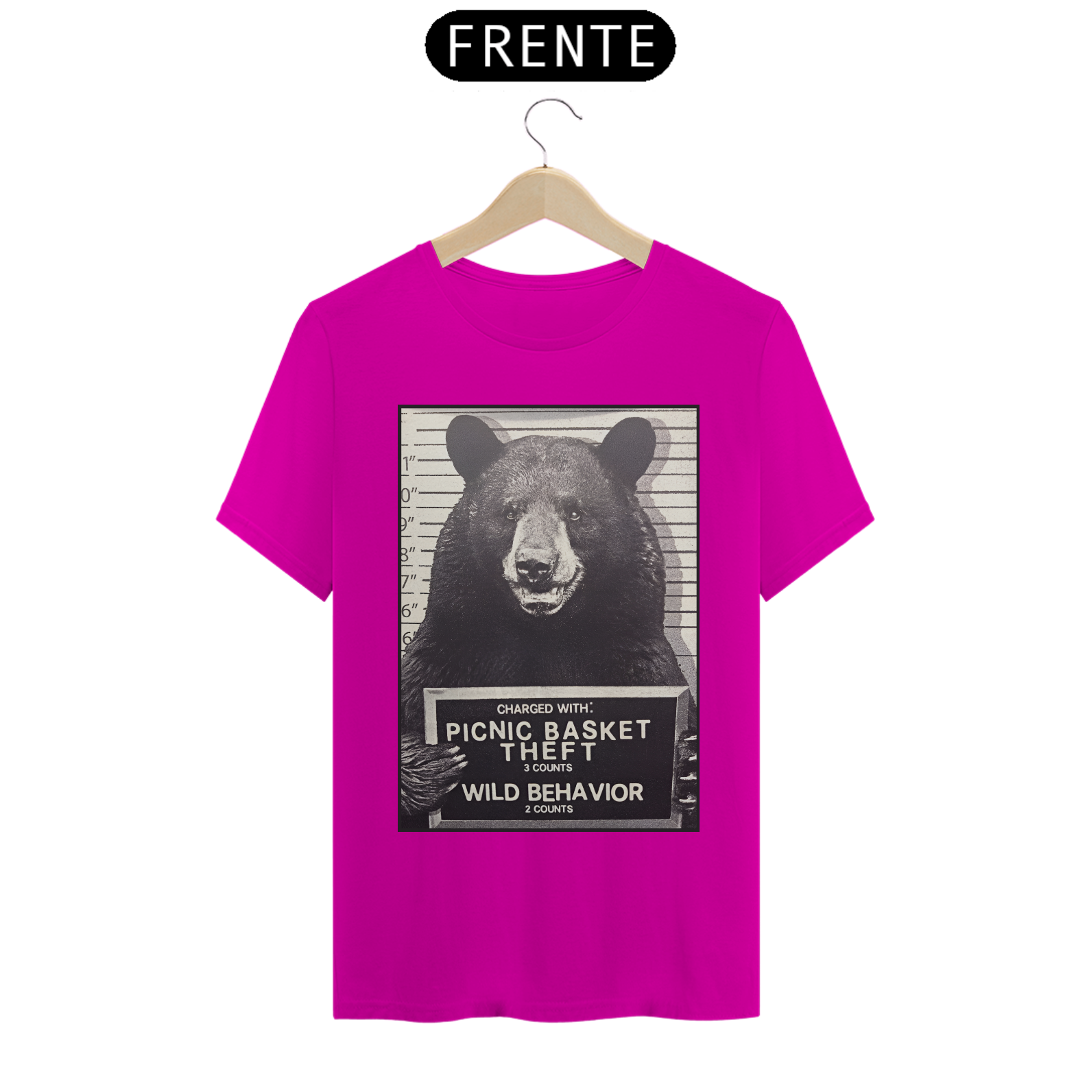A estampa "Bear Mugshot" traz uma imagem cômica e carismática, perfeita para a comunidade Gay Bear. O design apresenta um urso em um formato de "mugshot", acusado de roubo de cestas de piquenique e comportamento selvagem. A imagem combina humor e uma referência sutil à cultura pop, sendo ideal para quem quer expressar seu lado divertido e descomplicado, mantendo uma conexão com a estética Bear. A "Bear Mugshot" é uma escolha criativa para eventos e encontros sociais da comunidade, além de ser uma peça que certamente chamará a atenção e arrancará sorrisos.