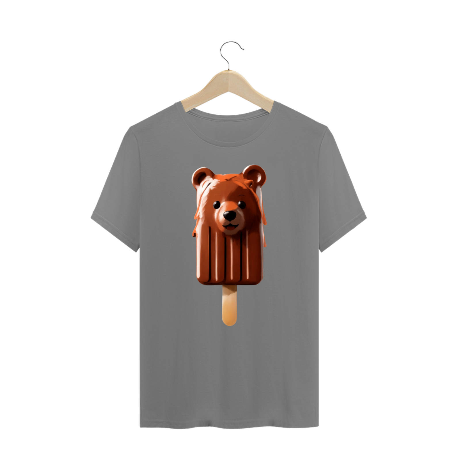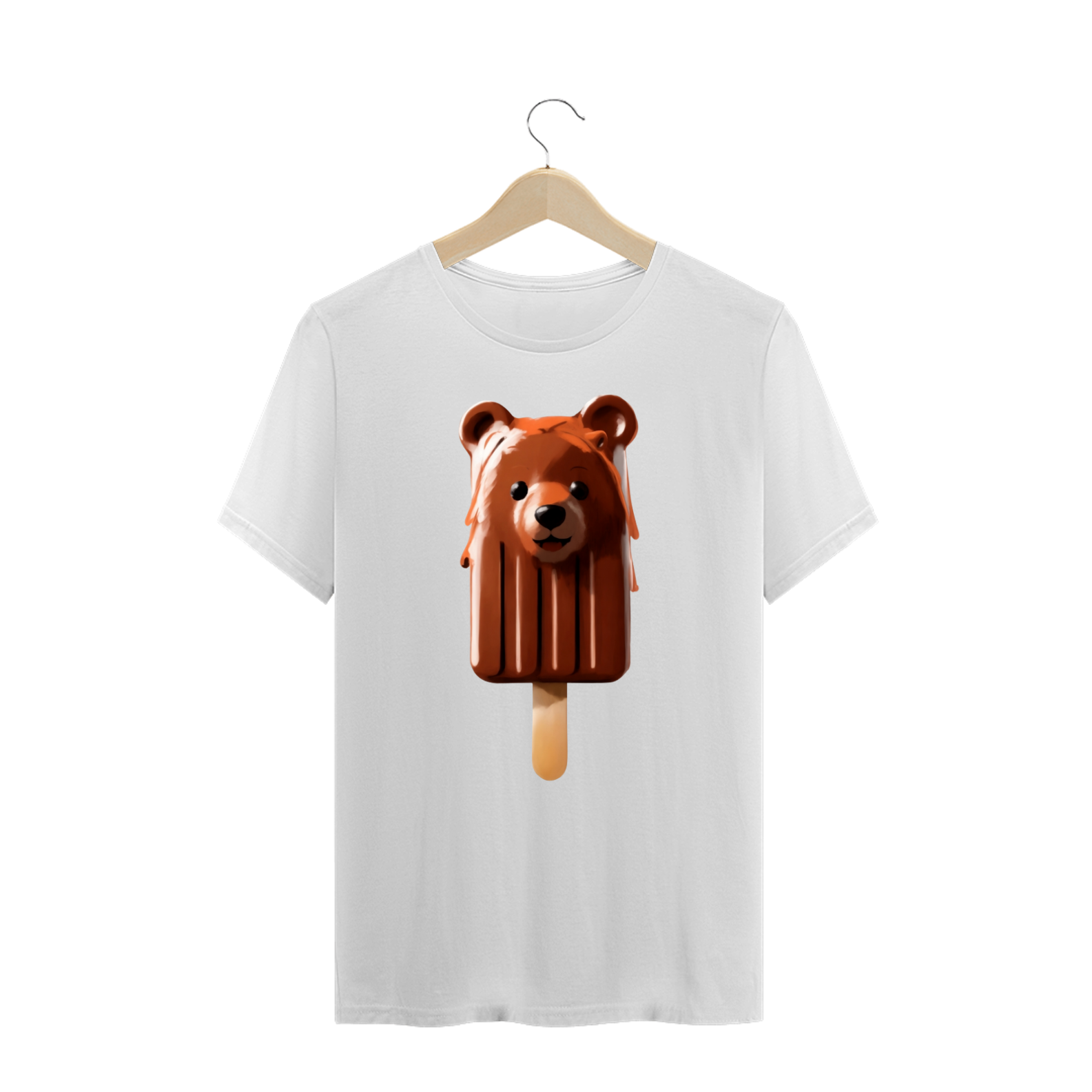 As cores vivas do picolé e as nuances de derretimento adicionam profundidade e interesse à estampa, estimulando a apreciação dos detalhes. Essa abordagem artística capta a atenção e convida à contemplação, enquanto o picolé derretido em forma de urso sorri de maneira acolhedora.