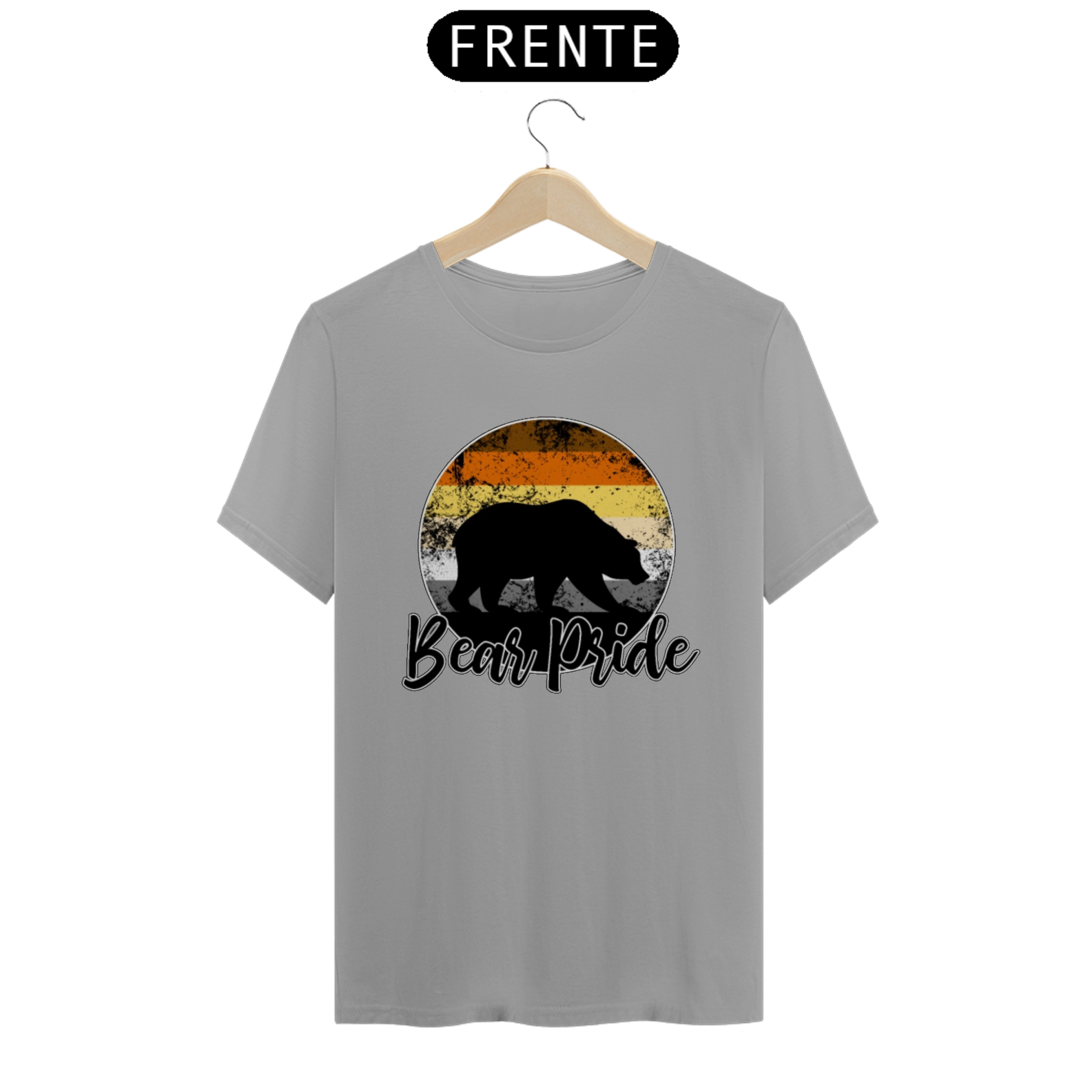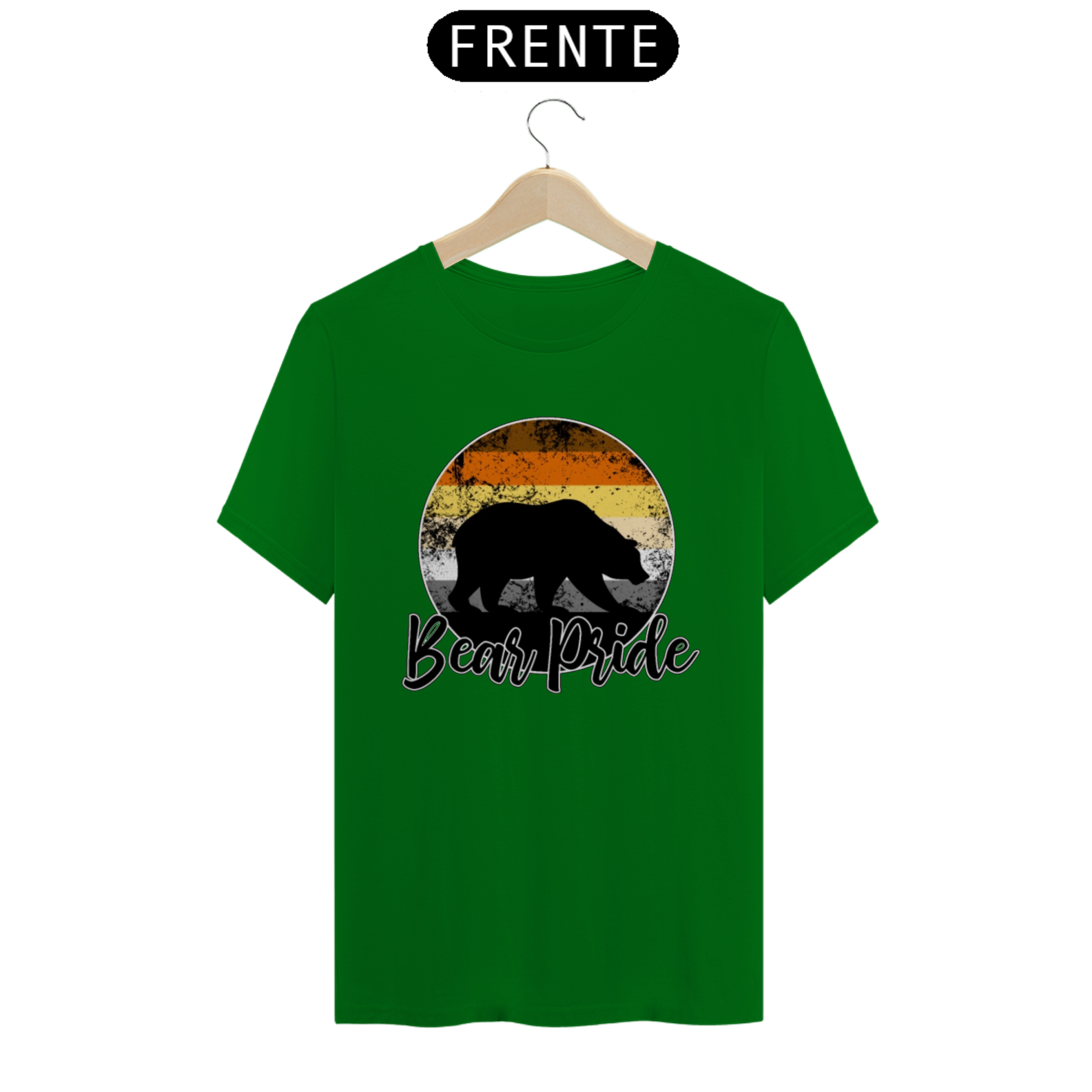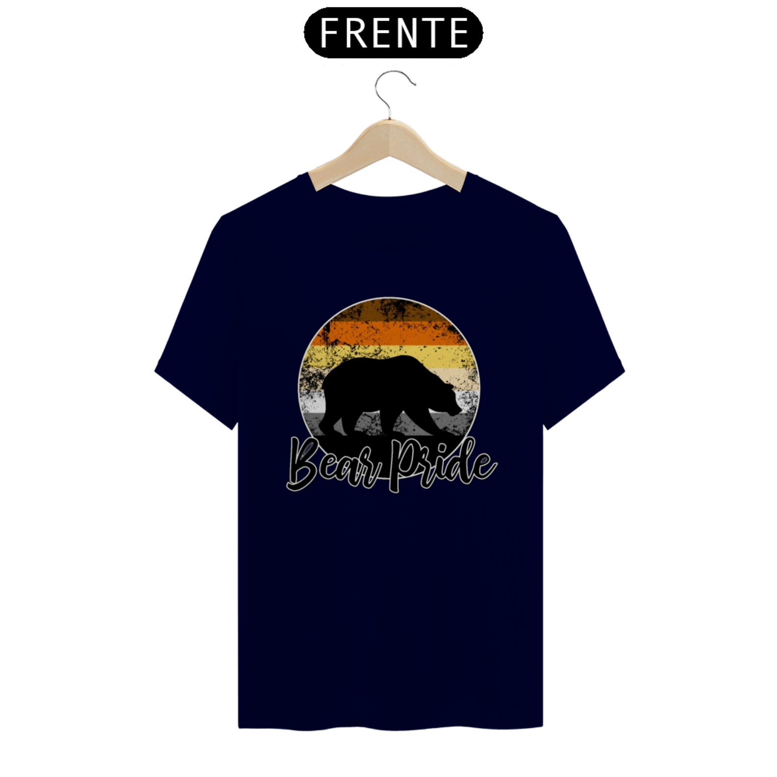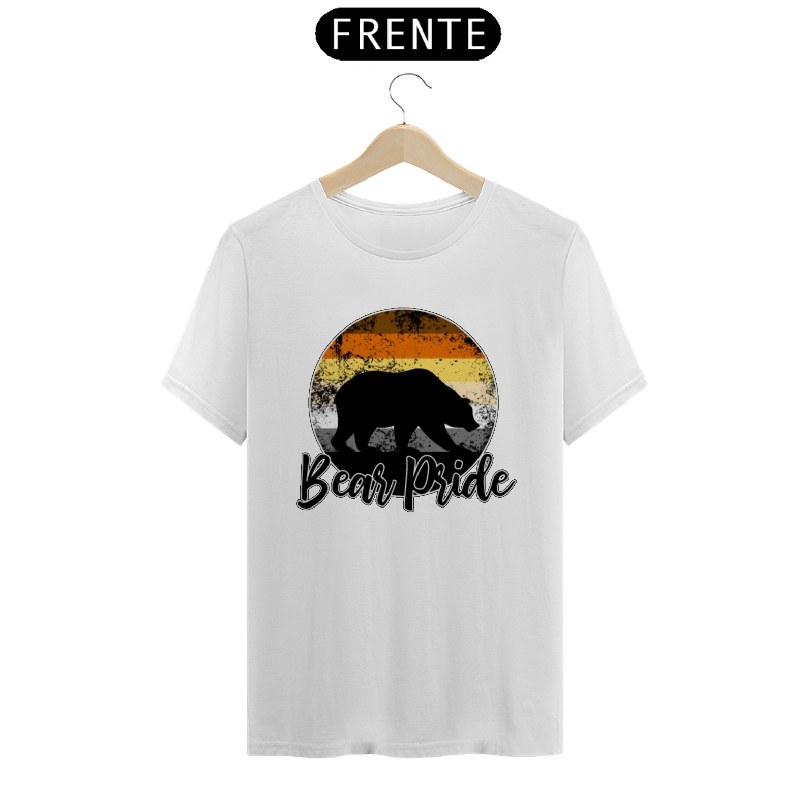 Esta estampa é uma celebração vibrante e orgulhosa da comunidade Gay Bear. No centro de um círculo em gradiente com as cores da bandeira Gay Bear, uma sombra de urso emerge, representando a força e a presença dos ursos gays. Com a frase "Bear Pride" abaixo, esta estampa é mais do que apenas uma peça de roupa; é um símbolo de orgulho, identidade e pertencimento para os membros da comunidade Gay Bear