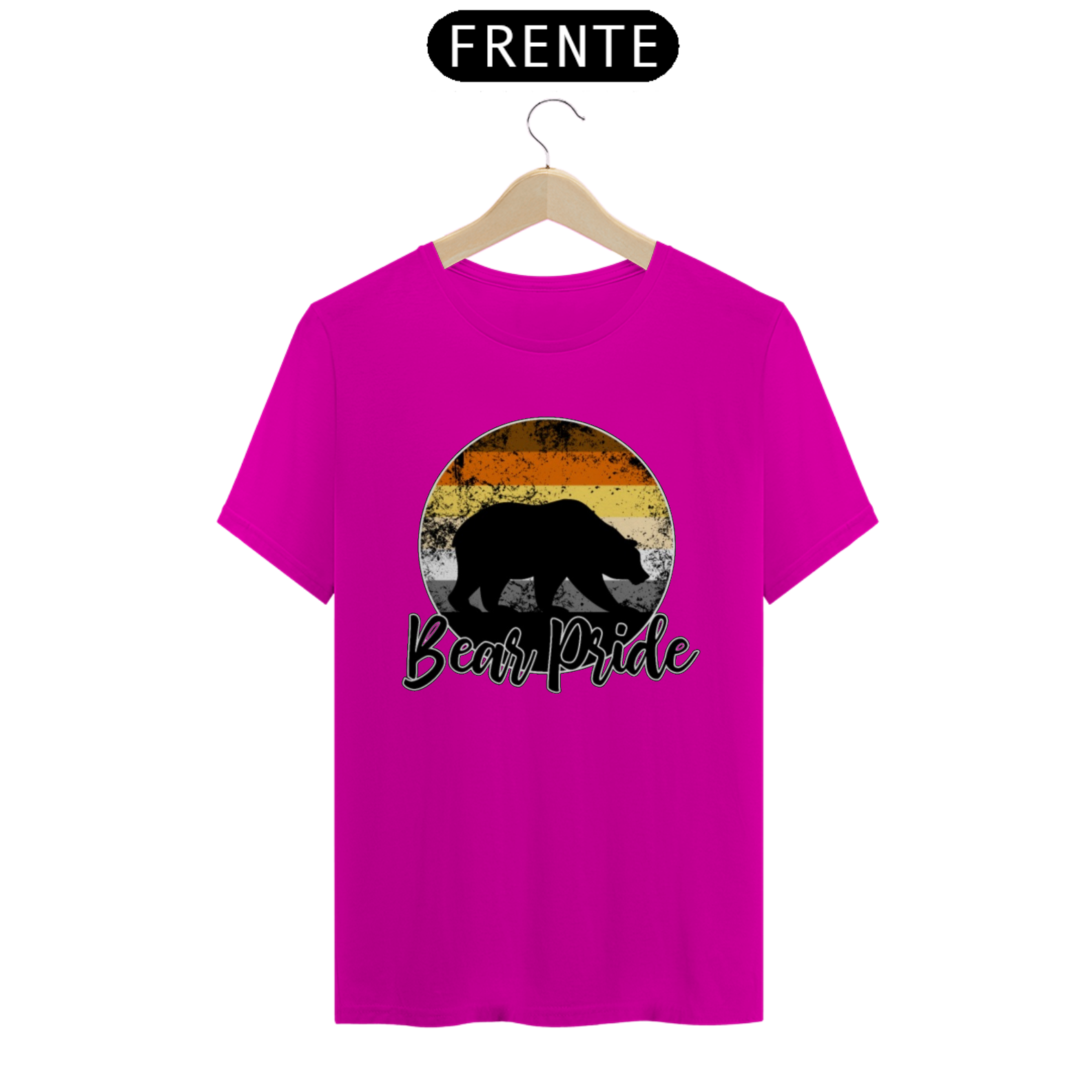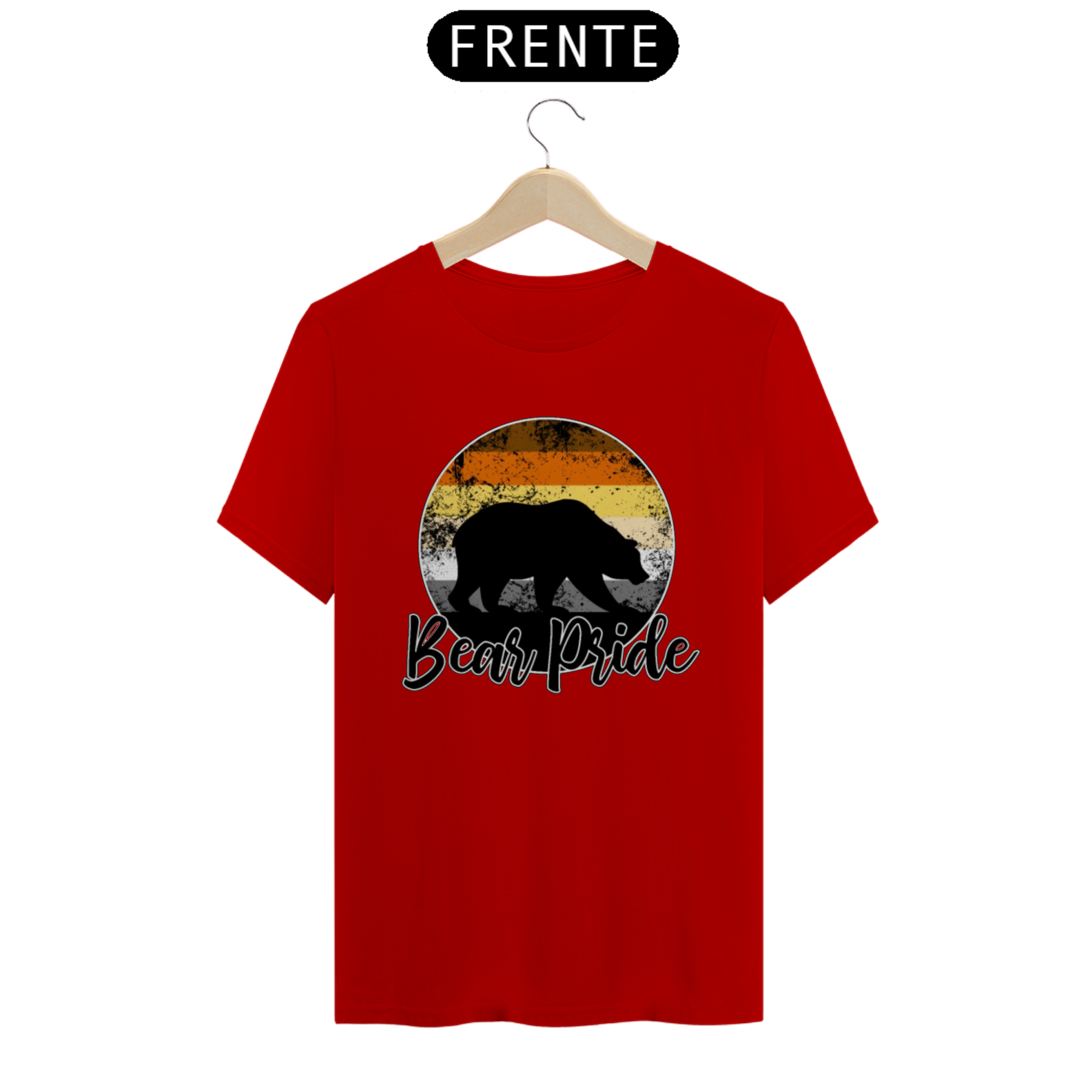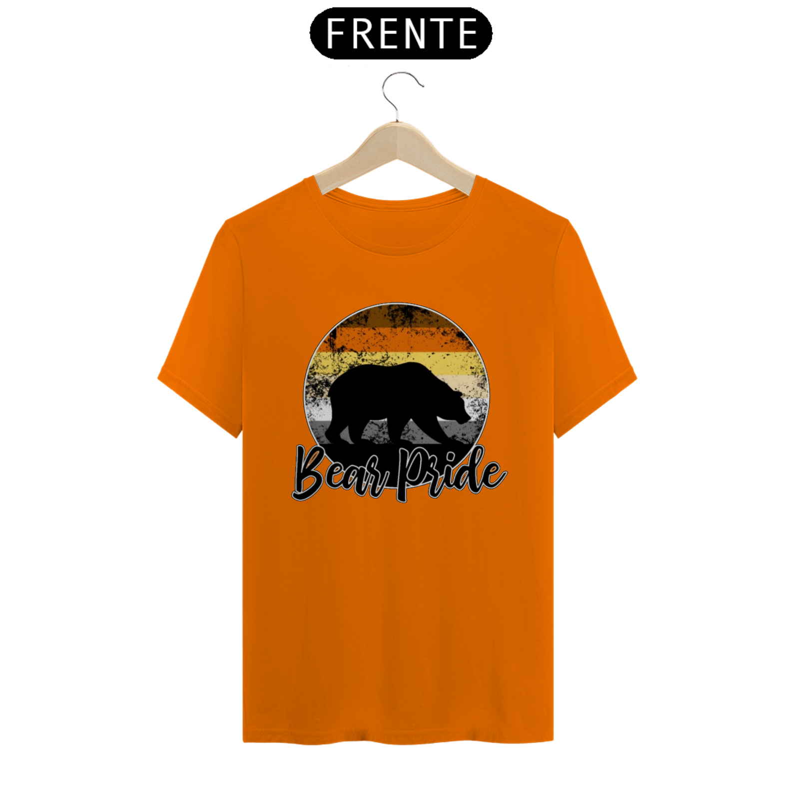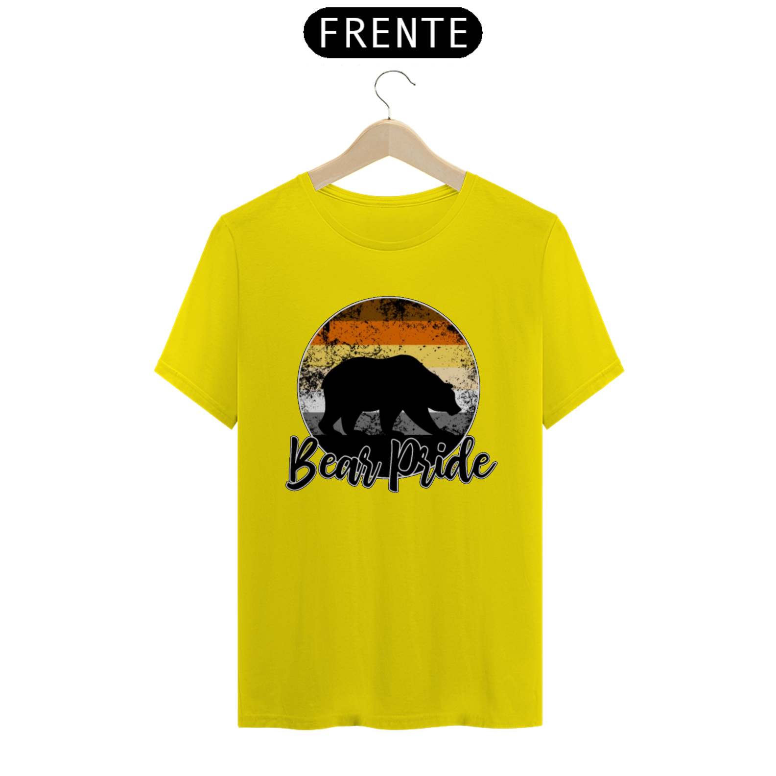 Esta estampa é uma celebração vibrante e orgulhosa da comunidade Gay Bear. No centro de um círculo em gradiente com as cores da bandeira Gay Bear, uma sombra de urso emerge, representando a força e a presença dos ursos gays. Com a frase "Bear Pride" abaixo, esta estampa é mais do que apenas uma peça de roupa; é um símbolo de orgulho, identidade e pertencimento para os membros da comunidade Gay Bear