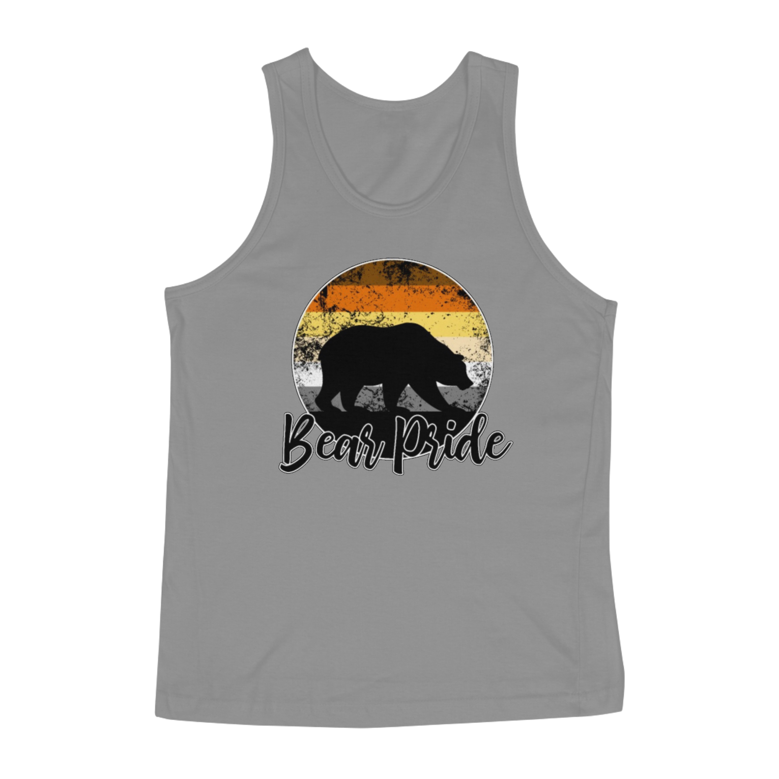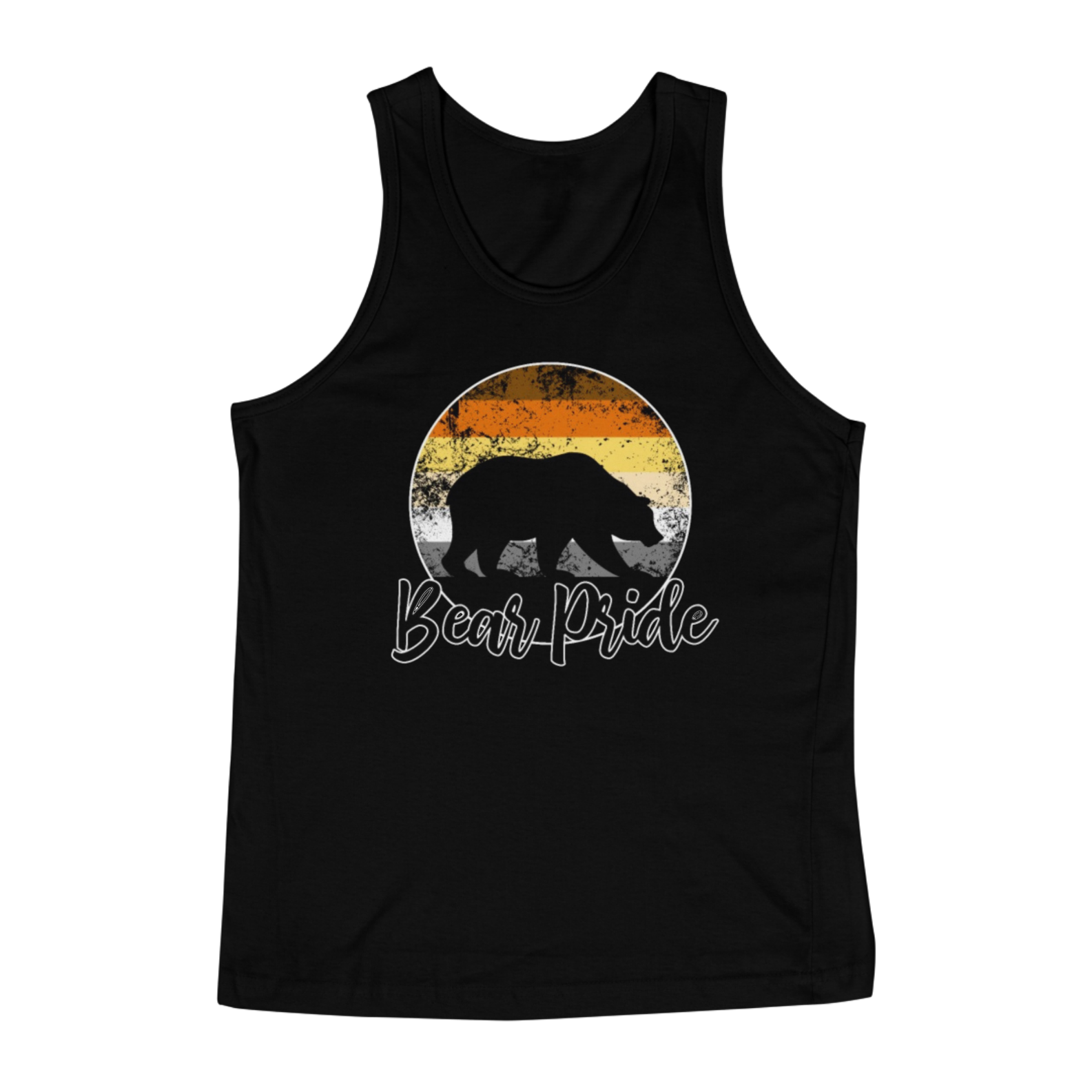 Esta estampa é uma celebração vibrante e orgulhosa da comunidade Gay Bear. No centro de um círculo em gradiente com as cores da bandeira Gay Bear, uma sombra de urso emerge, representando a força e a presença dos ursos gays. Com a frase "Bear Pride" abaixo, esta estampa é mais do que apenas uma peça de roupa; é um símbolo de orgulho, identidade e pertencimento para os membros da comunidade Gay Bear