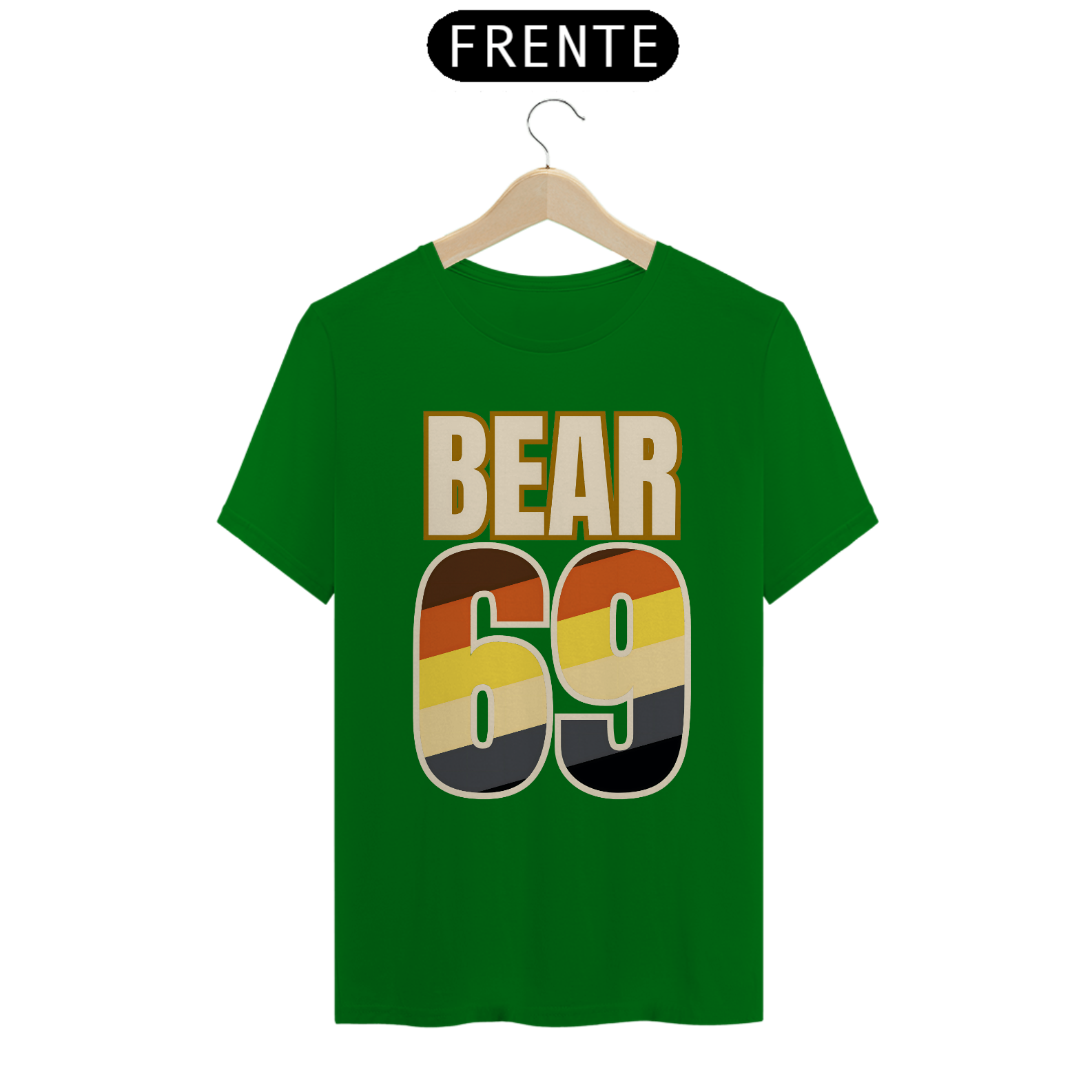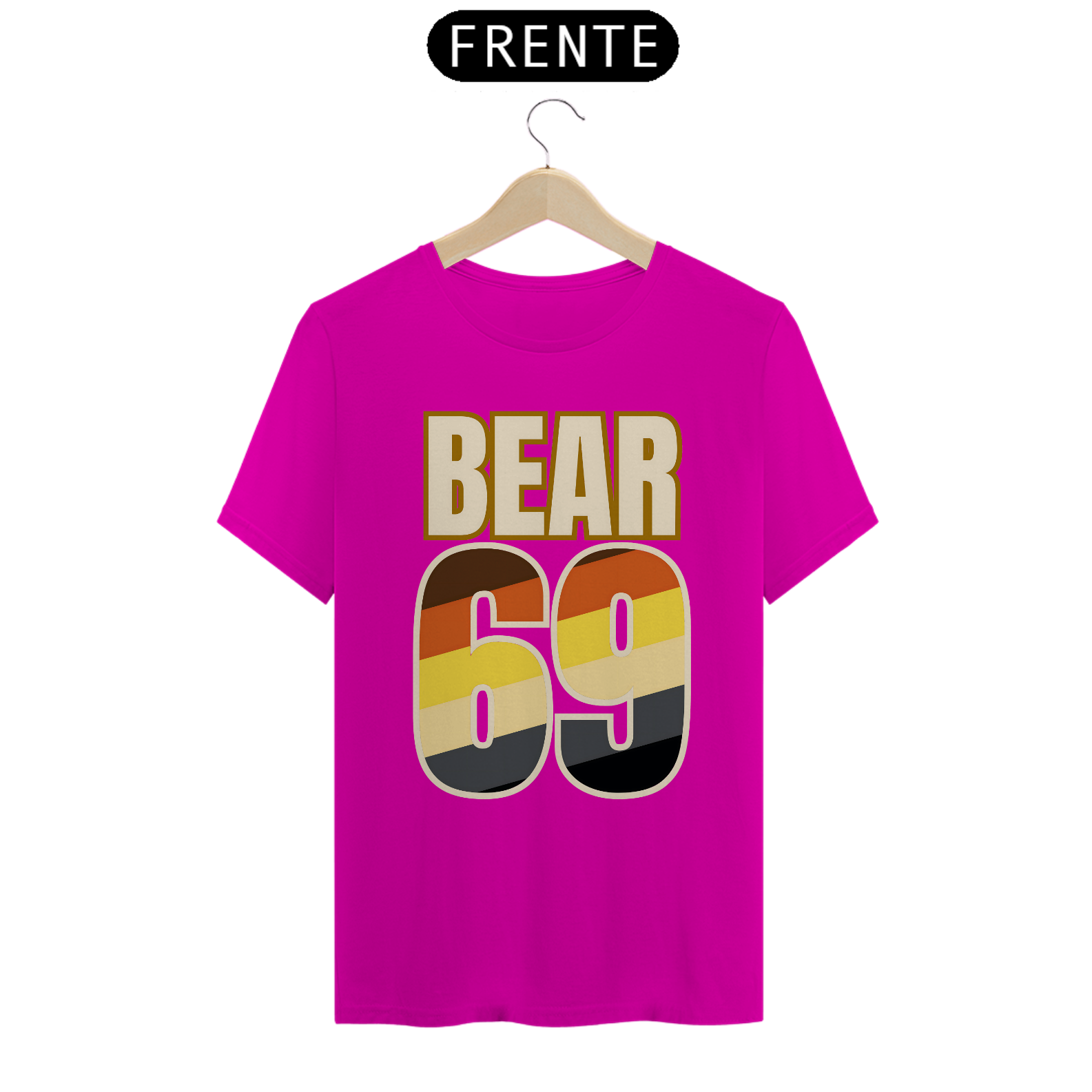 A estampa "Bear Pride 69" é uma celebração divertida e irreverente da comunidade gay Bear, combinando orgulho e um toque de humor. O número "69", além de representar uma posição sexual amplamente conhecida, aparece em destaque em cores que remetem à bandeira Bear, com tons de marrom, laranja, amarelo e preto. Esse detalhe não só reforça a identidade do grupo, mas também brinca com a dualidade entre orgulho e sensualidade, características fortes da comunidade Bear. Perfeita para eventos e festas com um toque descontraído, a "Bear Pride 69" é ideal para quem deseja mostrar seu pertencimento com estilo e uma pitada de humor. Esta camiseta une orgulho, diversão e representatividade em um design ousado que certamente chamará a atenção.