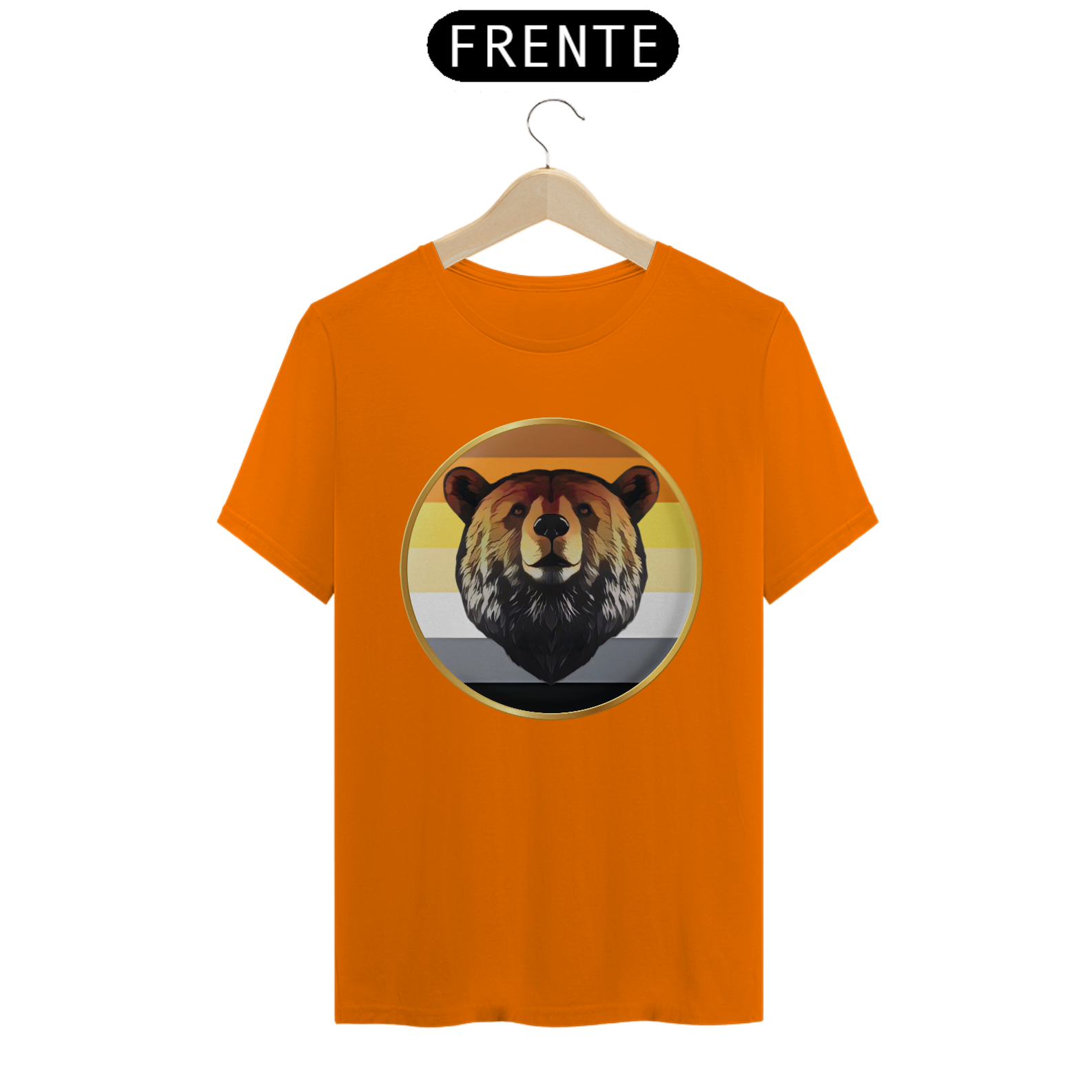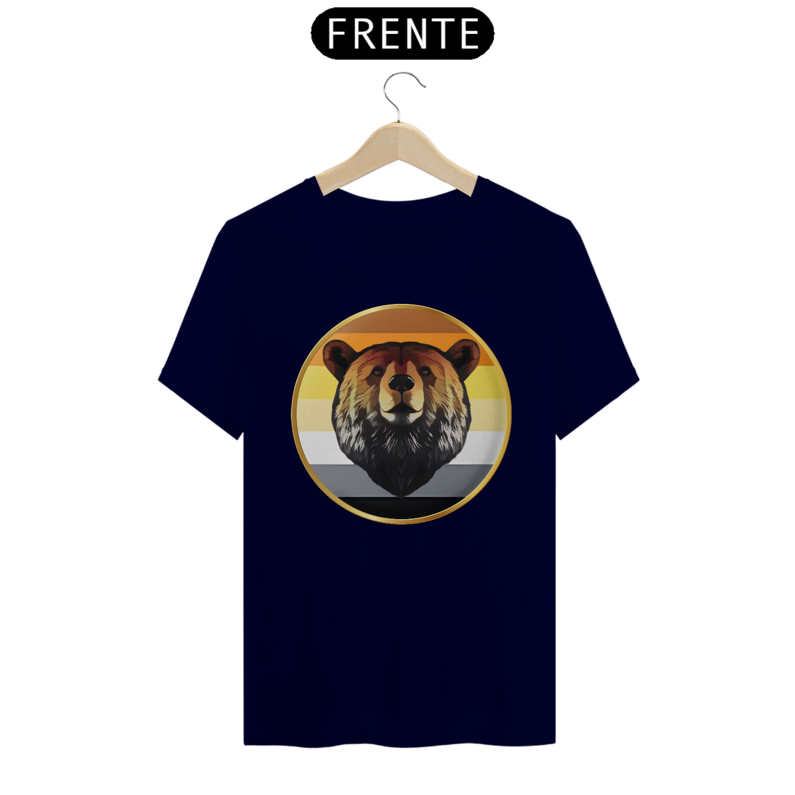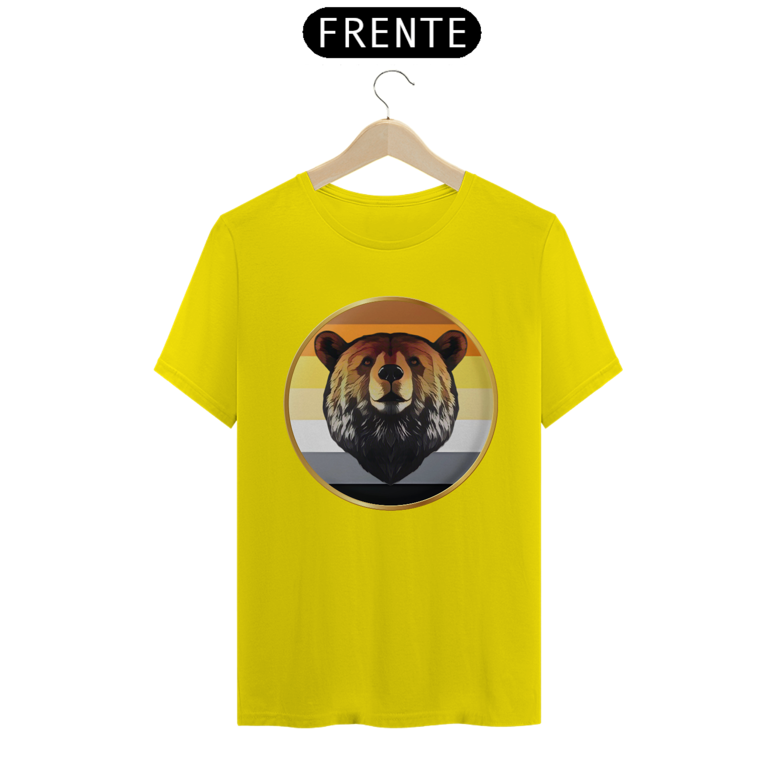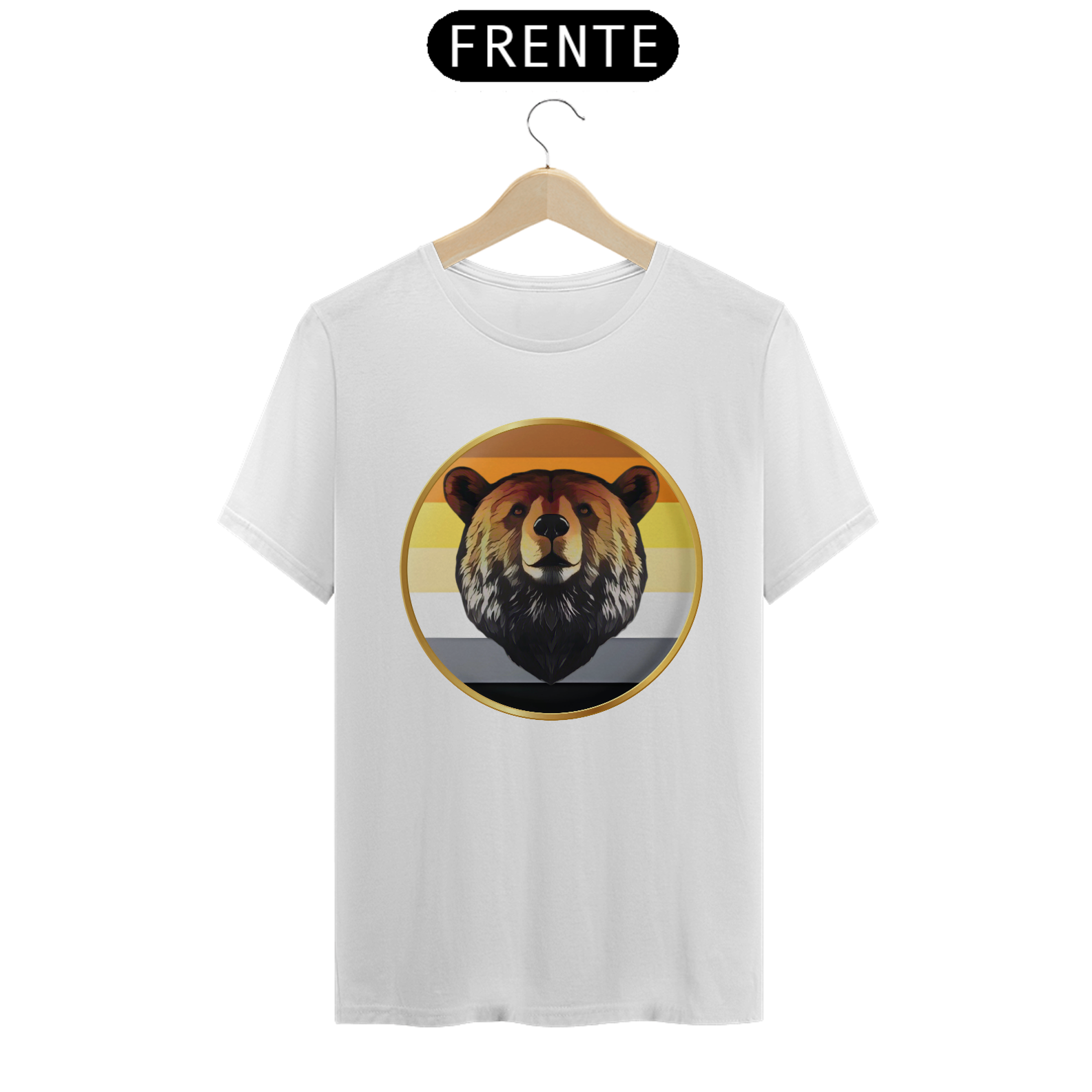 A estampa "Bear Pride Emblema" é um tributo à comunidade Gay Bear, representando força, orgulho e solidariedade. O design centraliza a imponente cabeça de um urso emoldurada por um círculo dourado, que simboliza a nobreza e a resistência dessa comunidade. As cores de fundo remetem à bandeira Bear Pride, criando uma conexão imediata com aqueles que se identificam com o movimento. Perfeita para eventos de Pride, encontros Bear ou uso diário, esta estampa combina simplicidade e impacto visual.