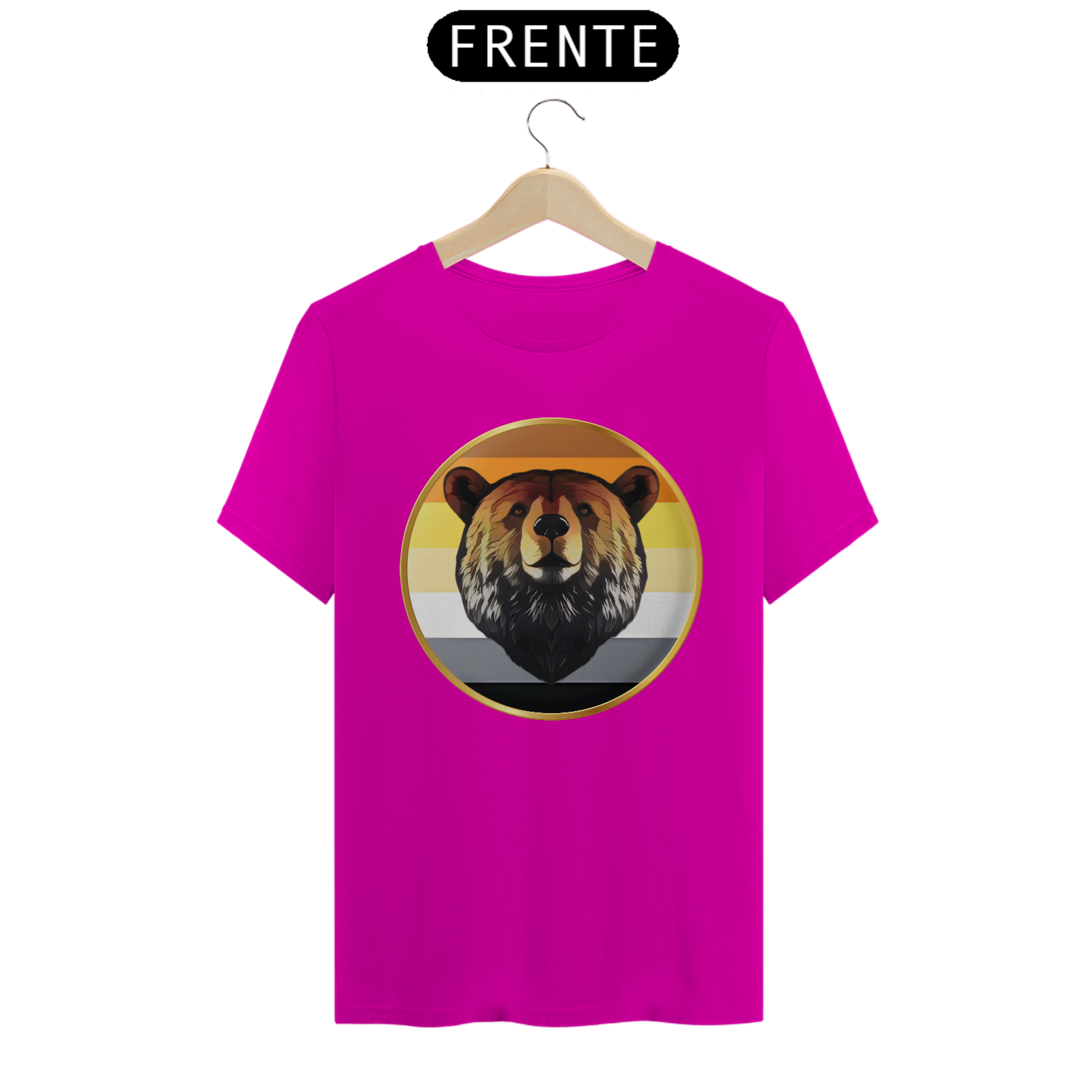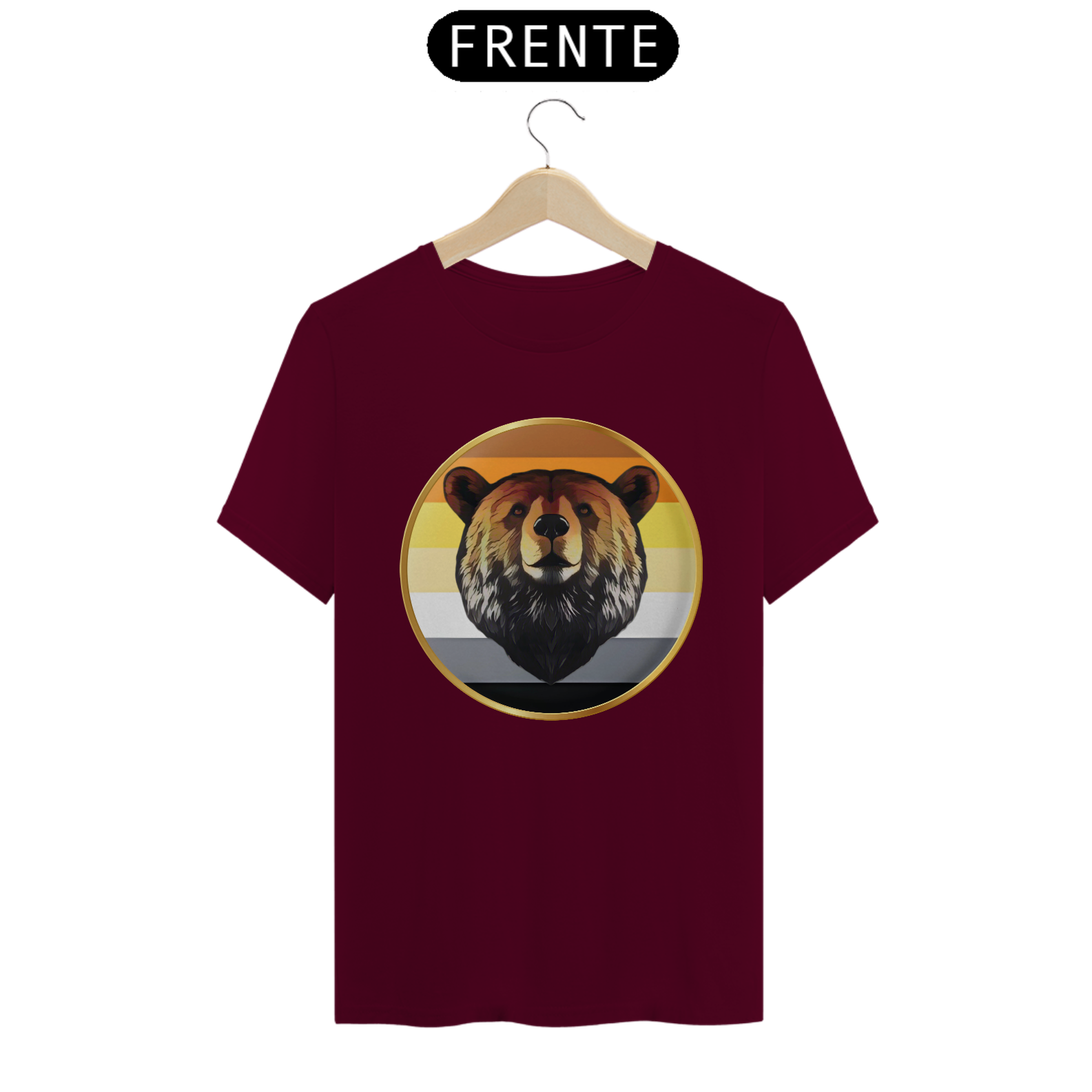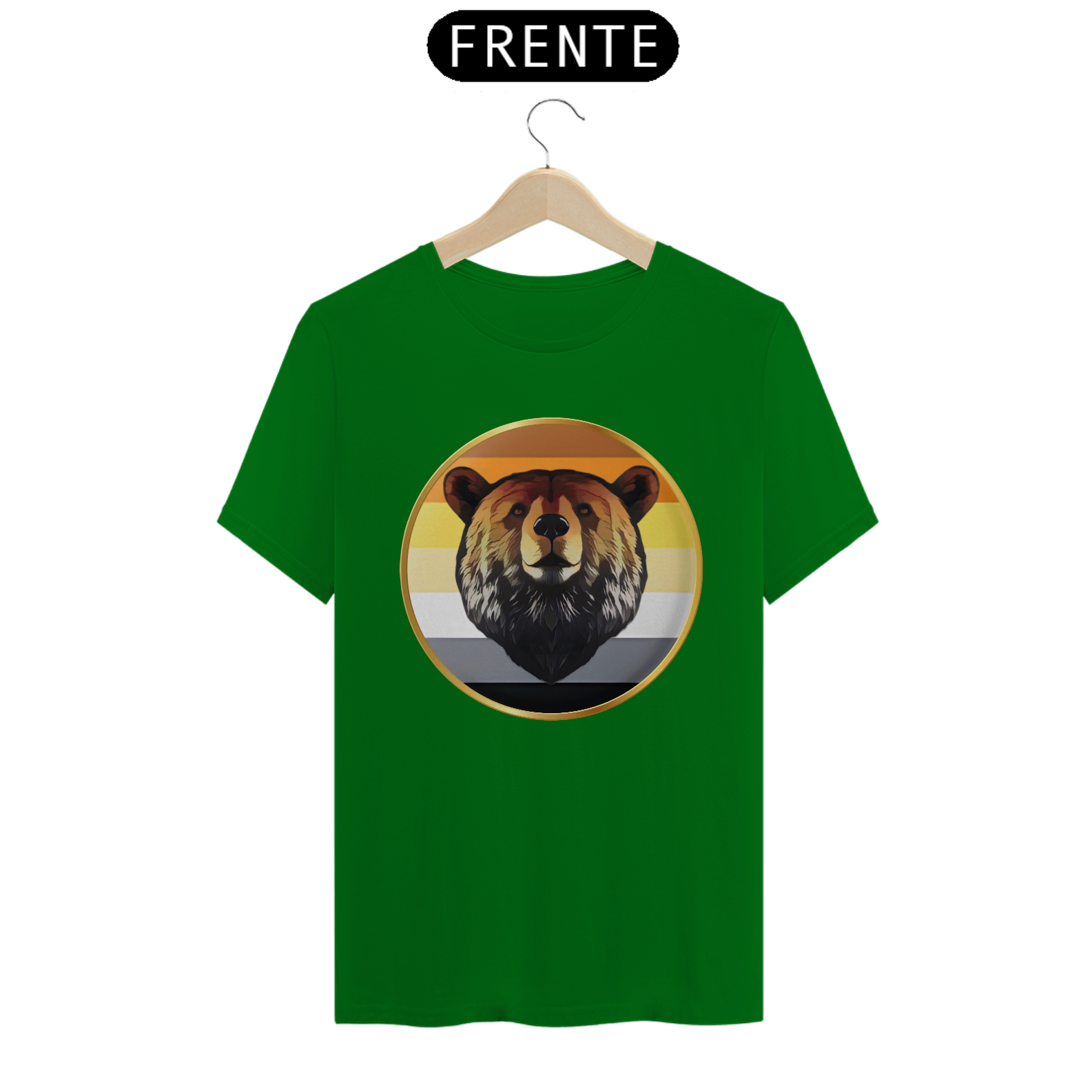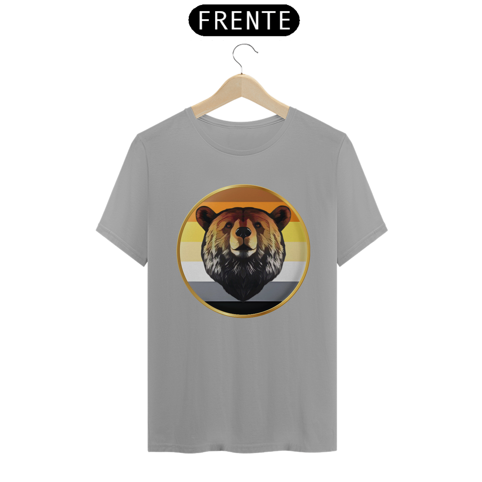A estampa "Bear Pride Emblema" é um tributo à comunidade Gay Bear, representando força, orgulho e solidariedade. O design centraliza a imponente cabeça de um urso emoldurada por um círculo dourado, que simboliza a nobreza e a resistência dessa comunidade. As cores de fundo remetem à bandeira Bear Pride, criando uma conexão imediata com aqueles que se identificam com o movimento. Perfeita para eventos de Pride, encontros Bear ou uso diário, esta estampa combina simplicidade e impacto visual.