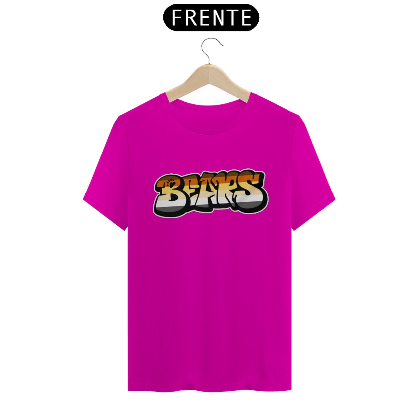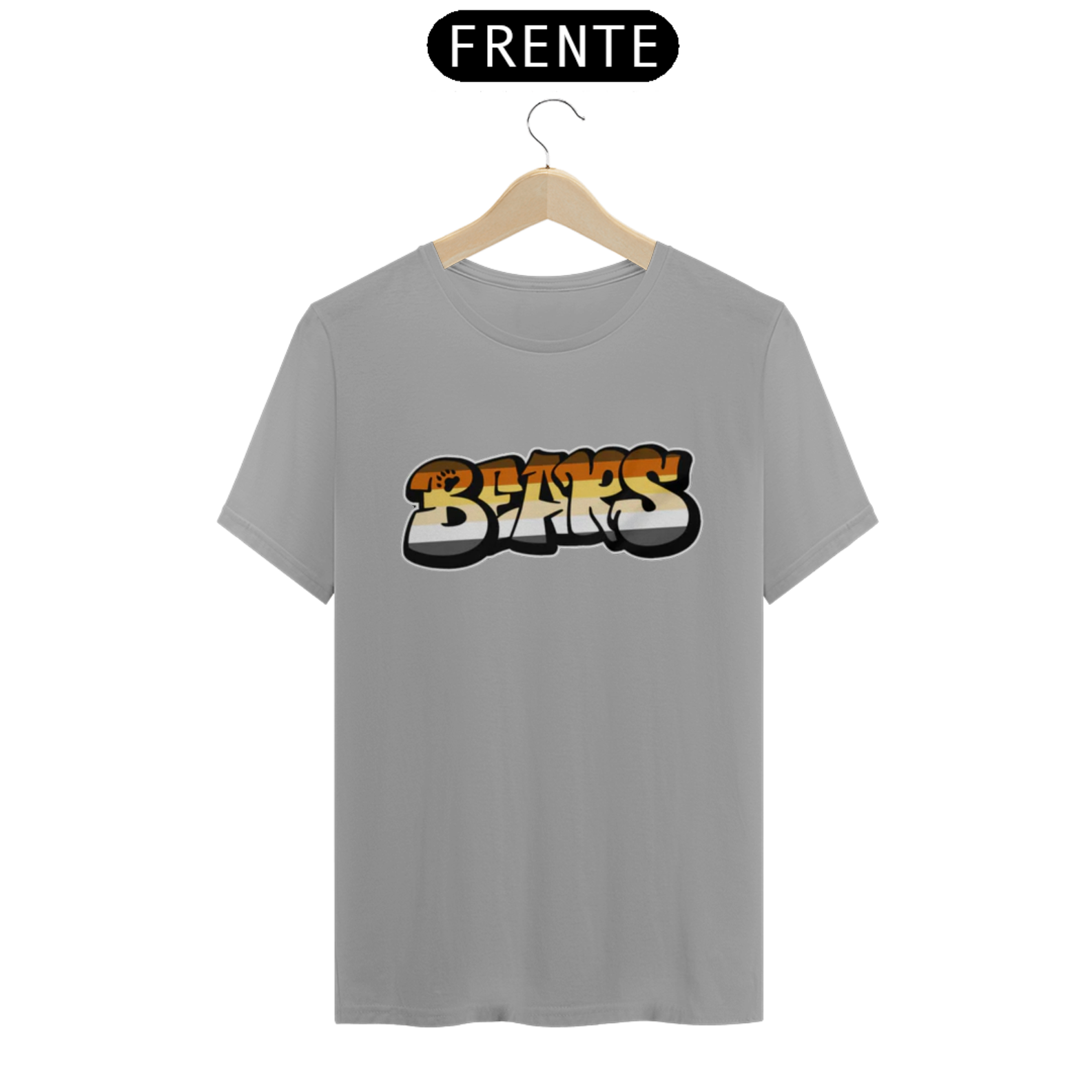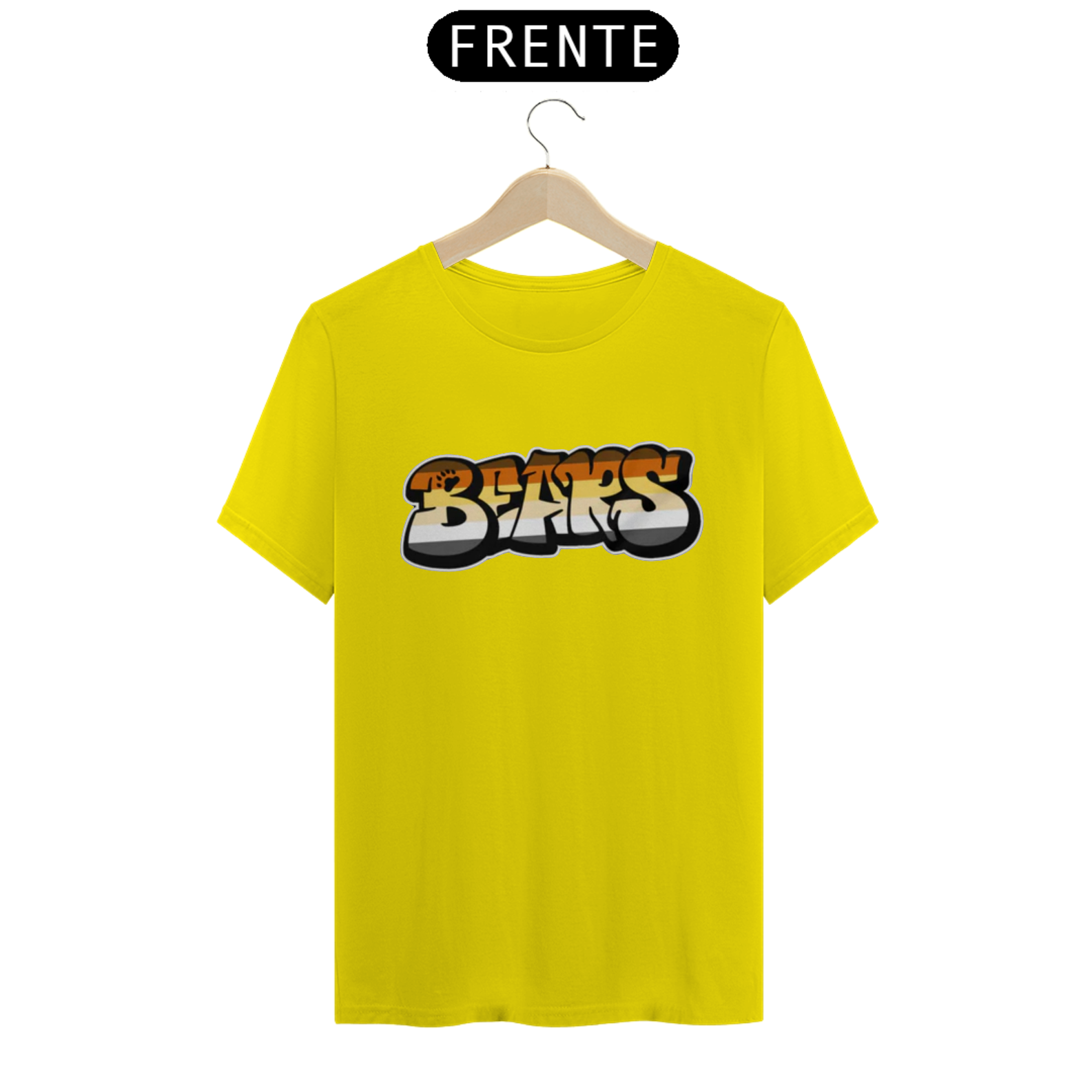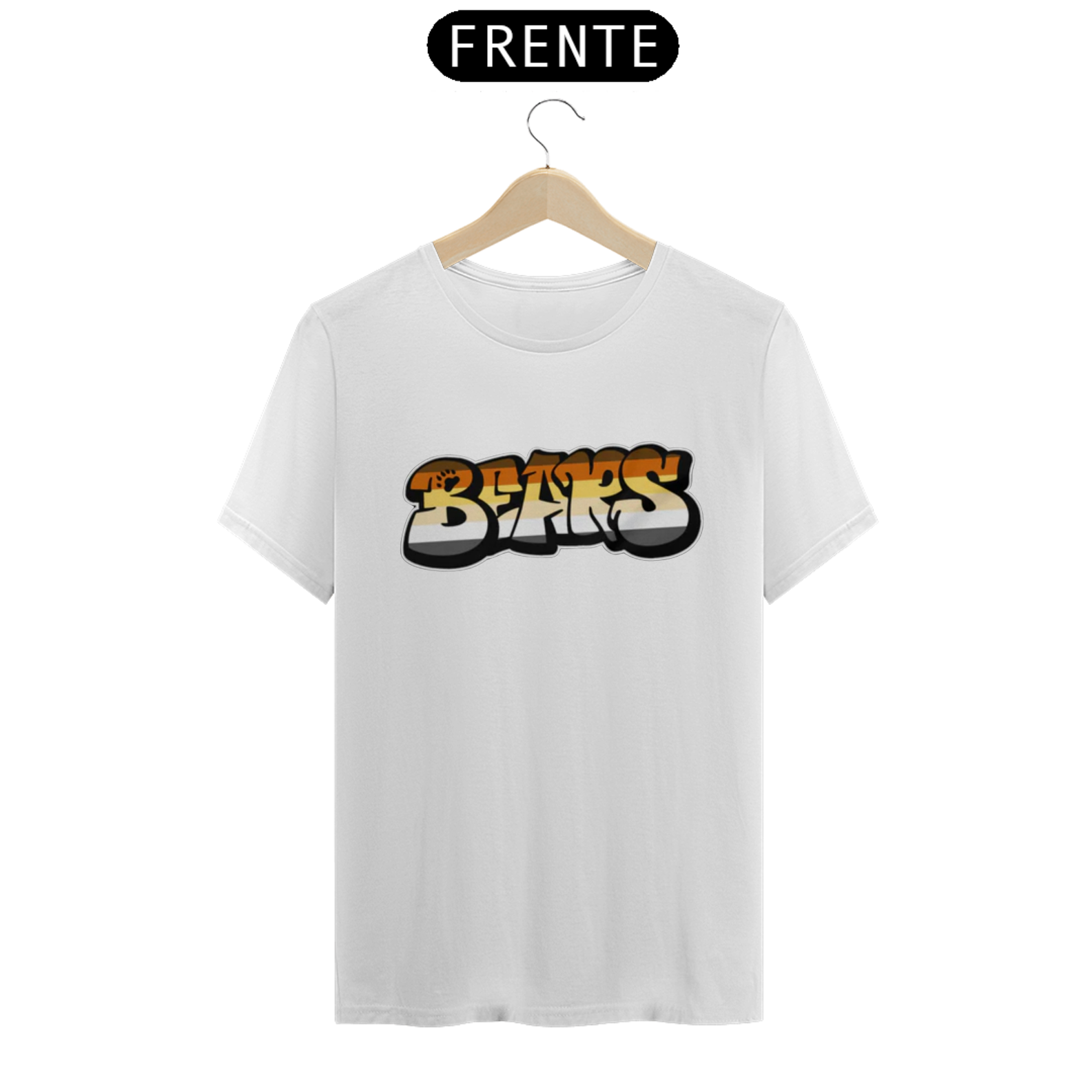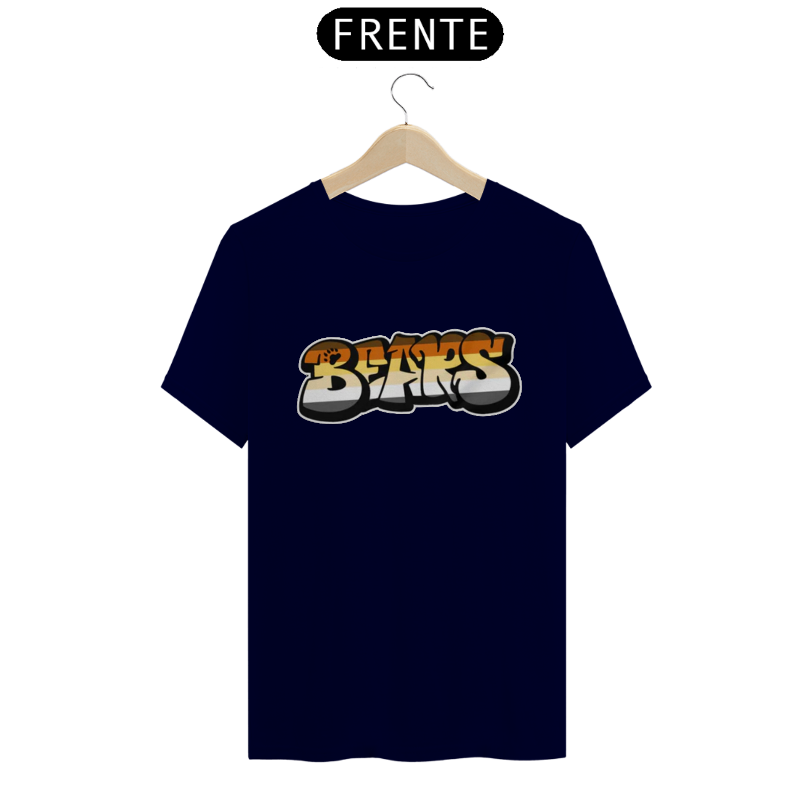 Esta estampa é uma expressão vibrante e ousada da identidade Gay Bear. A palavra 'Bear' é representada em estilo de grafite, com letras grandes e estilizadas, preenchidas com as cores vibrantes da bandeira Gay Bear. Esta estampa não apenas celebra a identidade ursina dentro da comunidade LGBTQ+, mas também destaca a criatividade e a expressão artística que são tão valorizadas na cultura gay bear.