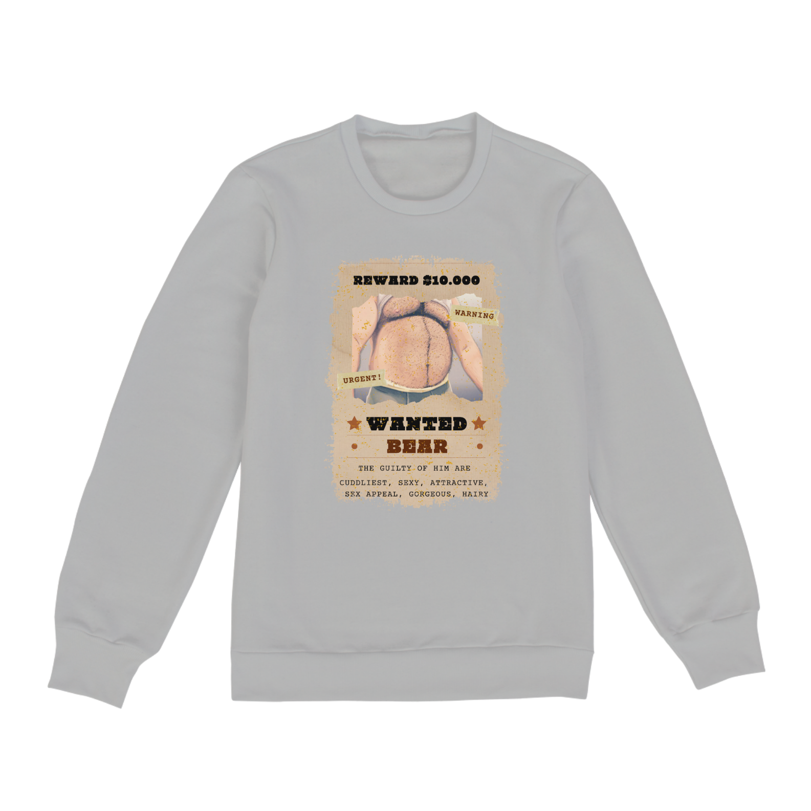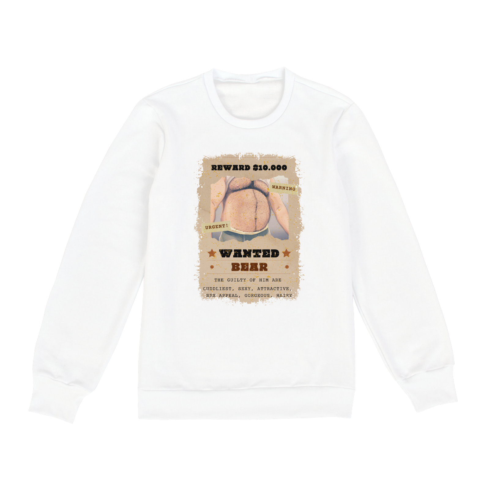Apresentamos uma estampa provocativa e cativante, especialmente criada para a comunidade Gaybear. Nesta representação artística única, um cartaz de "procurado" em inglês é transformado em um símbolo de orgulho e pertencimento, capturando a essência da cultura Bear.