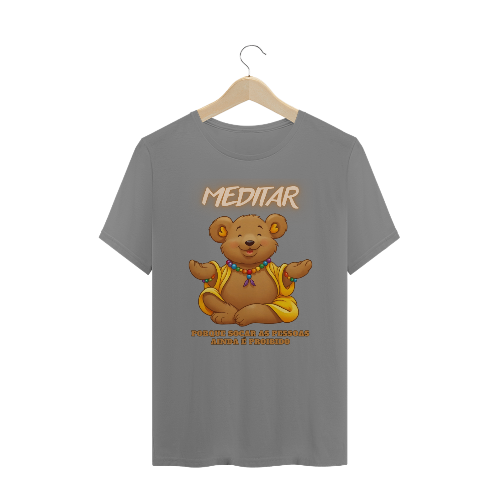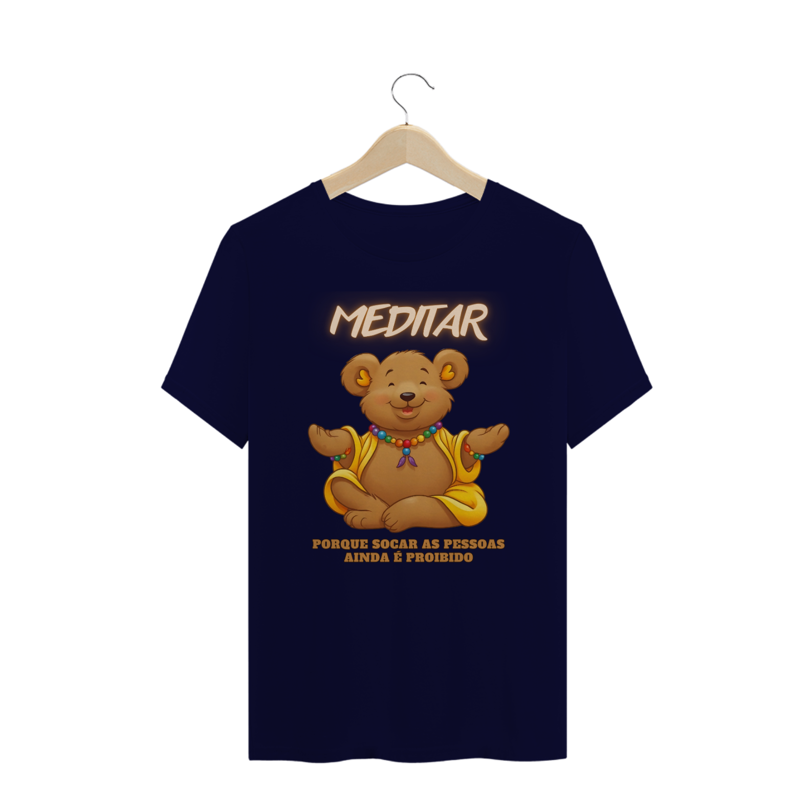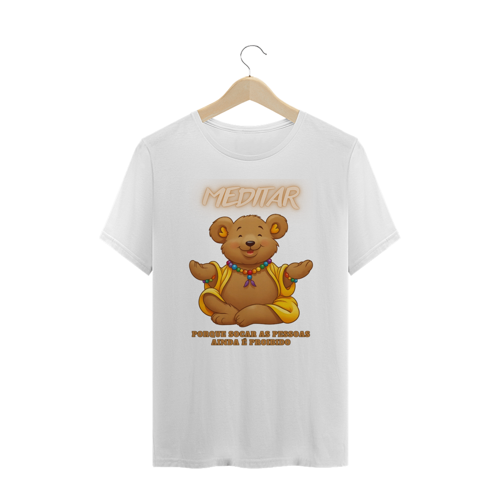 A estampa "Bear Zen Humor" traz uma combinação perfeita de humor e serenidade, voltada para a comunidade Gay Bear. A imagem de um urso sorridente em posição de meditação, vestindo trajes de monge budista, transmite uma mensagem de paz e equilíbrio. A frase divertida "Meditar, porque socar as pessoas ainda é proibido" dá o toque de humor que torna essa estampa ideal para quem gosta de expressar sua personalidade com leveza e bom humor. Essa camiseta é perfeita para eventos da comunidade LGBTQ+, encontros bear, ou simplesmente para relaxar com estilo.