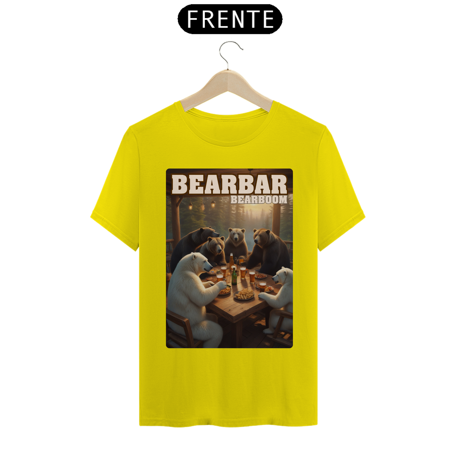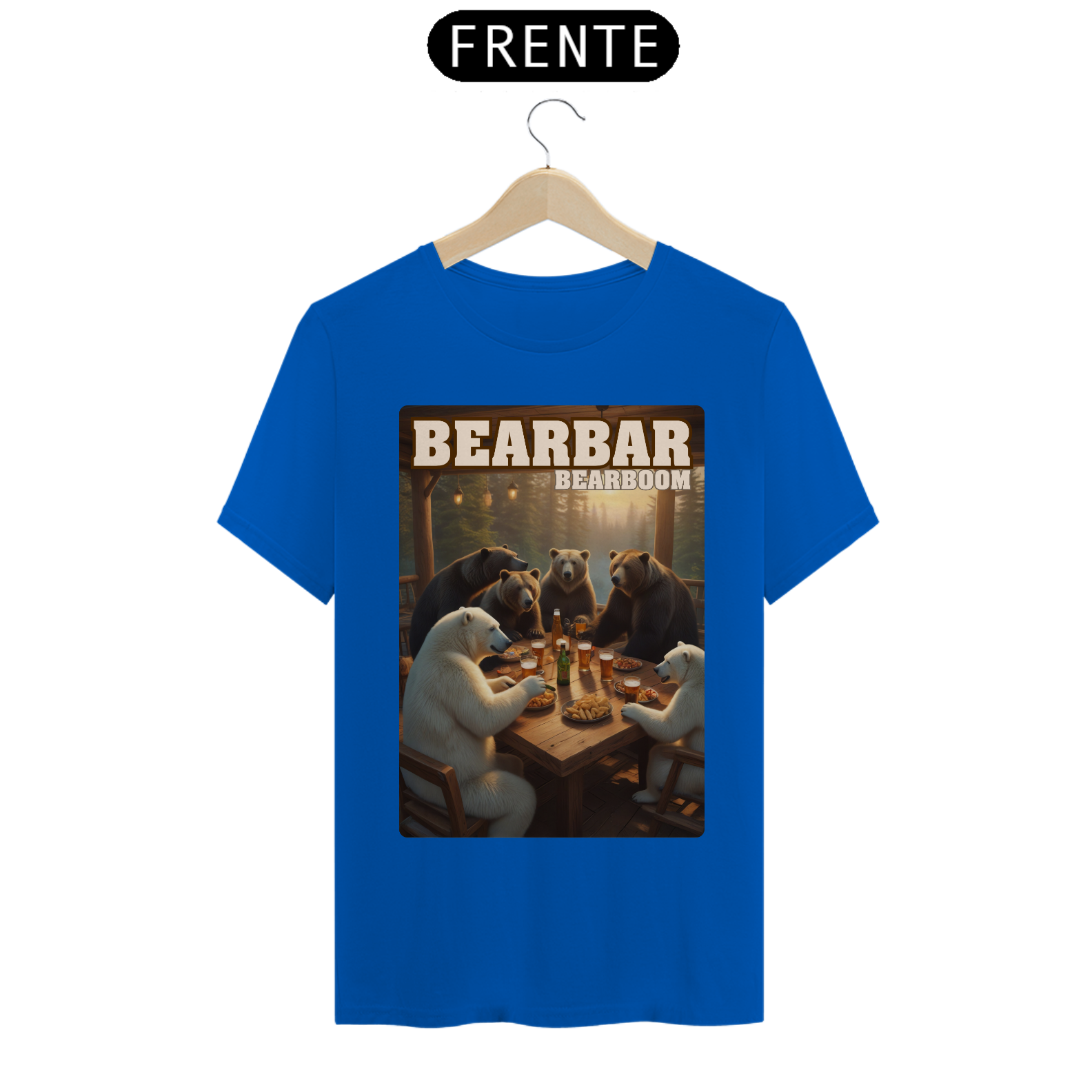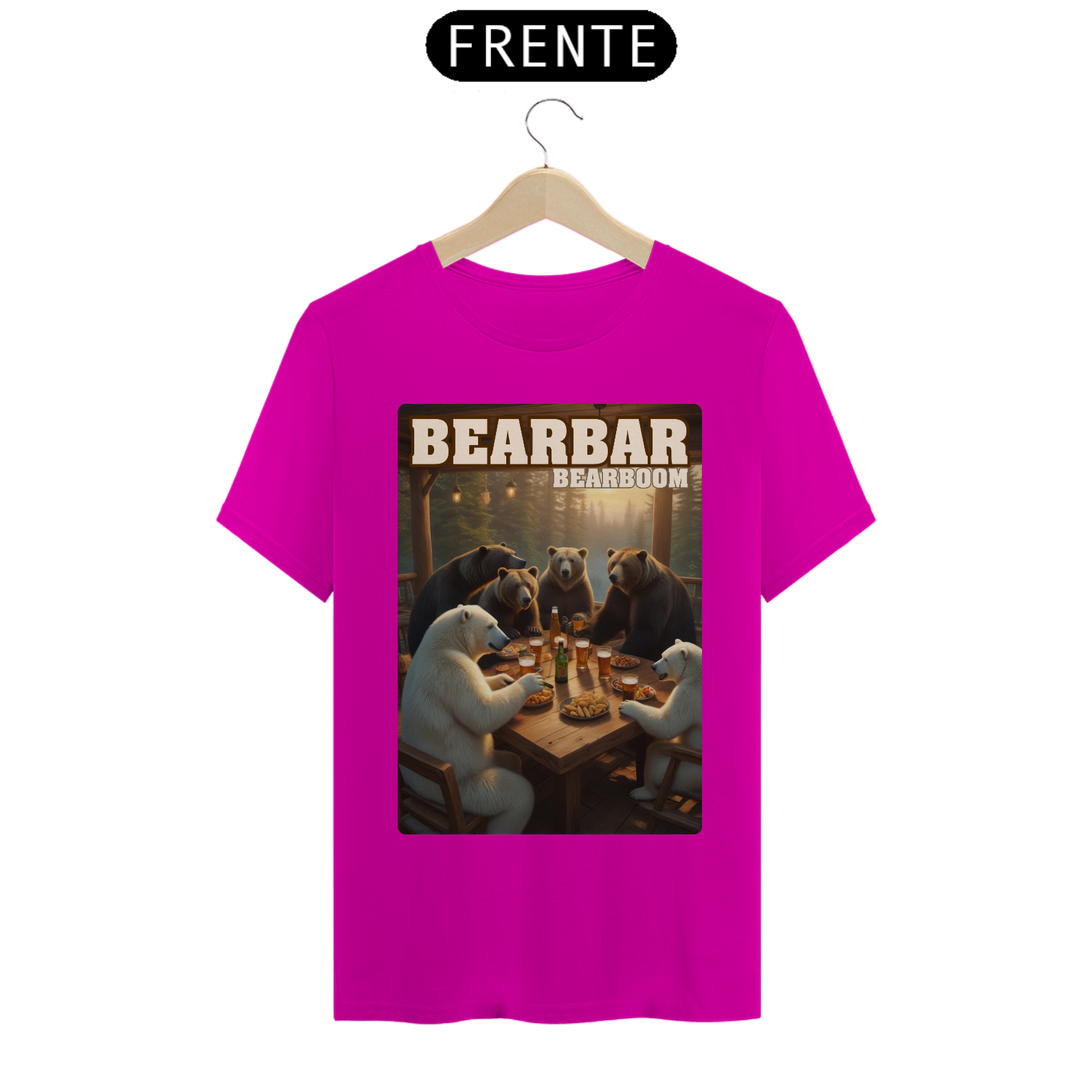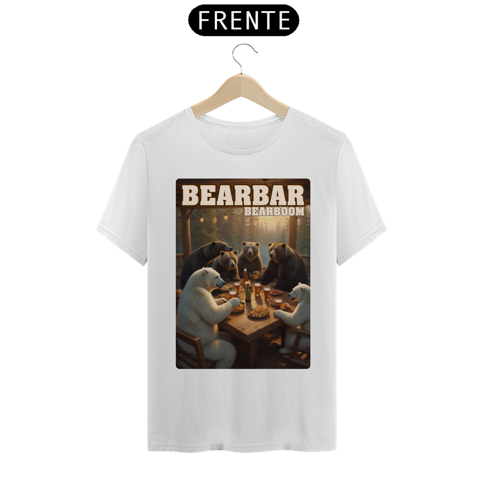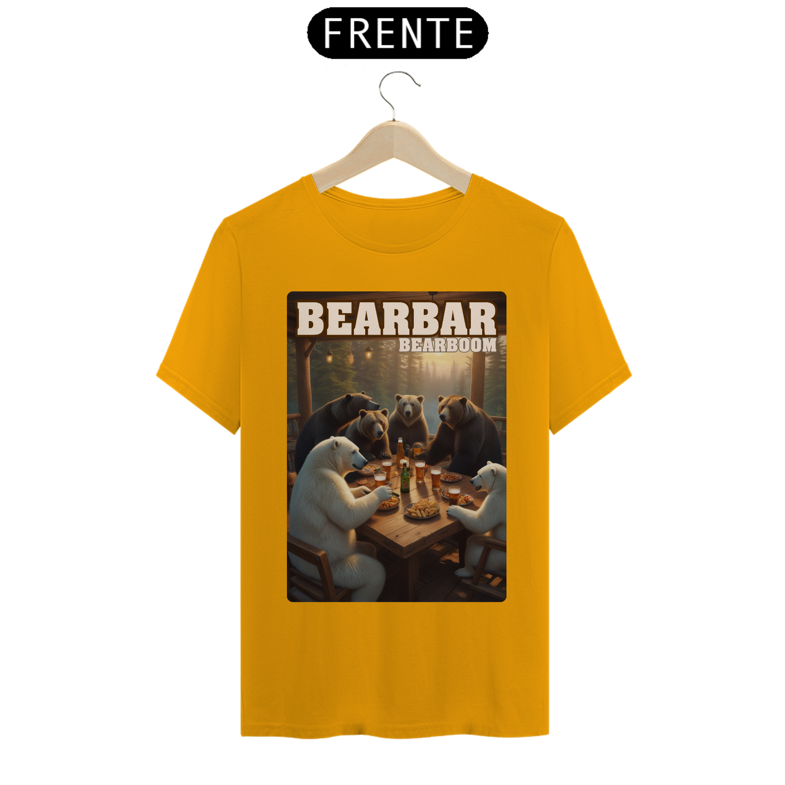 A estampa "BearBar Celebration" é uma homenagem à vibrante parceria com a BearBoom, uma das festas mais tradicionais da comunidade Gay Bear no Brasil. O design captura um encontro animado entre ursos de diferentes tipos em um bar aconchegante, rodeado pela natureza, representando perfeitamente o espírito de união e camaradagem do evento BearBar. Com detalhes encantadores como pratos de petiscos e canecas de cerveja, a arte transmite diversão e acolhimento, simbolizando os momentos especiais vividos pela comunidade. Ideal para os participantes da BearBoom e fãs da cultura Bear, esta camiseta destaca-se como um símbolo de pertencimento e celebração. Essa estampa é perfeita para quem quer levar um pedacinho da festa consigo e reforçar sua conexão com a comunidade.