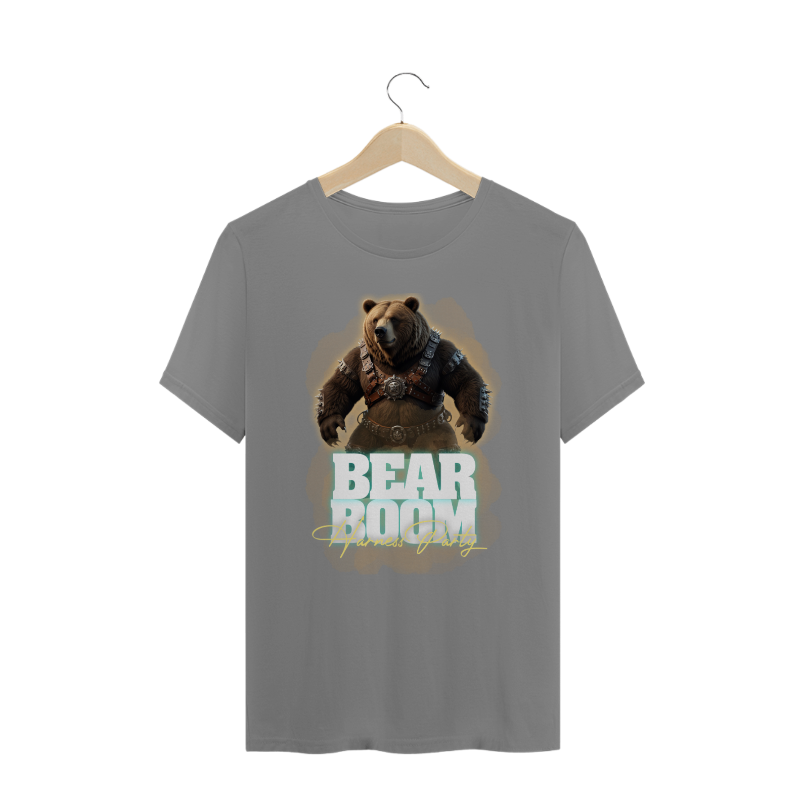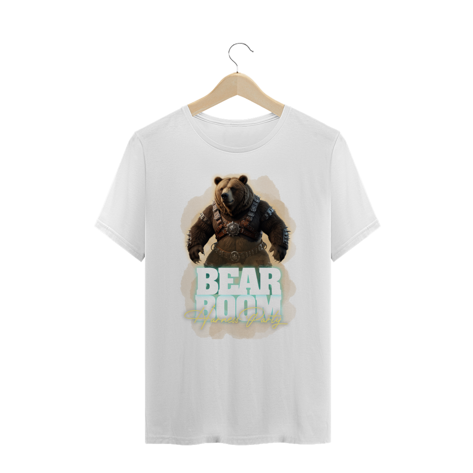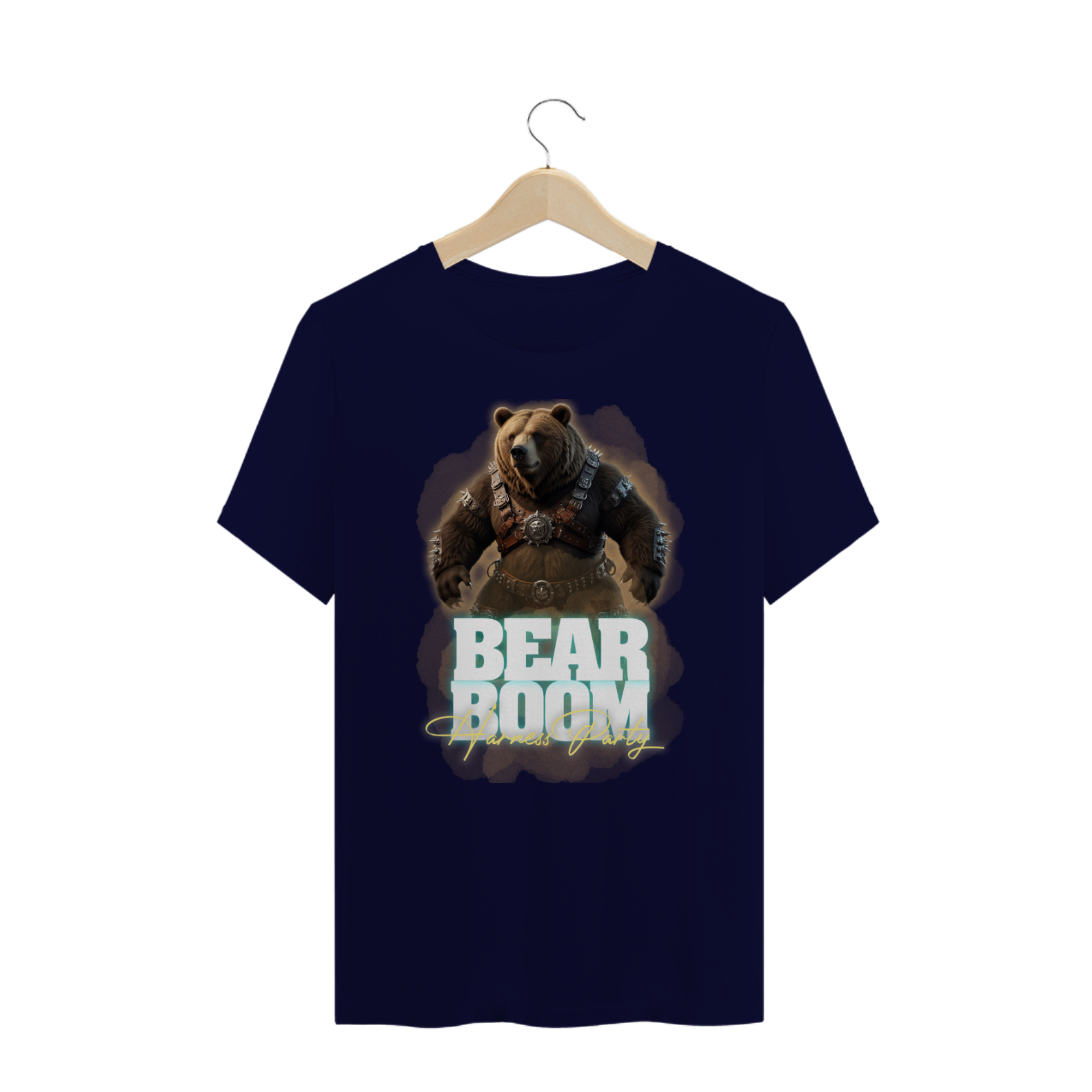 Esta estampa de camiseta foi criada especialmente para a festa "Harness Party" da Bearboom, um evento da comunidade gay bear, onde a celebração da diversidade e da autoexpressão são o foco principal. A imagem destaca um imponente urso usando um arnês com detalhes metálicos, representando a força e a masculinidade típicas da subcultura bear. O urso está envolvido em um estilo visual poderoso e marcante, com detalhes de cintos e espinhos que enfatizam uma estética robusta e aventureira, perfeita para um evento de confraternização e empoderamento. Com o título "Bearboom - Harness Party" em letras grandes e chamativas, a arte é ideal para atrair o público alvo de festas e encontros LGBTQIA+, especialmente os membros da comunidade bear.