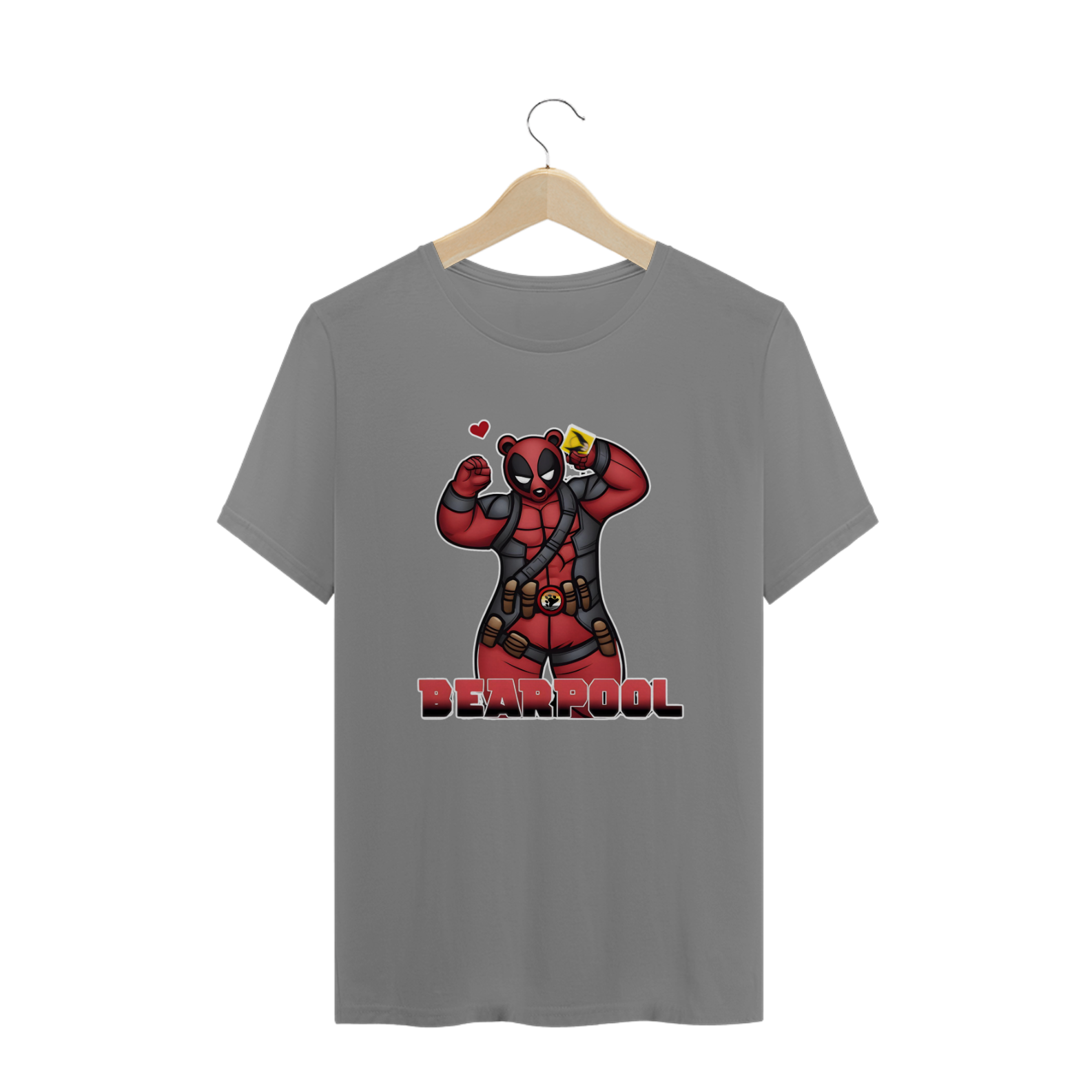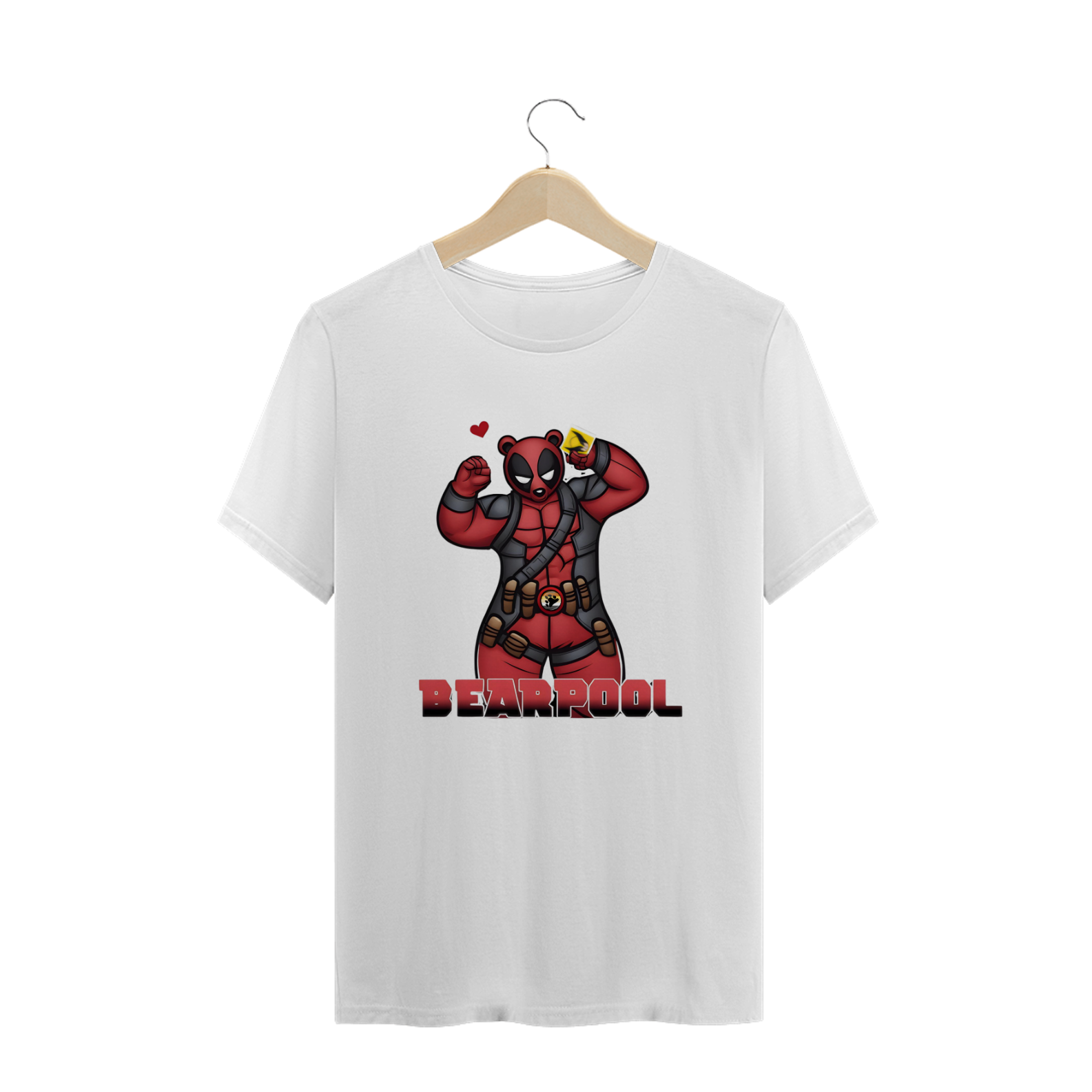 A estampa "Bearpool" é uma mistura divertida e irreverente que combina o estilo do anti-herói Deadpool com o espírito da comunidade Gay Bear. Este urso musculoso, vestido como o personagem da Marvel, carrega a icônica bandeira Bear no cinto, fazendo um aceno à cultura pop enquanto celebra o orgulho Bear. Ideal para quem adora misturar humor, cultura geek e identidade, esta camiseta é perfeita para se destacar em qualquer evento LGBT ou convenção de quadrinhos. A "Bearpool" é a escolha perfeita para quem quer expressar seu orgulho e senso de humor de maneira única e marcante.