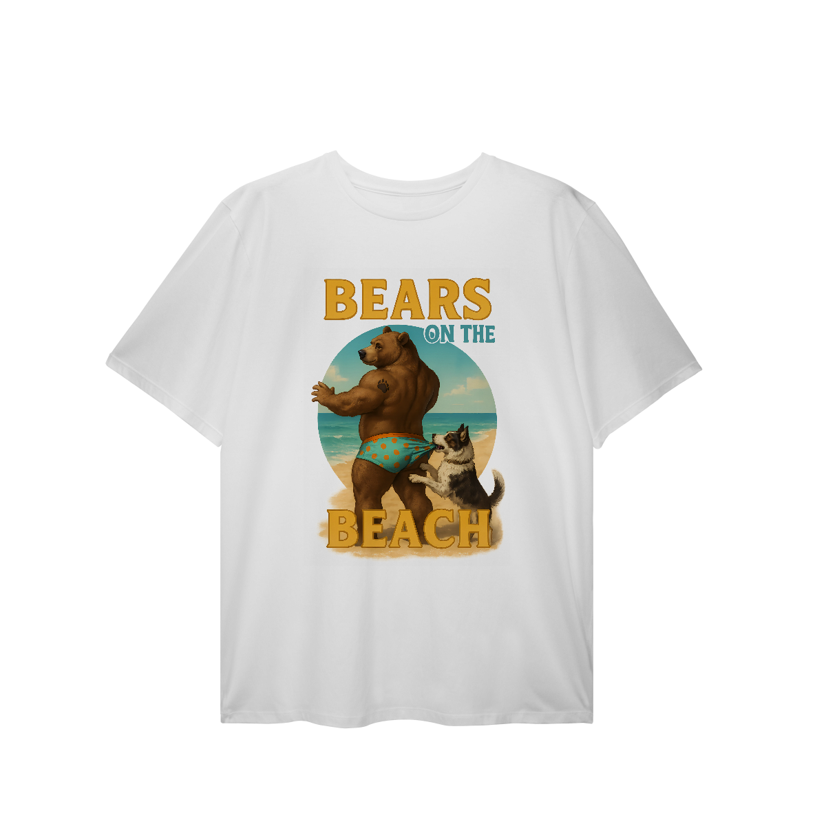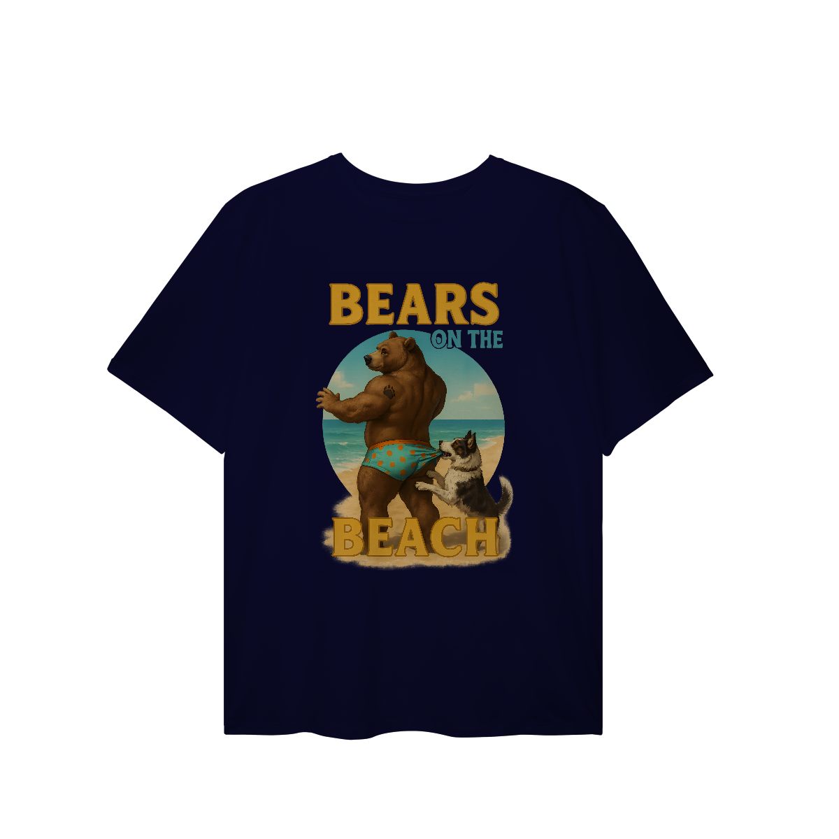 Essa estampa divertida e provocante traz um urso musculoso curtindo um dia ensolarado na praia, enquanto seu cachorro arteiro puxa sua sunga estampada. A imagem mistura sensualidade e humor de forma leve, perfeita para representar o estilo descontraído e sexy da comunidade Gay Bear. Com um visual que remete ao verão, festas à beira-mar e encontros de ursos, essa estampa celebra corpos reais e orgulho com muito carisma. Ideal para quem frequenta eventos bear, pool parties LGBTQIA+ ou simplesmente quer mostrar seu orgulho com uma pitada de irreverência. A combinação do urso sarado, a praia ensolarada e o toque cômico do cachorro cria uma camiseta icônica, perfeita para chamar atenção e arrancar sorrisos por onde passar.