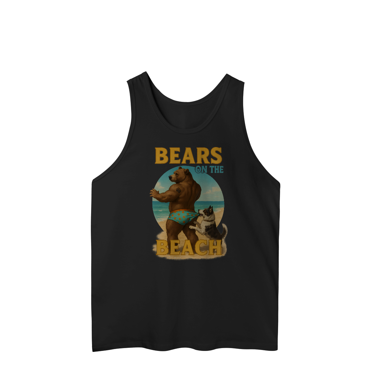Essa estampa divertida e provocante traz um urso musculoso curtindo um dia ensolarado na praia, enquanto seu cachorro arteiro puxa sua sunga estampada. A imagem mistura sensualidade e humor de forma leve, perfeita para representar o estilo descontraído e sexy da comunidade Gay Bear. Com um visual que remete ao verão, festas à beira-mar e encontros de ursos, essa estampa celebra corpos reais e orgulho com muito carisma. Ideal para quem frequenta eventos bear, pool parties LGBTQIA+ ou simplesmente quer mostrar seu orgulho com uma pitada de irreverência. A combinação do urso sarado, a praia ensolarada e o toque cômico do cachorro cria uma camiseta icônica, perfeita para chamar atenção e arrancar sorrisos por onde passar.