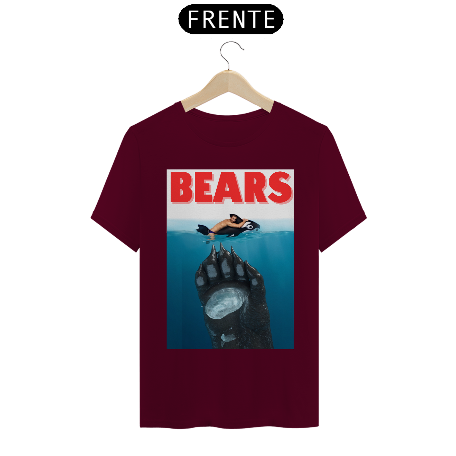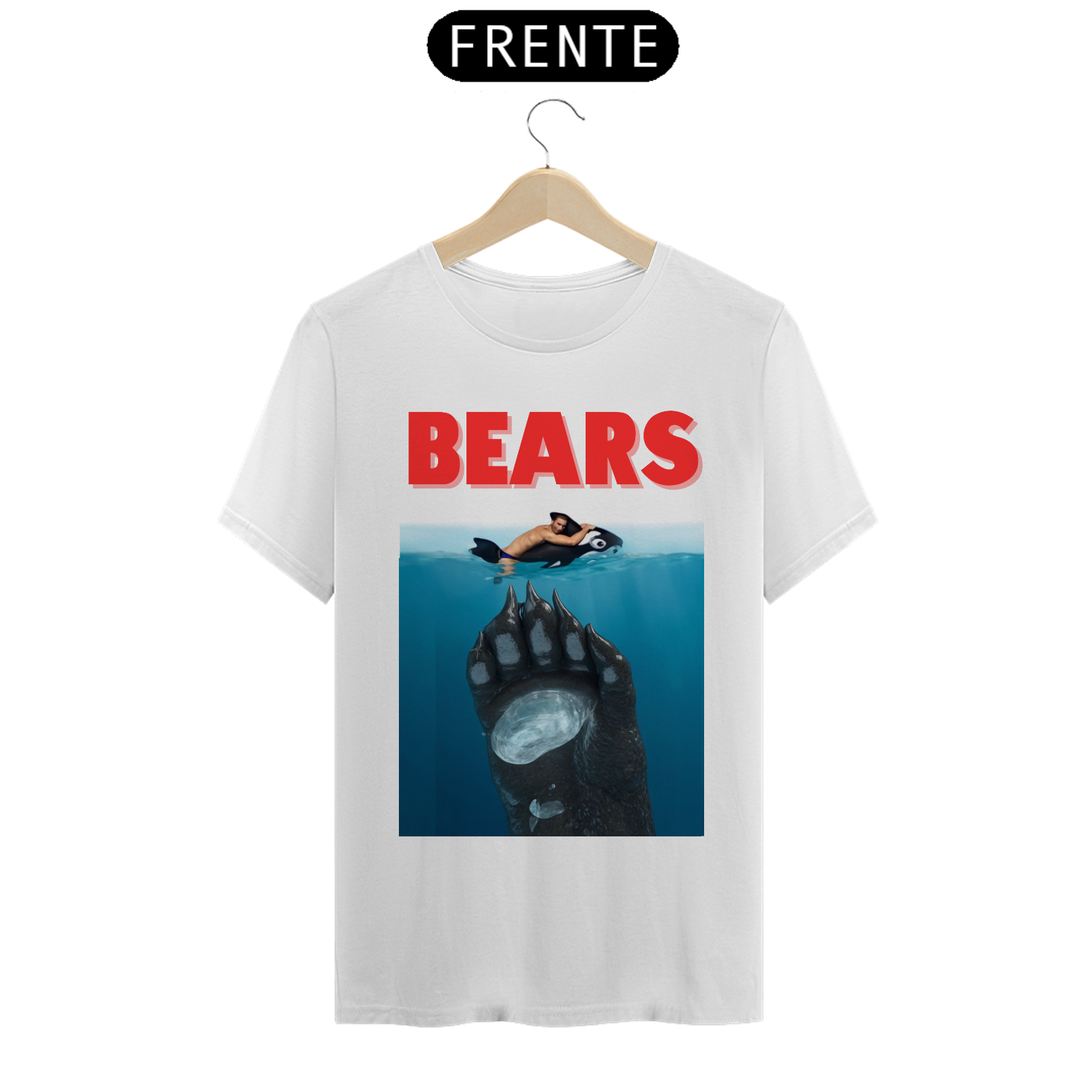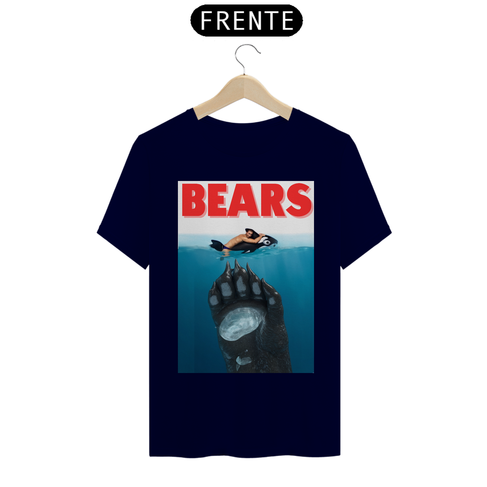 A estampa "Bears" é uma homenagem divertida ao clássico filme "Tubarão", mas com uma reviravolta que é totalmente Bear. Nesta paródia criativa, vemos um urso emergindo das profundezas, pronto para surpreender seu "alvo", que está relaxando inocentemente em uma boia. Com um toque de humor e uma clara referência à cultura pop, esta camiseta é perfeita para aqueles que querem mostrar sua identidade Bear de maneira descontraída e espirituosa. A "Bears" não só celebra a comunidade Bear, mas também adiciona um toque icônico e inesperado ao guarda-roupa de qualquer fã do gênero.