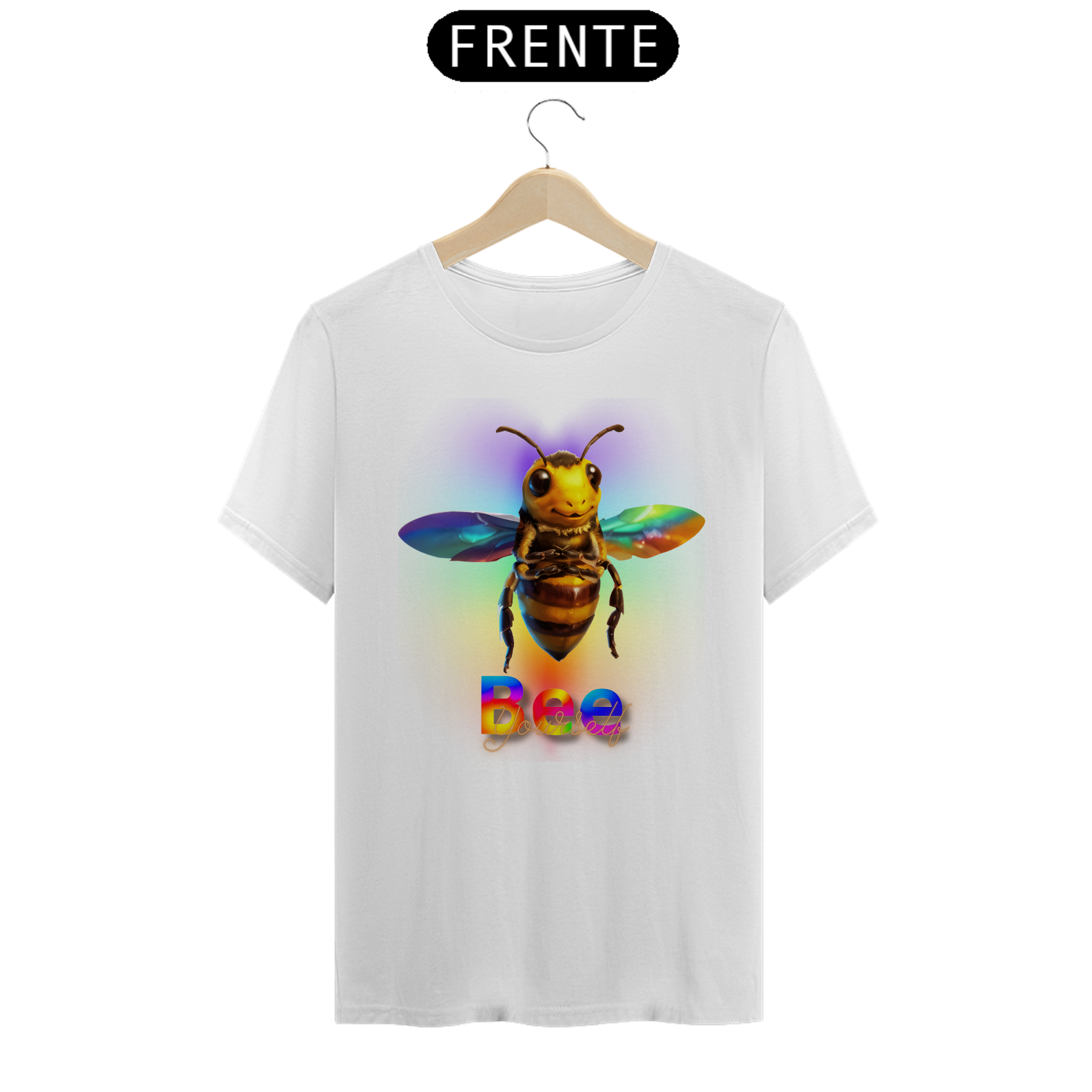 Esta estampa de camiseta é um convite para celebrar a diversidade e autenticidade, apresentando uma abelha com asas refletindo as cores vibrantes do arco-íris, envolta em uma bruma igualmente colorida. Sobre a frase 'Bee Yourself', a palavra 'Bee' é preenchida com as cores do arco-íris, destacando a importância de ser verdadeiramente quem somos. Feita para a comunidade Gay Bear, essa imagem transmite uma mensagem de aceitação e orgulho, incentivando a expressão individual e o amor próprio. Ao vestir essa camiseta, você não apenas celebra a diversidade, mas também promove um ambiente inclusivo e acolhedor dentro da comunidade LGBTQ+.