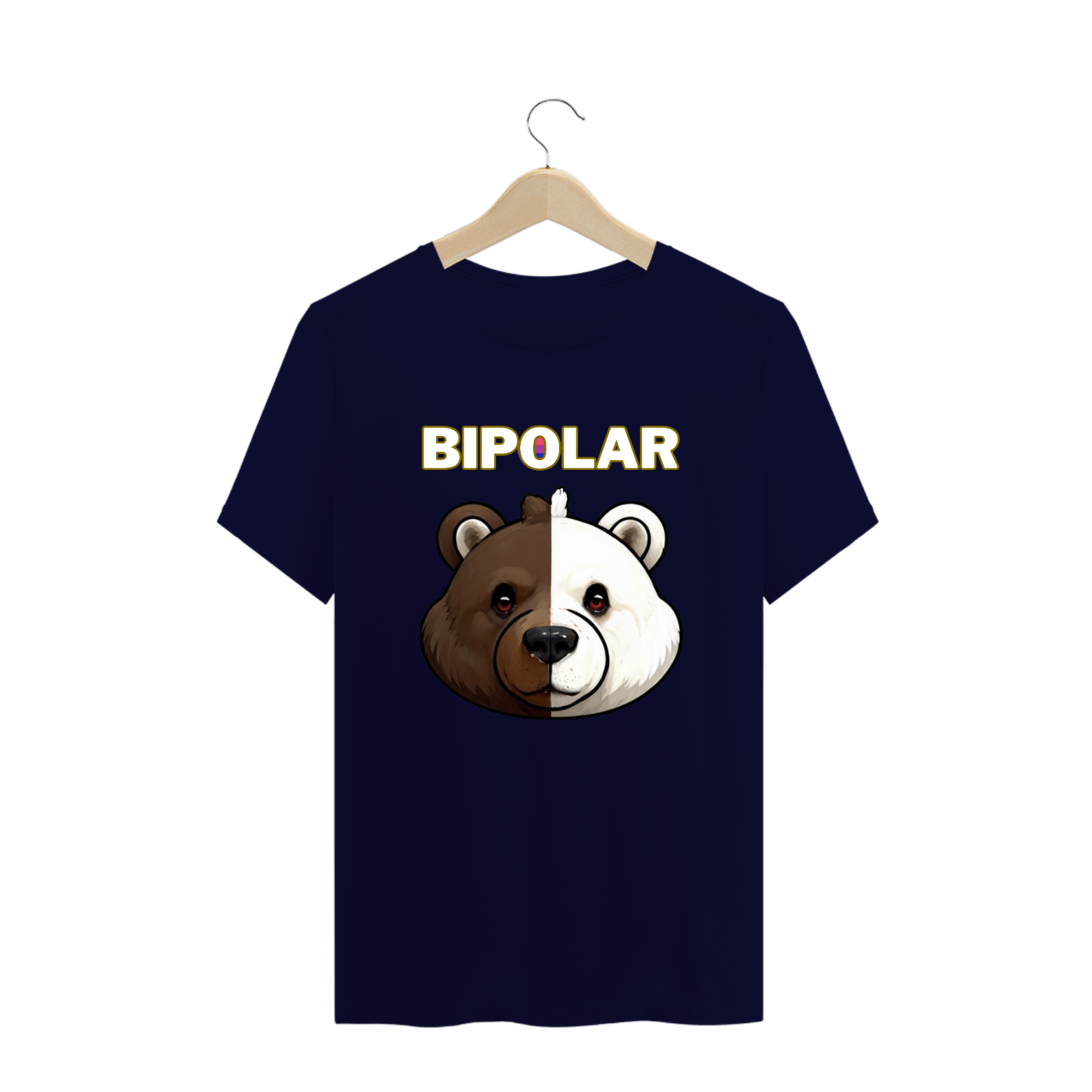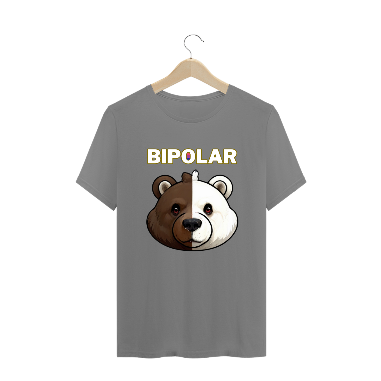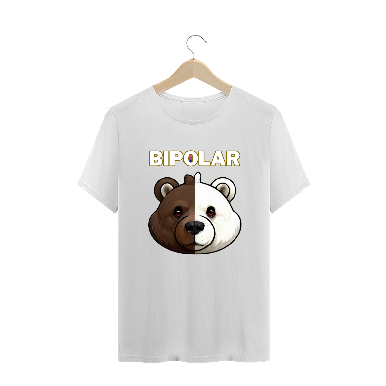 Esta camiseta cativante celebra a diversidade e a identidade fluida da comunidade Gay Bear, apresentando a imagem de um urso com metade da face de um urso polar e metade de um urso grizzly. Sobreposta à imagem está a palavra 'BIPOLAR', com as cores vibrantes da bandeira dos bissexuais adornando a letra 'O'. Esta estampa é uma representação visual poderosa da interseccionalidade e da complexidade da identidade, oferecendo uma mensagem de inclusão e aceitação para aqueles que se identificam com a jornada multifacetada do espectro LGBTQ+.