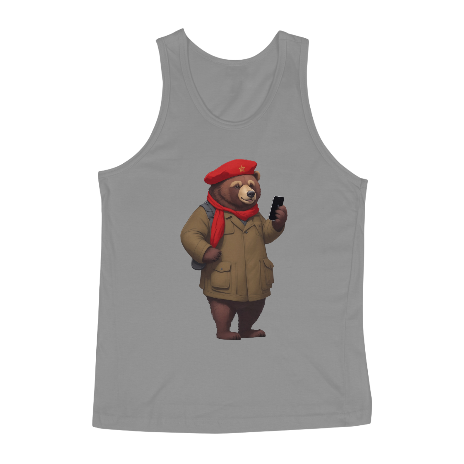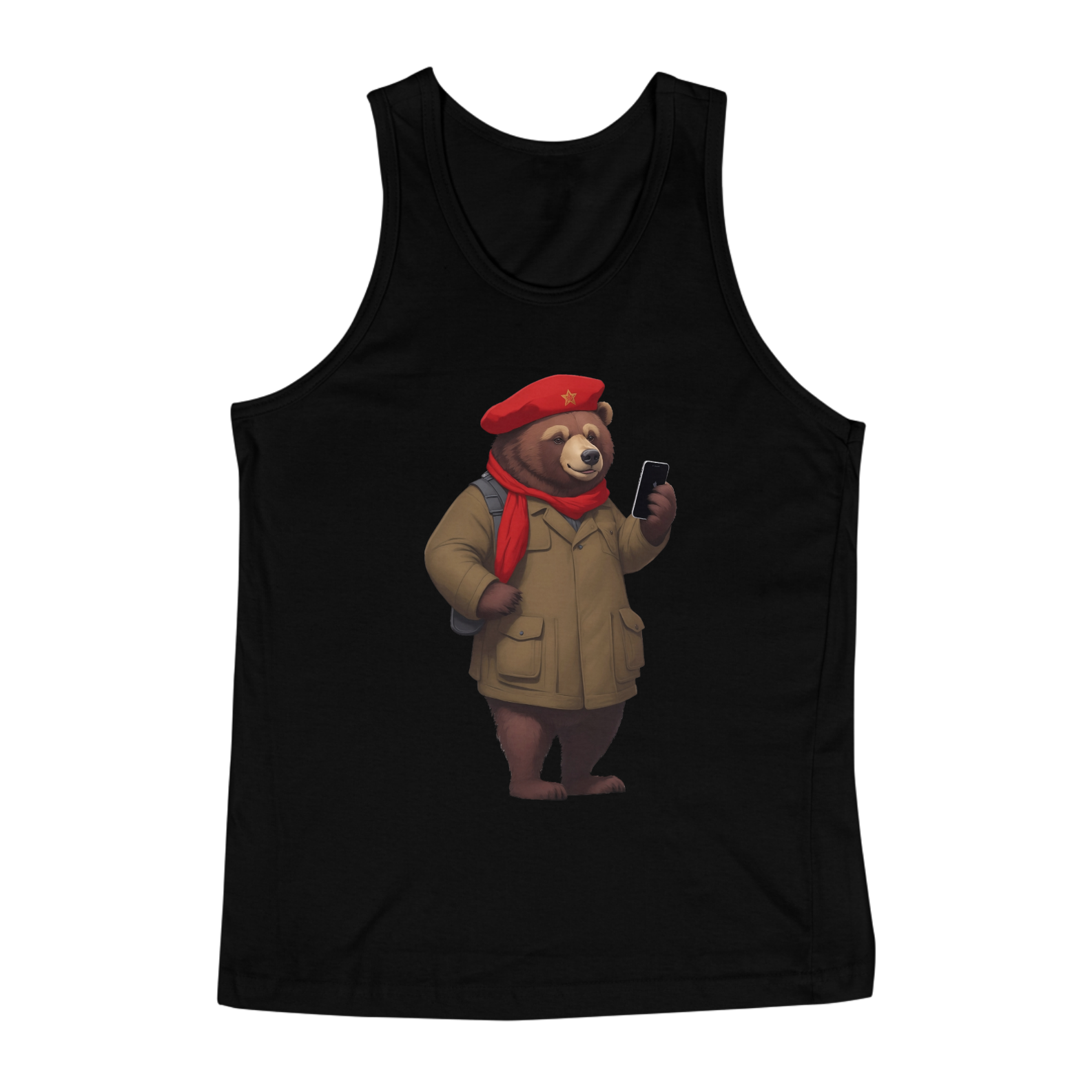 Apresentamos uma estampa que é um tributo à elegância, ao estilo e à comunidade Gaybear. Neste design charmoso, um urso usa uma boina no estilo russo e segura um iPhone, combinando tradição e modernidade com muito carisma.