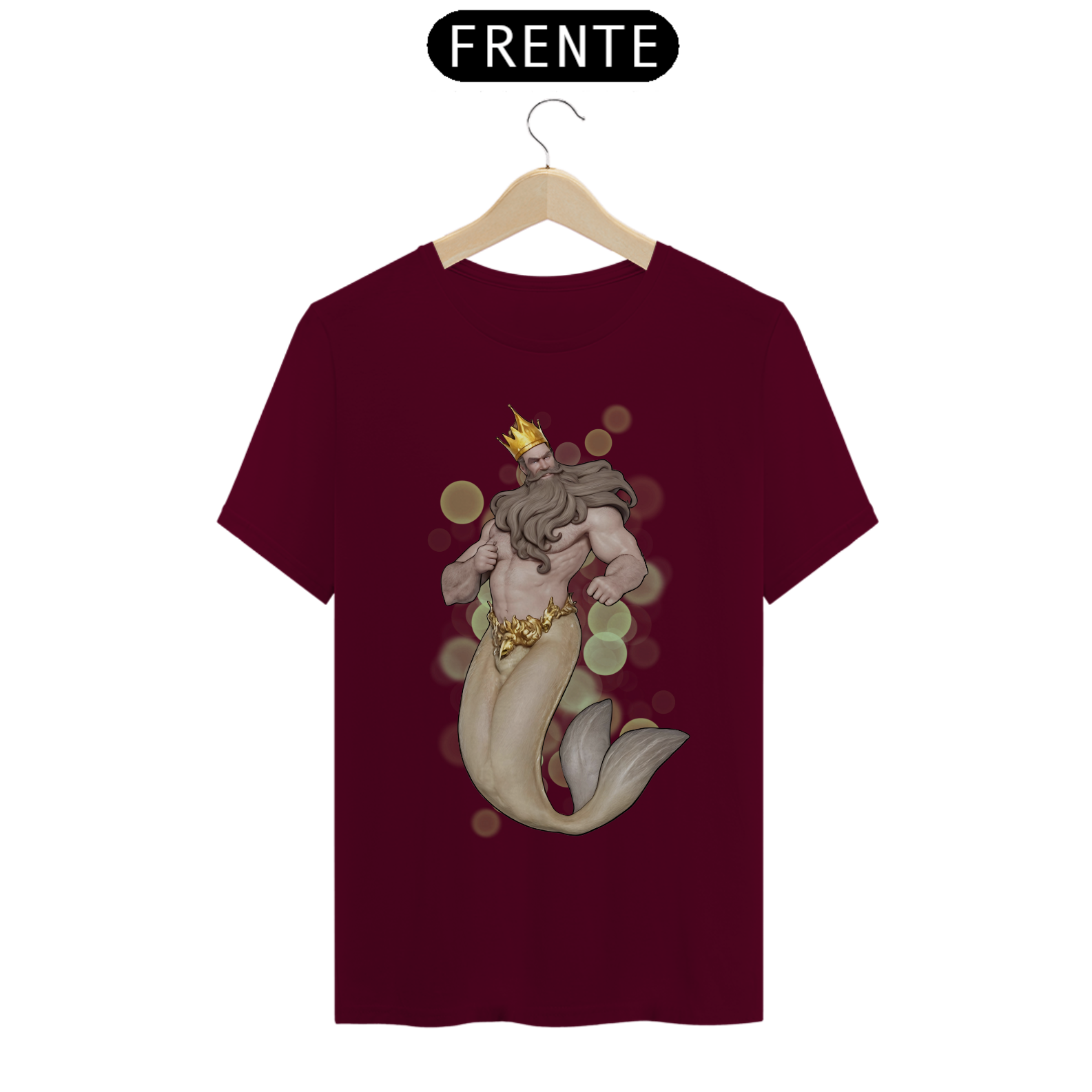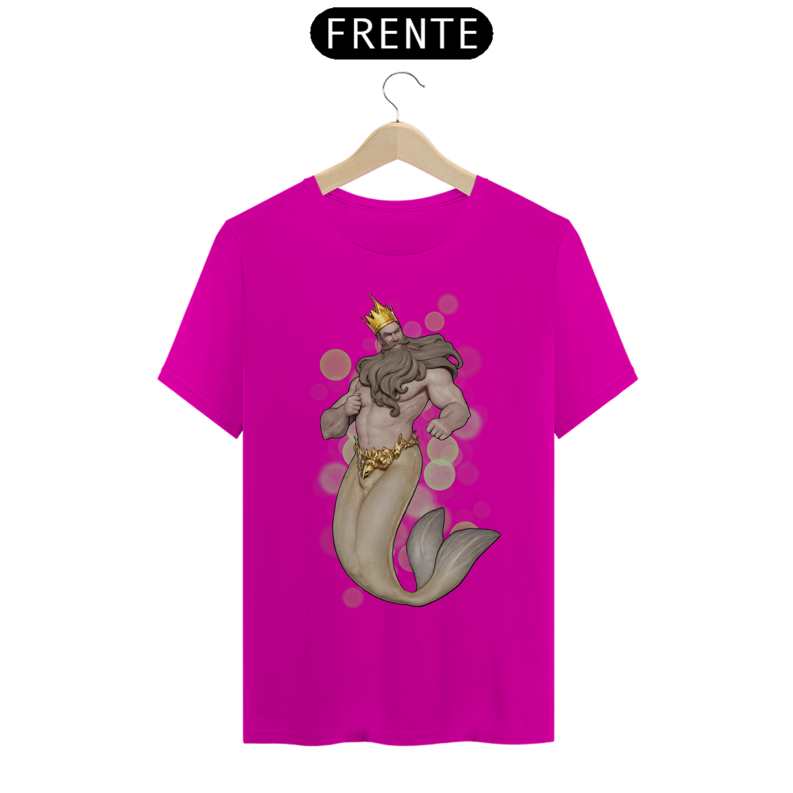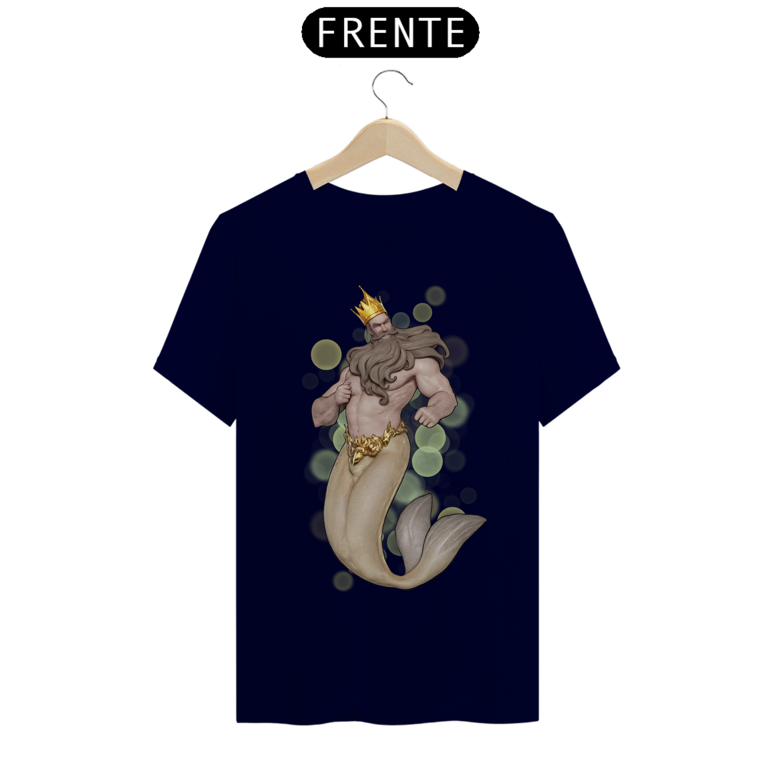 A estampa "Daddy Tritão" traz uma poderosa e majestosa representação do Rei Tritão, uma figura icônica e imponente que simboliza a força e a realeza dentro da comunidade Gay Bear. Com uma coroa dourada e uma barba impressionante, o Rei Tritão exibe uma presença dominadora e carismática. Sua cauda de peixe dourada contrasta elegantemente com seu torso musculoso, criando uma estampa que celebra tanto a mitologia quanto a estética robusta e masculina apreciada pela comunidade Bear. A camiseta "Daddy Tritão" é ideal para quem deseja expressar sua identidade com um toque de realeza e misticismo, destacando-se em eventos e encontros com uma peça que combina força, beleza e um espírito mitológico indomável.
