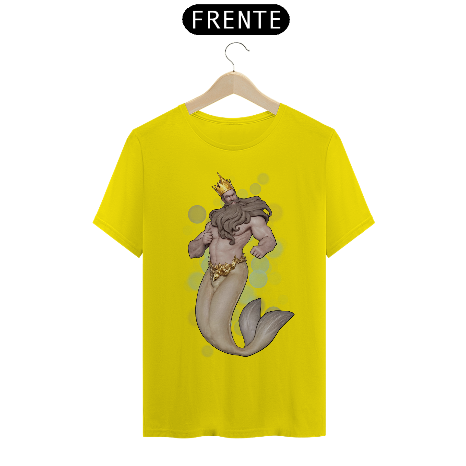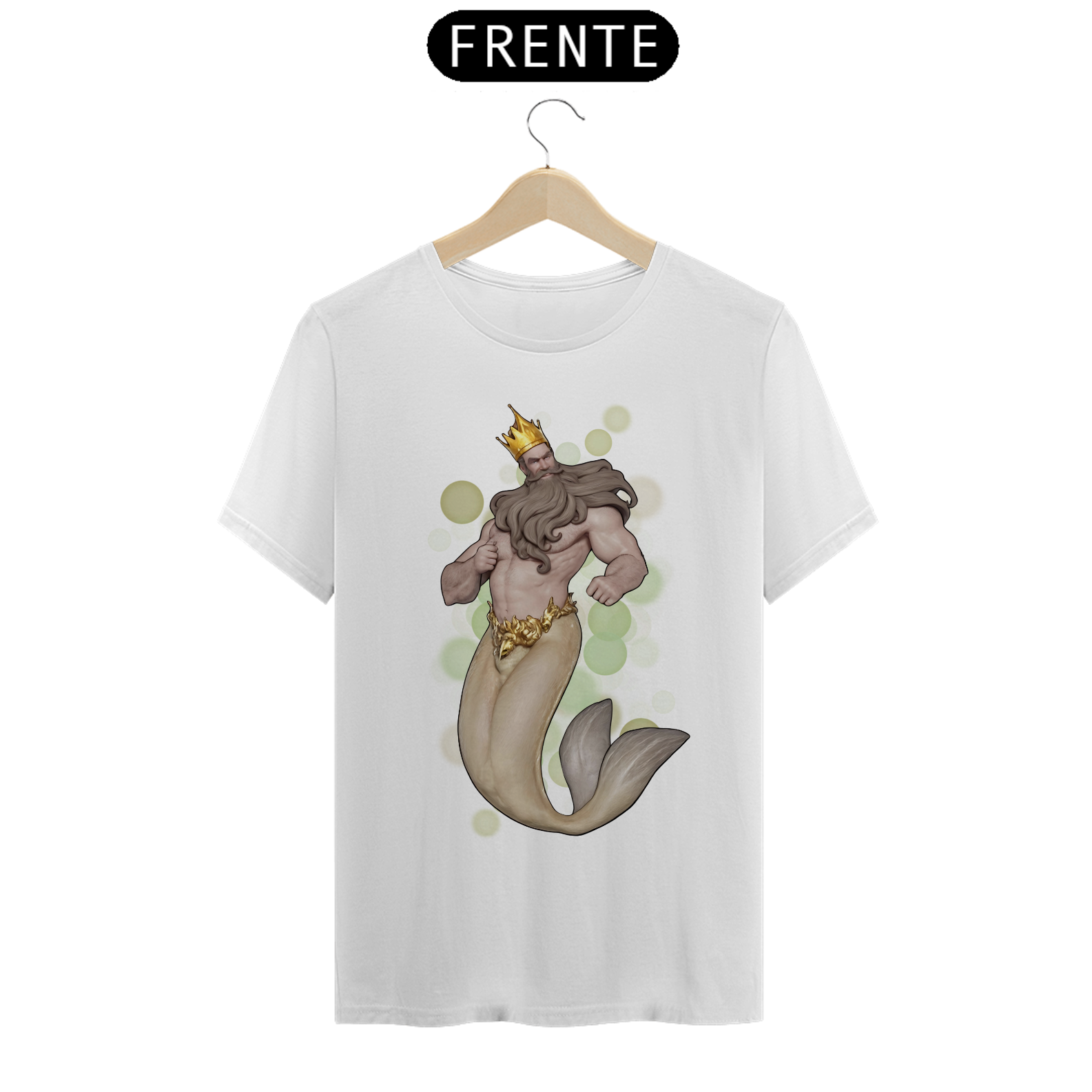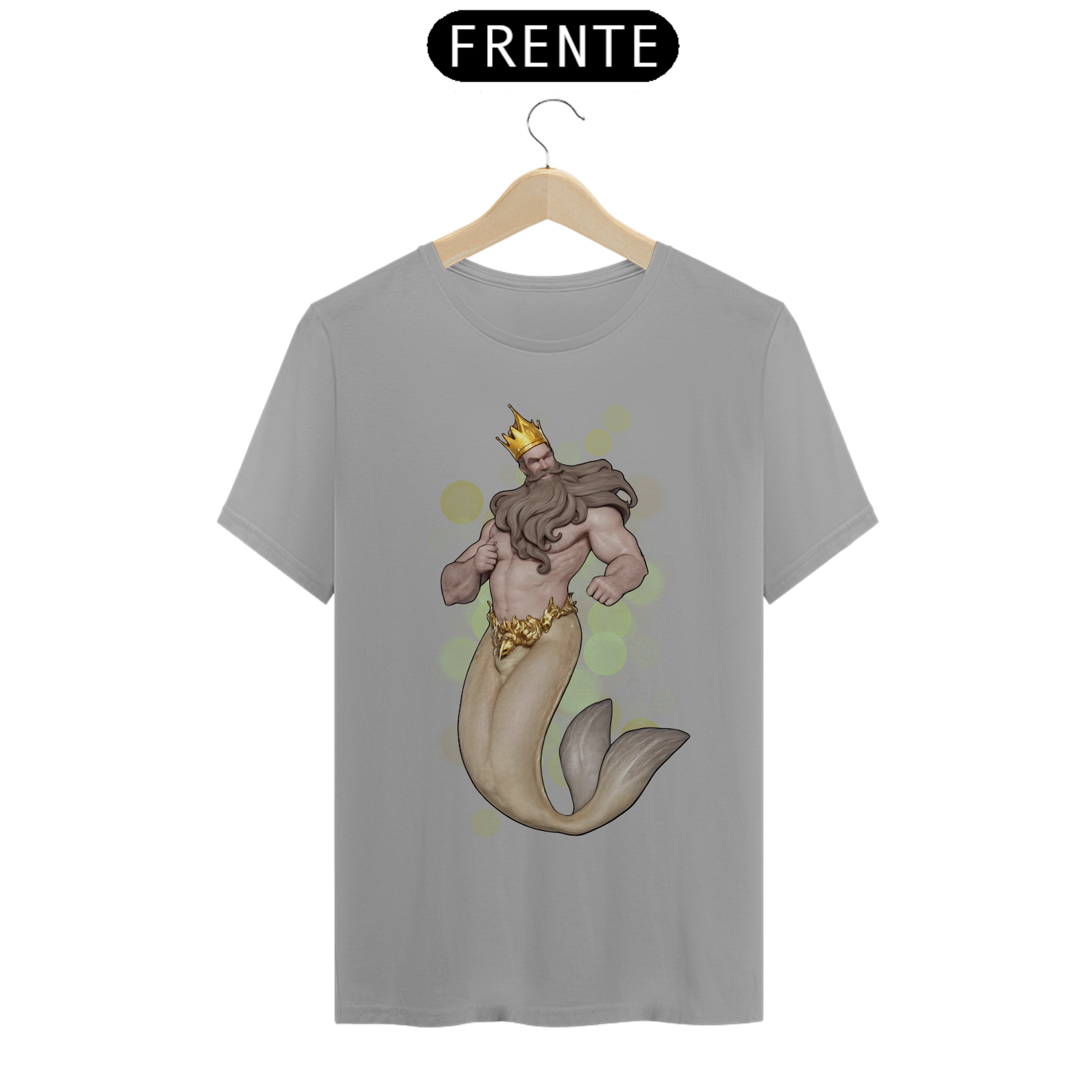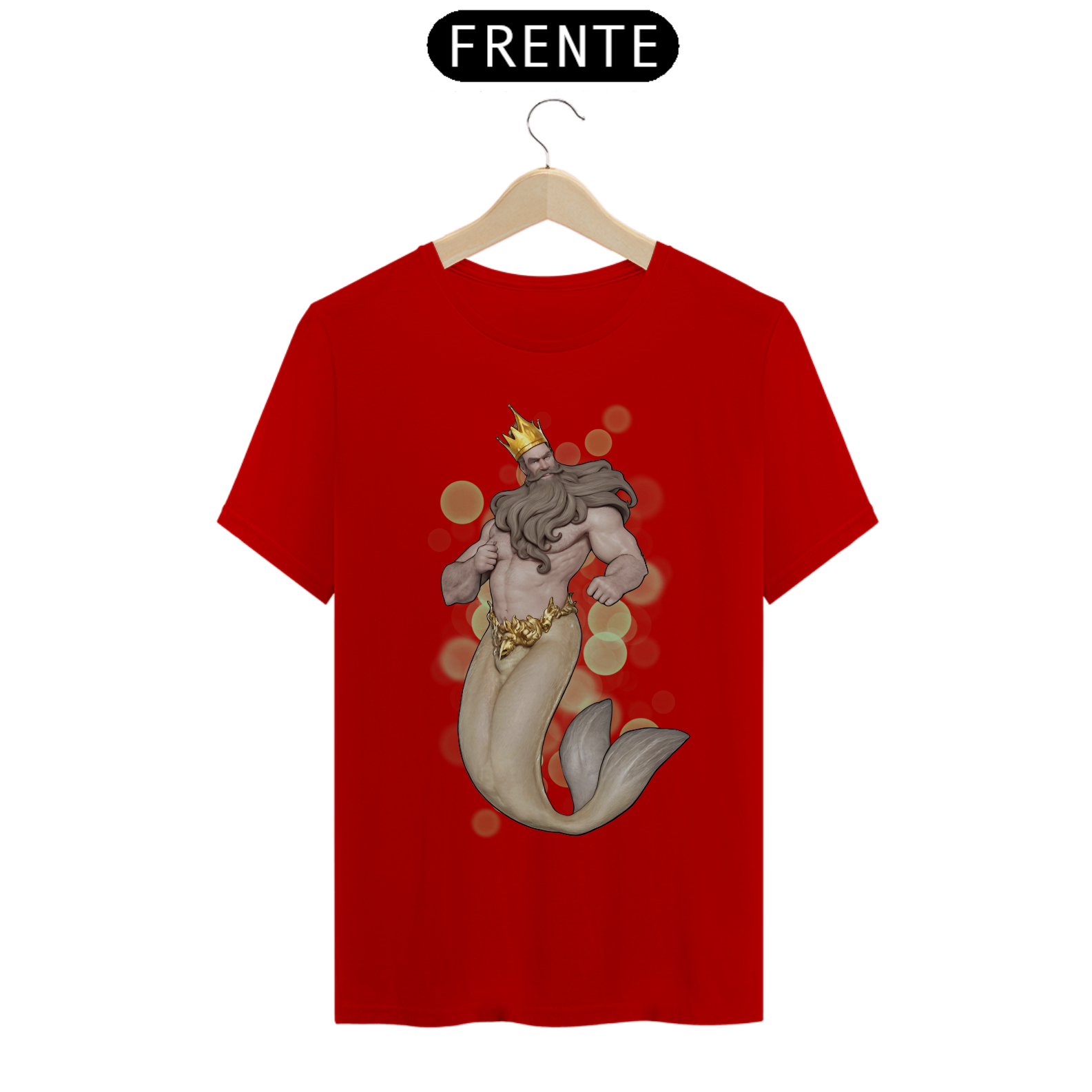A estampa "Daddy Tritão" traz uma poderosa e majestosa representação do Rei Tritão, uma figura icônica e imponente que simboliza a força e a realeza dentro da comunidade Gay Bear. Com uma coroa dourada e uma barba impressionante, o Rei Tritão exibe uma presença dominadora e carismática. Sua cauda de peixe dourada contrasta elegantemente com seu torso musculoso, criando uma estampa que celebra tanto a mitologia quanto a estética robusta e masculina apreciada pela comunidade Bear. A camiseta "Daddy Tritão" é ideal para quem deseja expressar sua identidade com um toque de realeza e misticismo, destacando-se em eventos e encontros com uma peça que combina força, beleza e um espírito mitológico indomável.