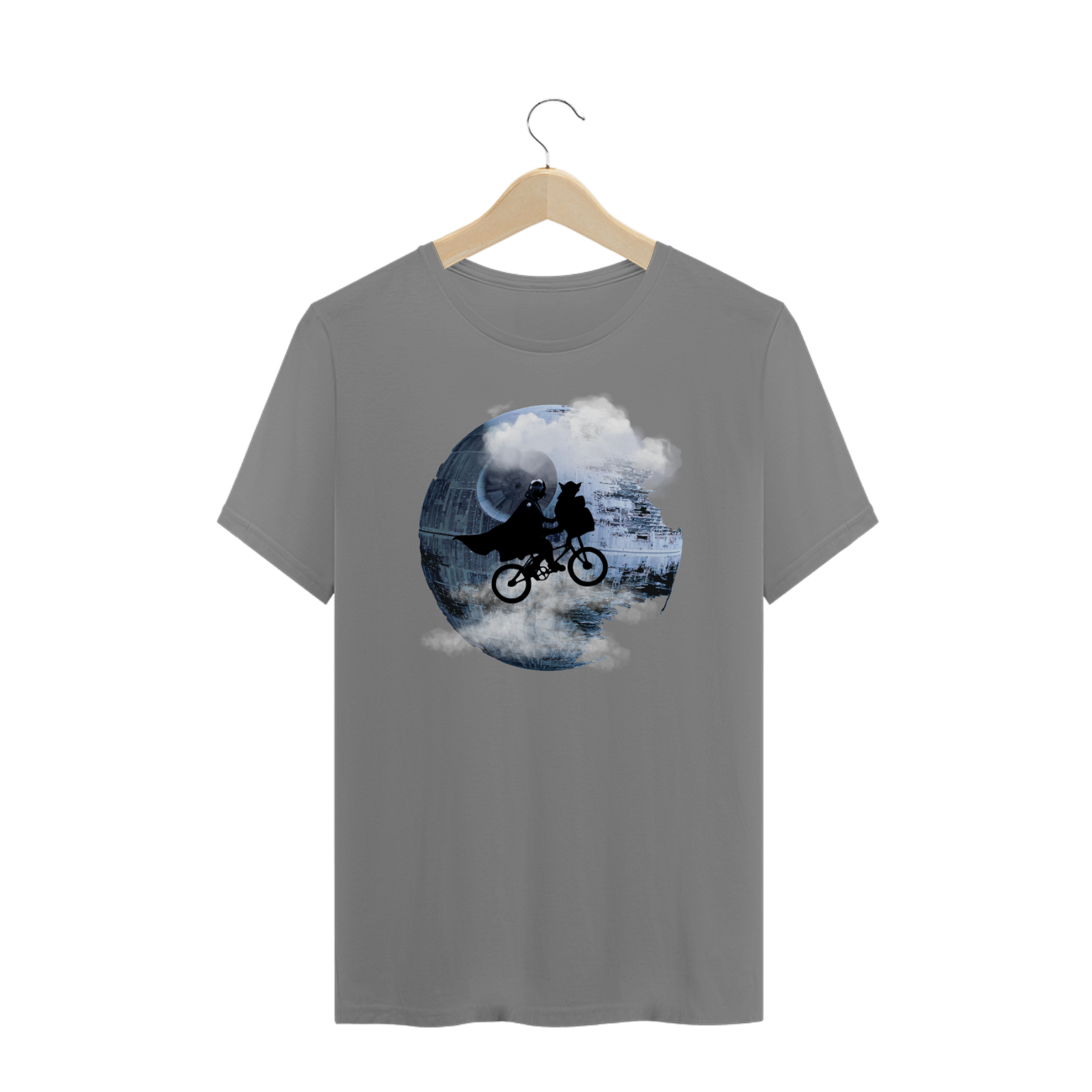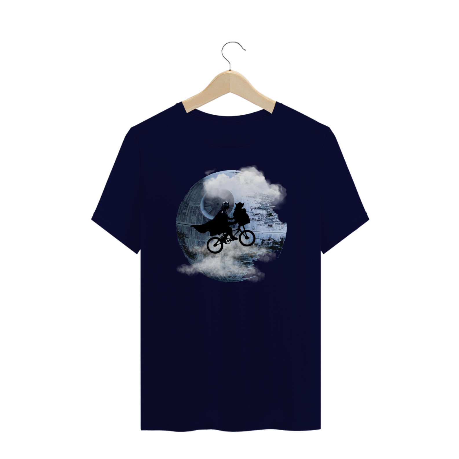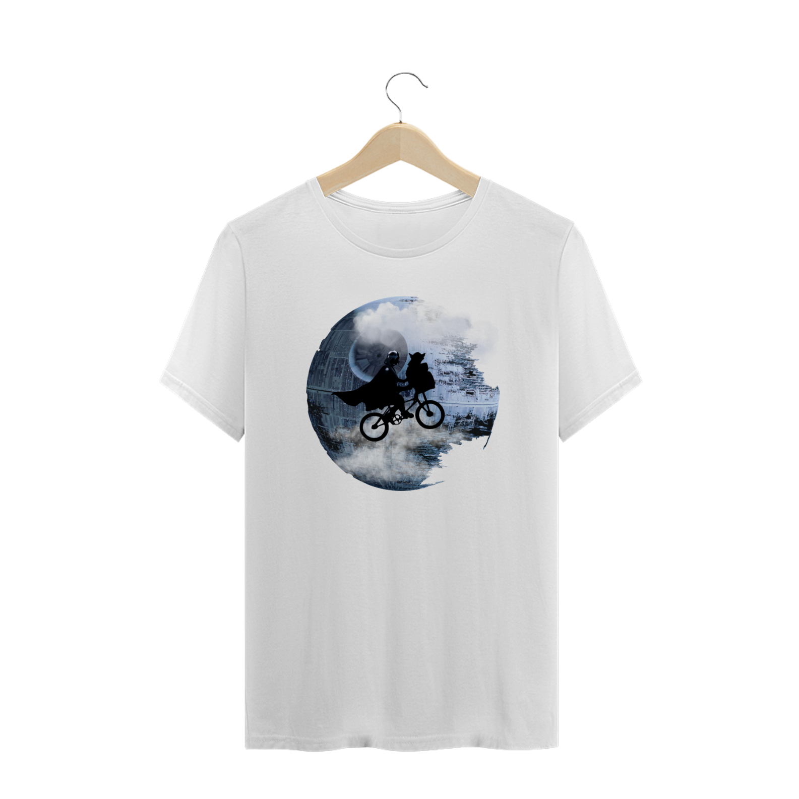 A estampa "Death Star E.T." é uma fusão criativa que combina dois ícones da cultura pop em uma única imagem única e divertida. Nesta estampa, vemos uma referência direta ao clássico "E.T. - O Extraterrestre", com a silhueta de Vader e Yoda em uma bicicleta, sobrevoando a Estrela da Morte do universo "Star Wars". A combinação inesperada desses dois elementos icônicos resulta em uma camiseta que atrai tanto os fãs de ficção científica quanto aqueles que adoram um toque de nostalgia dos anos 80. Esta camiseta é perfeita para eventos geek, convenções de fãs, ou simplesmente para quem deseja adicionar um toque de originalidade ao seu guarda-roupa. Com um design que mistura aventura e imaginação, a estampa "Death Star E.T." é uma escolha imperdível para os aficionados por cultura pop.