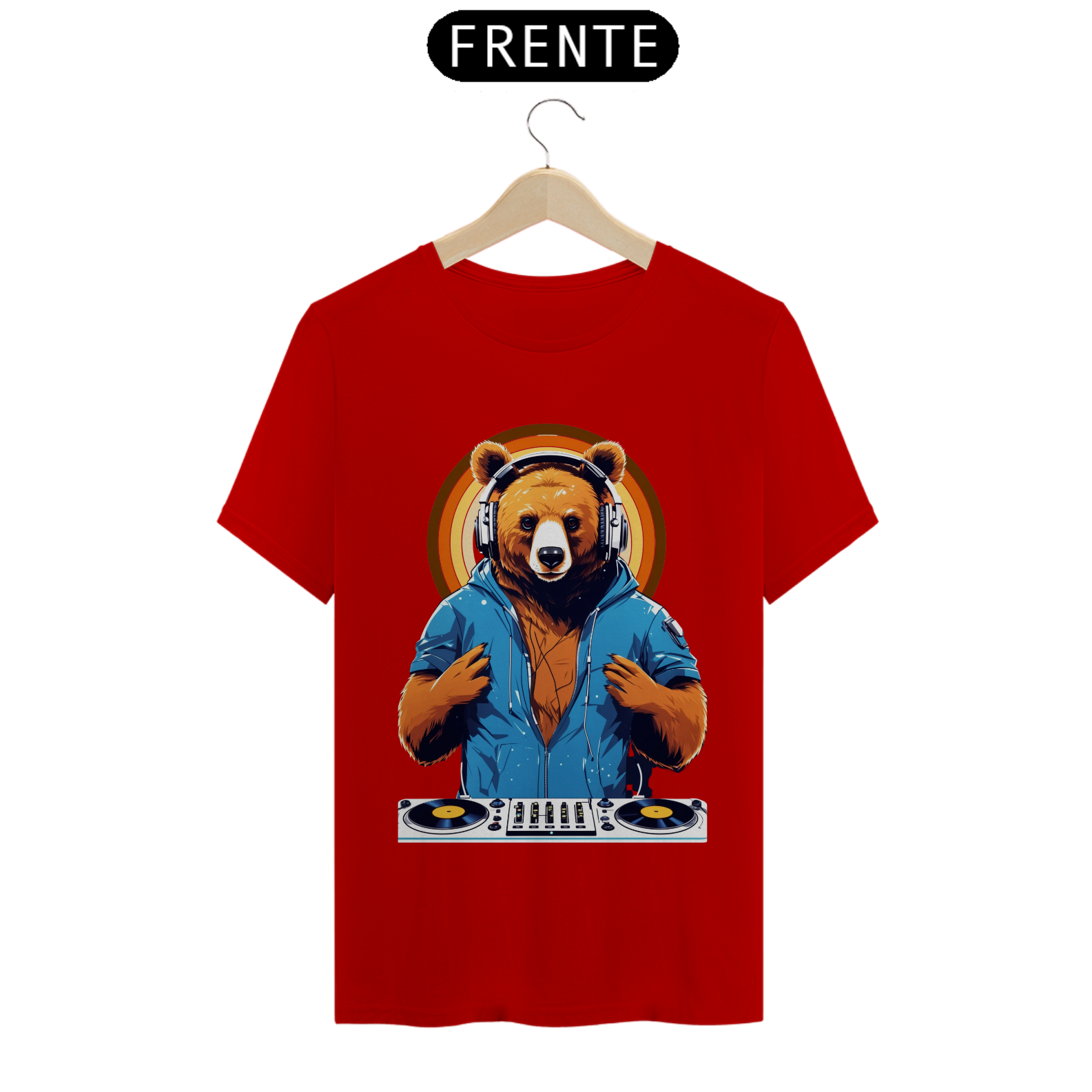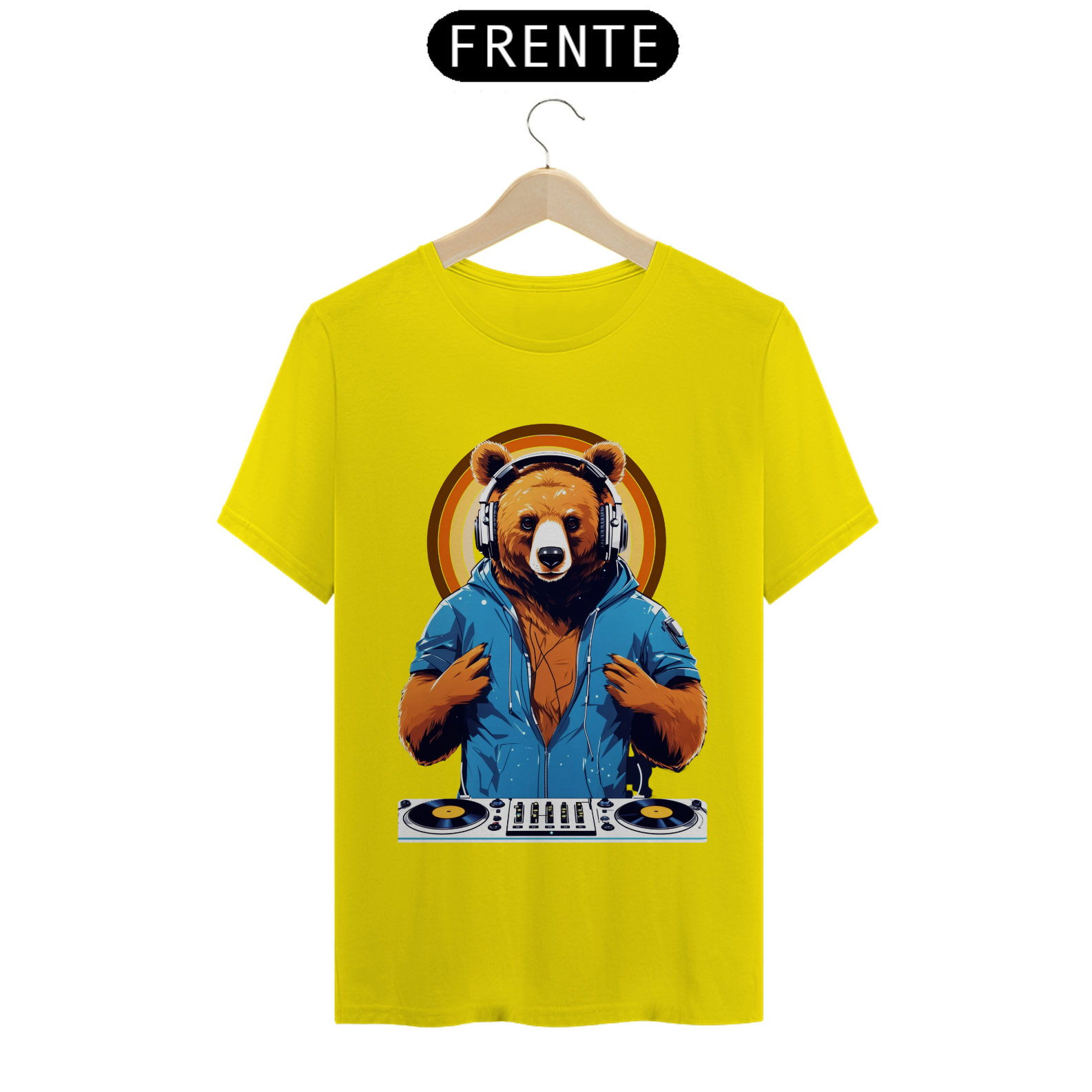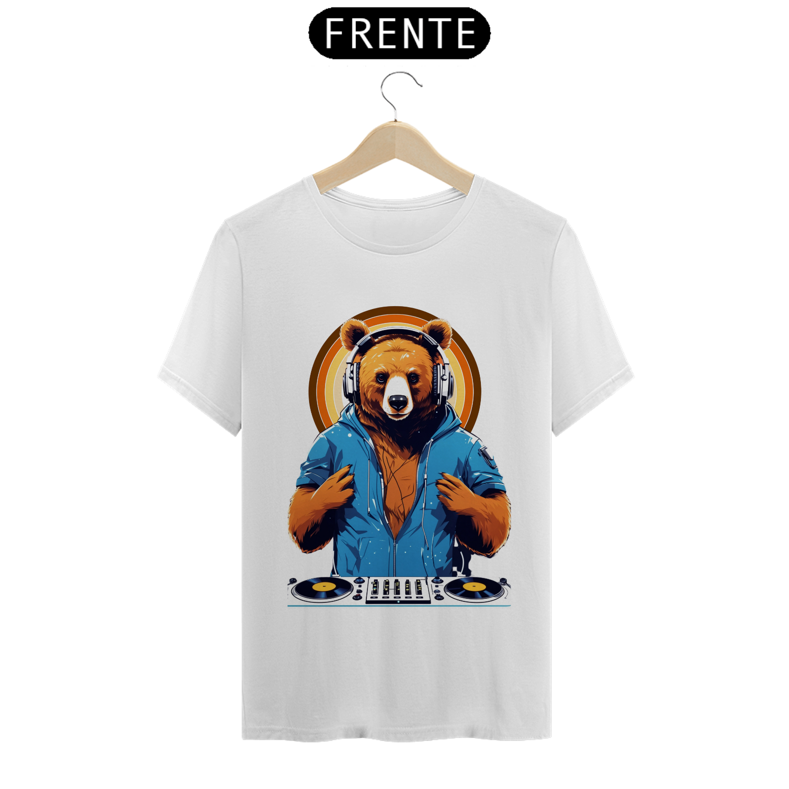 Apresentamos uma estampa que é uma celebração da música, da diversão e da comunidade Gaybear. Neste design vibrante, um urso assume o papel de DJ, com toda a energia e paixão da pista de dança.