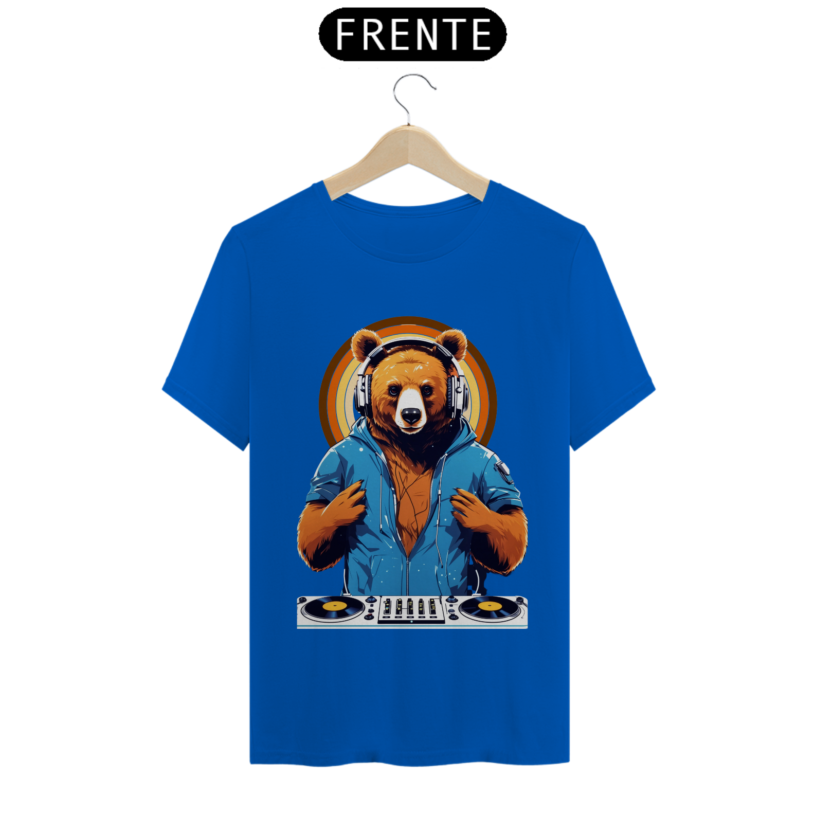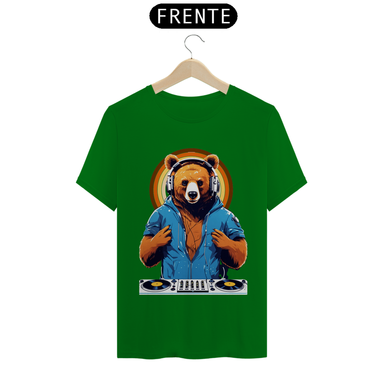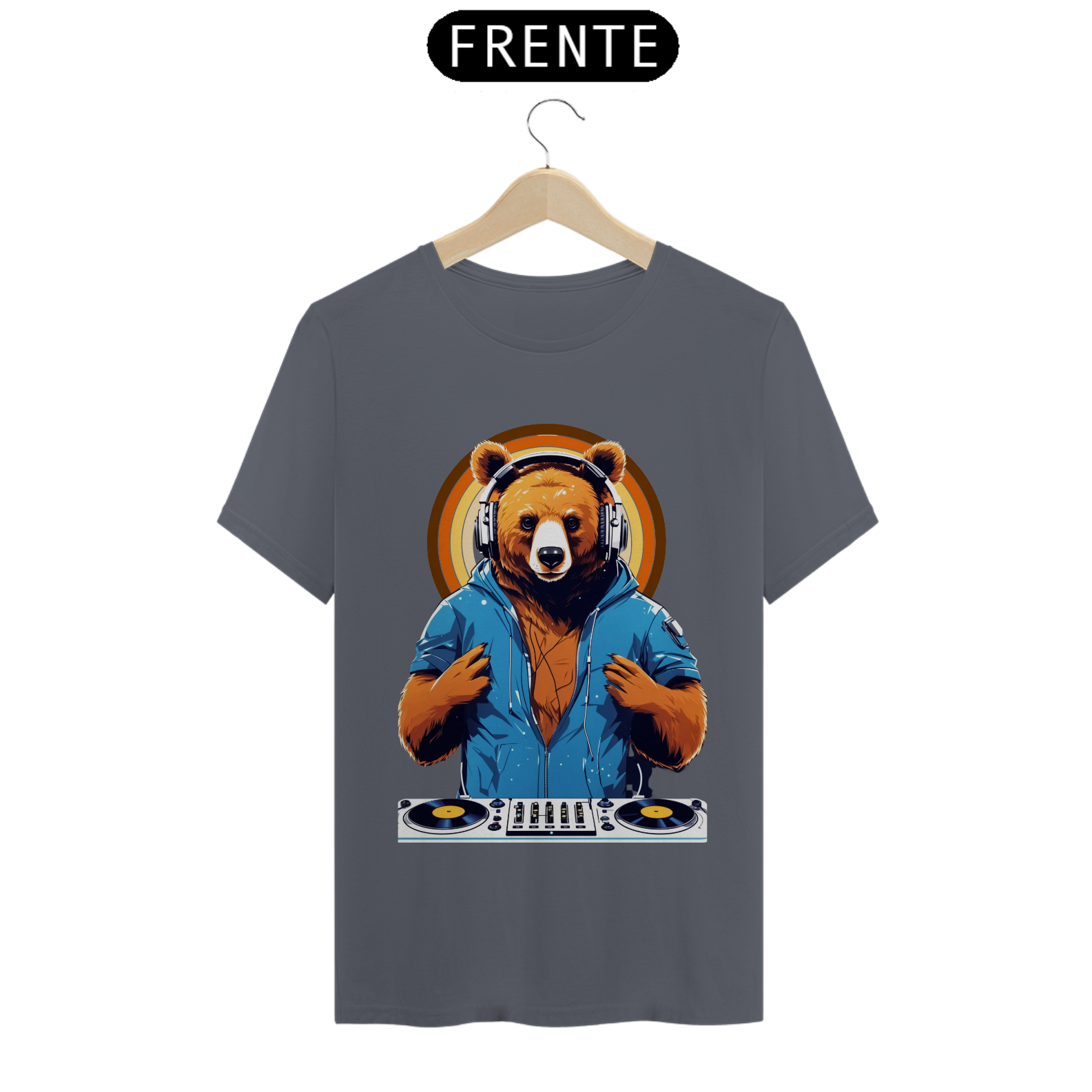 Apresentamos uma estampa que é uma celebração da música, da diversão e da comunidade Gaybear. Neste design vibrante, um urso assume o papel de DJ, com toda a energia e paixão da pista de dança.