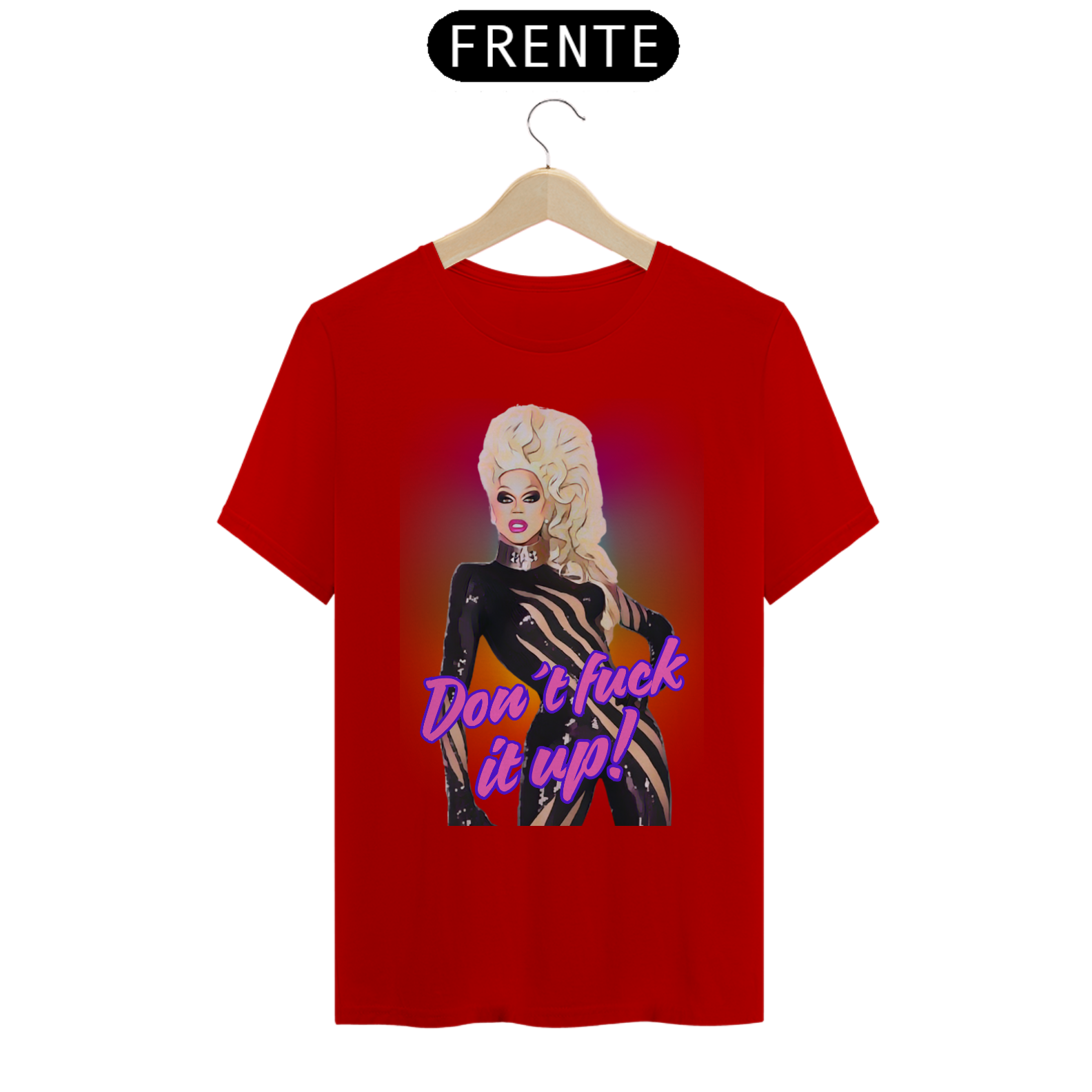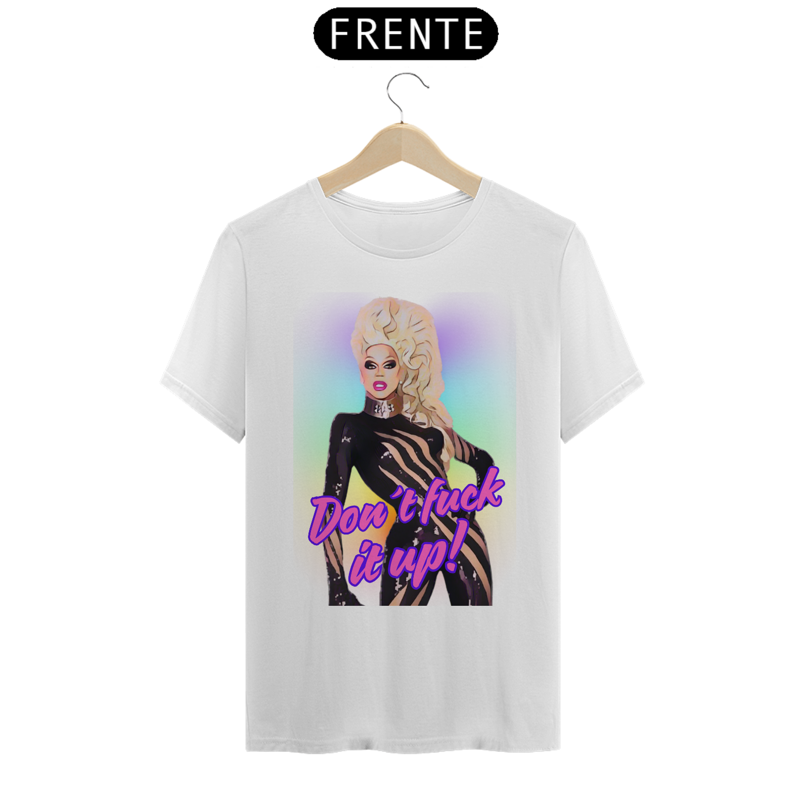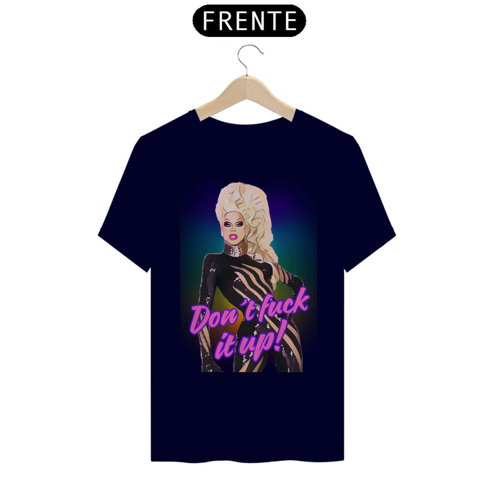 A estampa “Don't fuck it up” é uma explosão de atitude e cor, inspirada na cultura drag e na energia vibrante da comunidade LGBTQIA+. Com um toque de humor e estilo, a frase icônica "Don't fuck it up!" acompanha uma Mama Ru empoderada em um fundo arco-íris psicodélico. Essa camiseta é perfeita para quem deseja celebrar tanto a cultura Bear quanto a arte Drag, expressando orgulho, autoconfiança e autenticidade. Ideal para festivais LGBTQIA+, encontros Bear e festas temáticas, essa peça é uma homenagem à diversidade e ao espírito livre da comunidade.