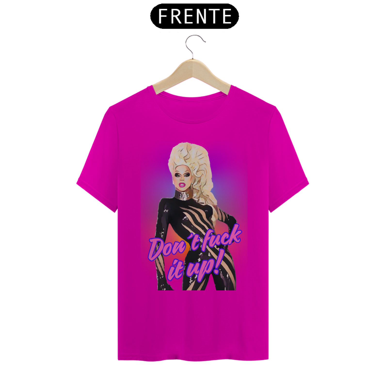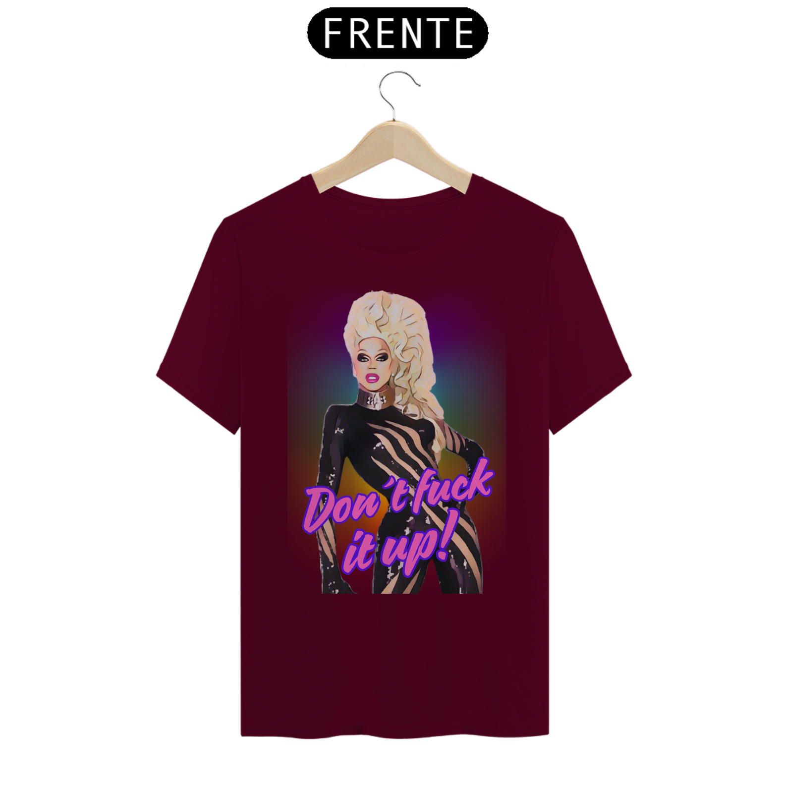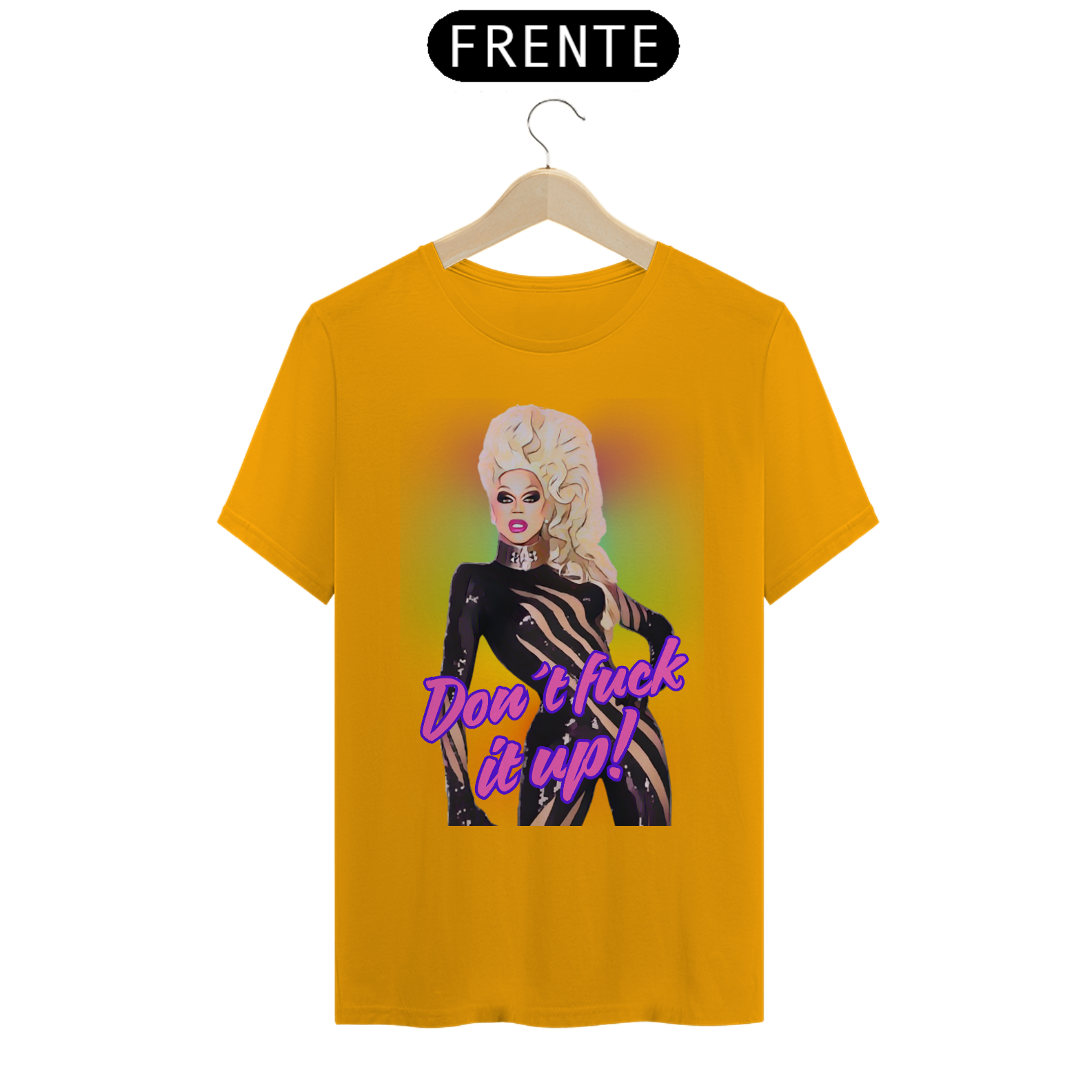 A estampa “Don't fuck it up” é uma explosão de atitude e cor, inspirada na cultura drag e na energia vibrante da comunidade LGBTQIA+. Com um toque de humor e estilo, a frase icônica "Don't fuck it up!" acompanha uma Mama Ru empoderada em um fundo arco-íris psicodélico. Essa camiseta é perfeita para quem deseja celebrar tanto a cultura Bear quanto a arte Drag, expressando orgulho, autoconfiança e autenticidade. Ideal para festivais LGBTQIA+, encontros Bear e festas temáticas, essa peça é uma homenagem à diversidade e ao espírito livre da comunidade.