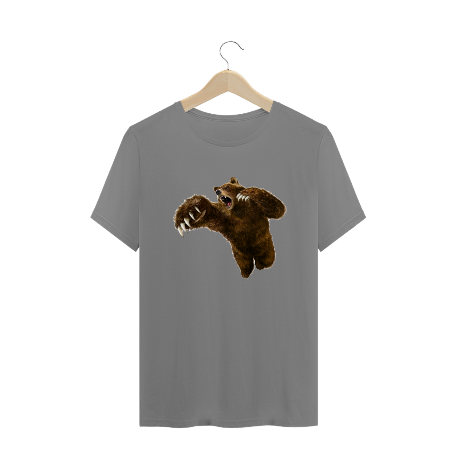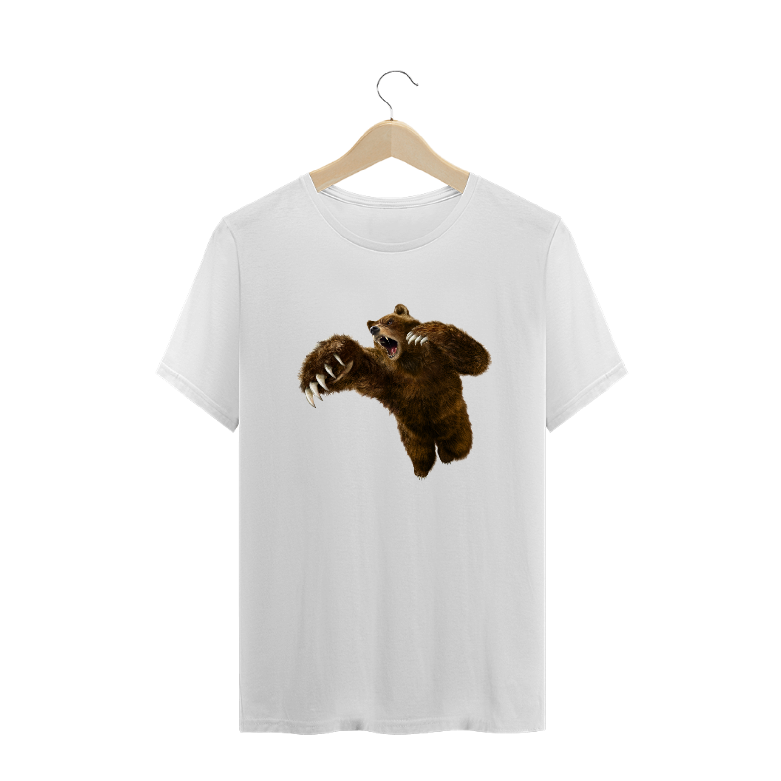 A imagem do "Fierce Brown Bear" é feita com cores vibrantes e detalhes nítidos, refletindo a qualidade da estampa e a atenção aos detalhes em sua confecção.