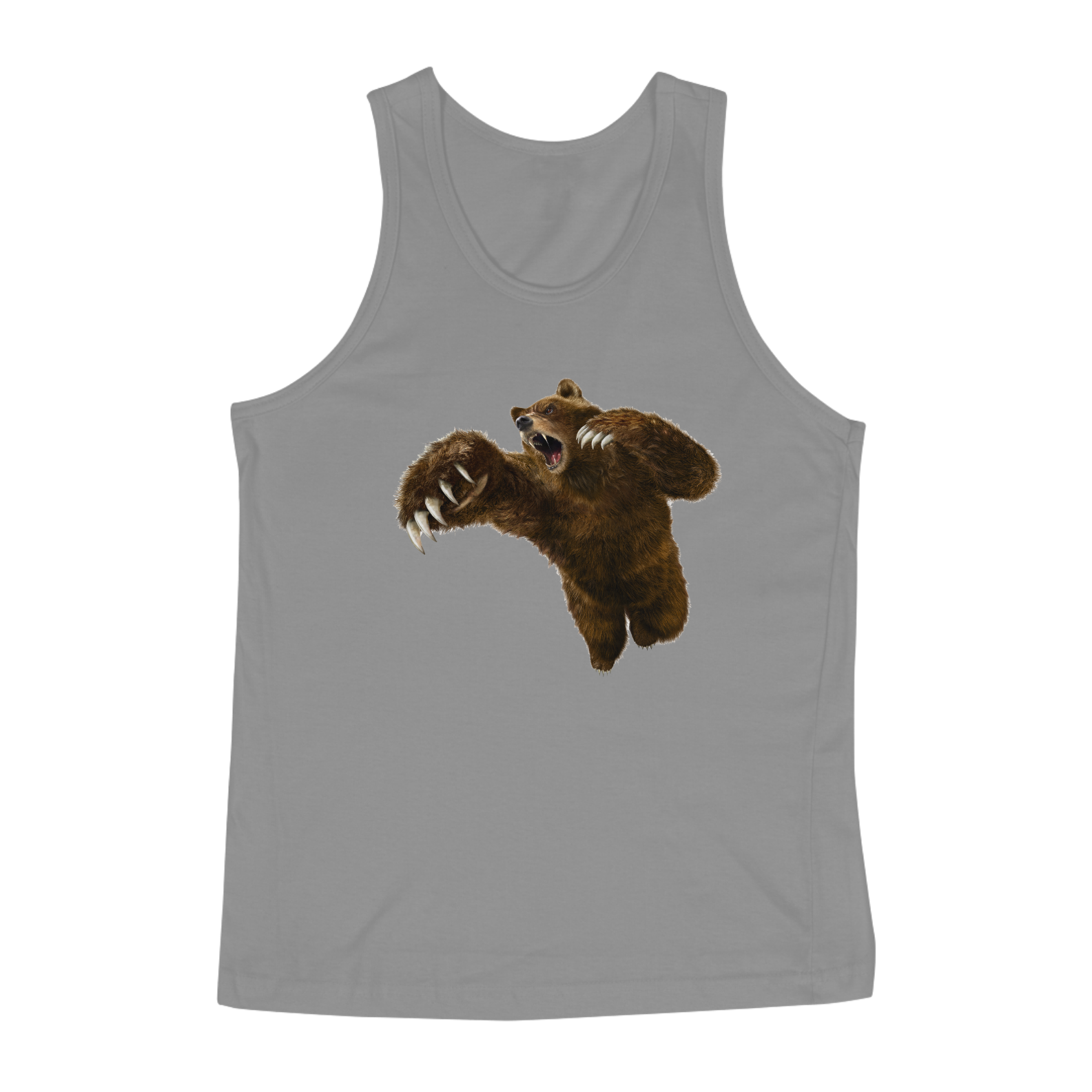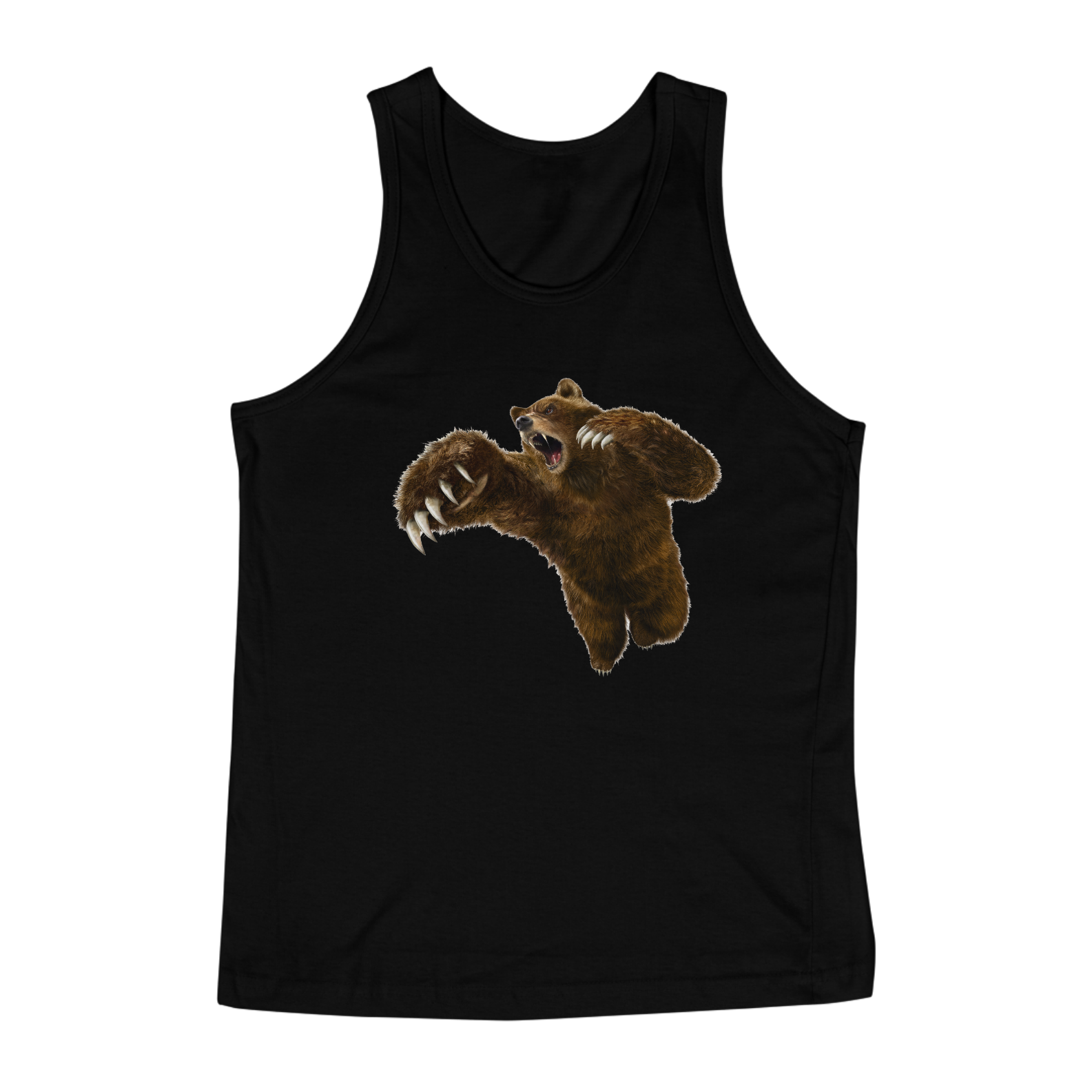 A imagem do "Fierce Brown Bear" é feita com cores vibrantes e detalhes nítidos, refletindo a qualidade da estampa e a atenção aos detalhes em sua confecção.