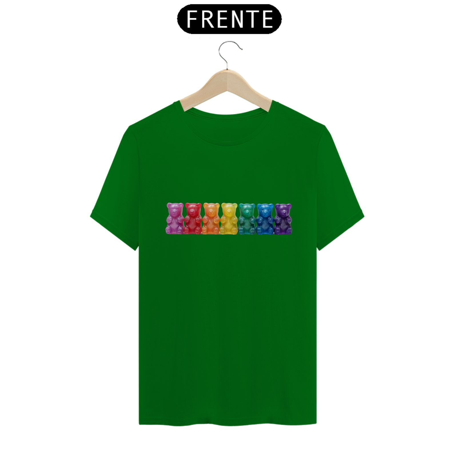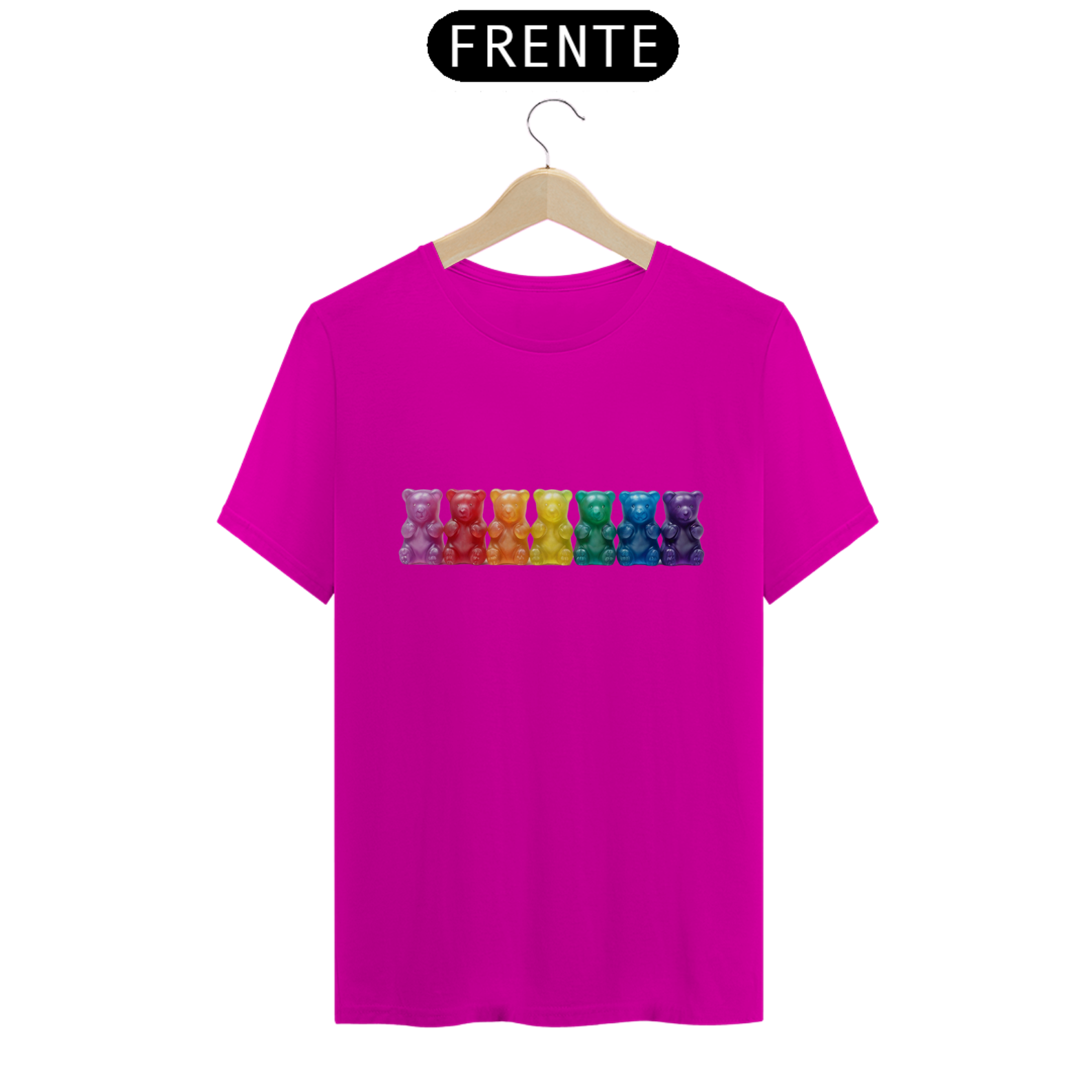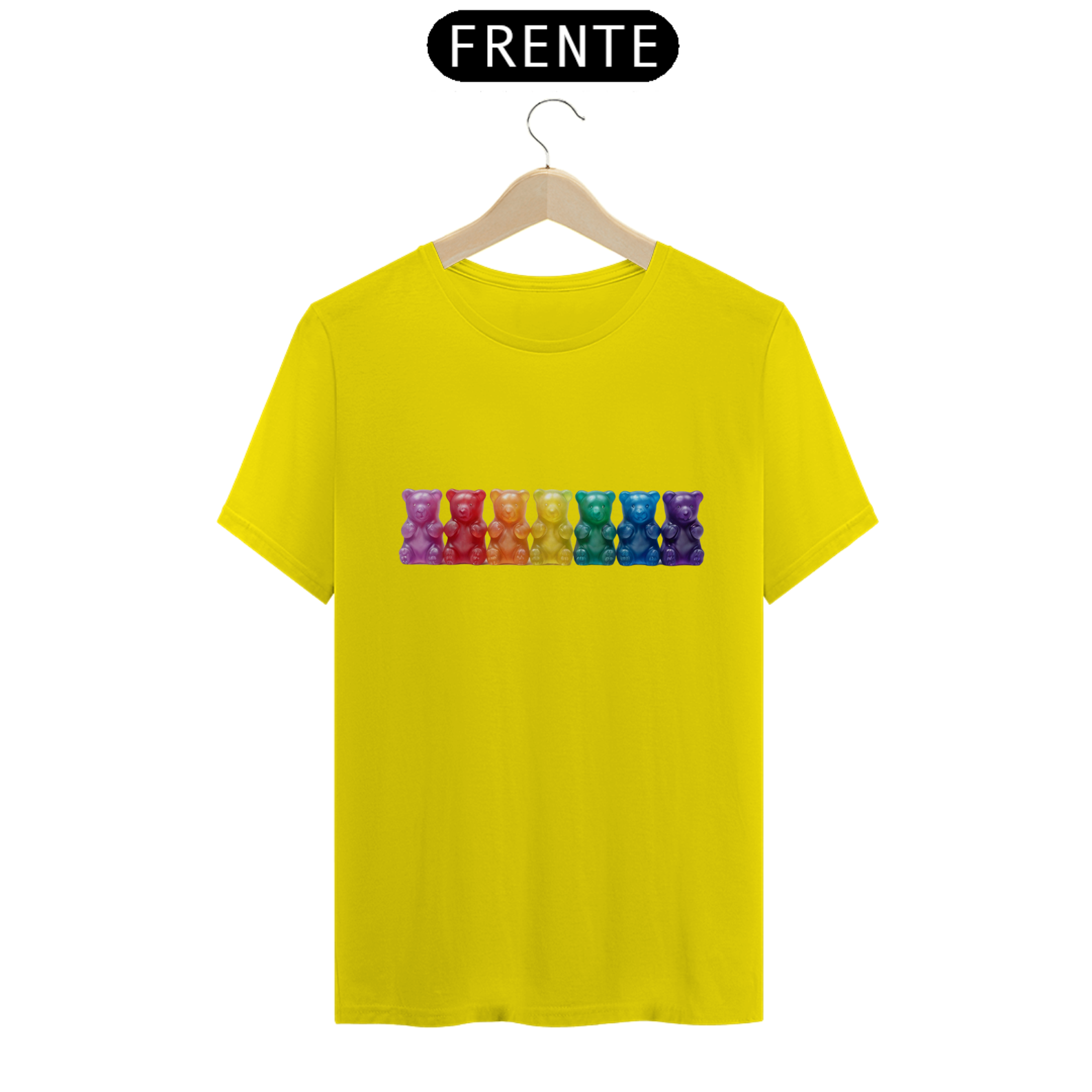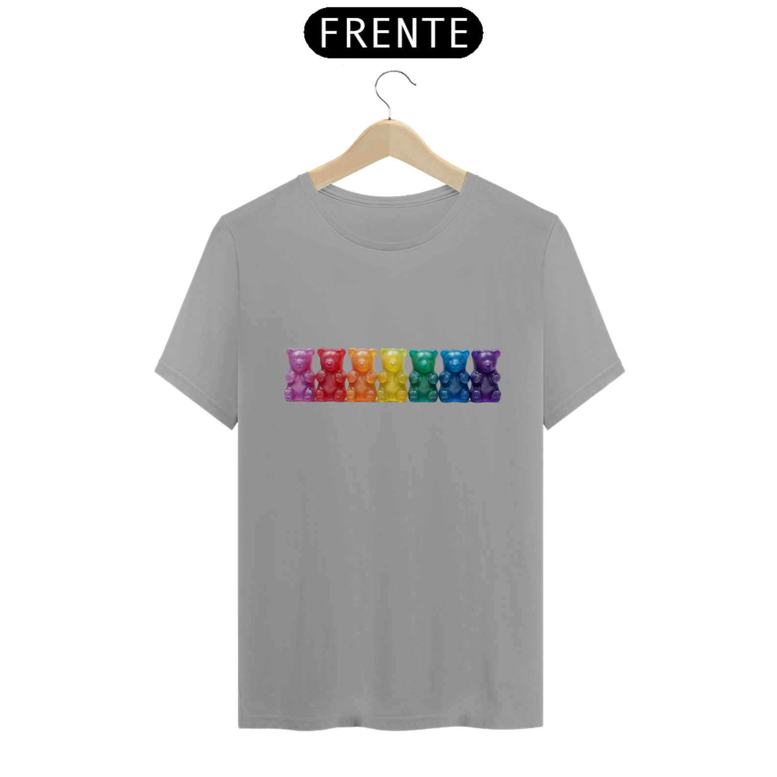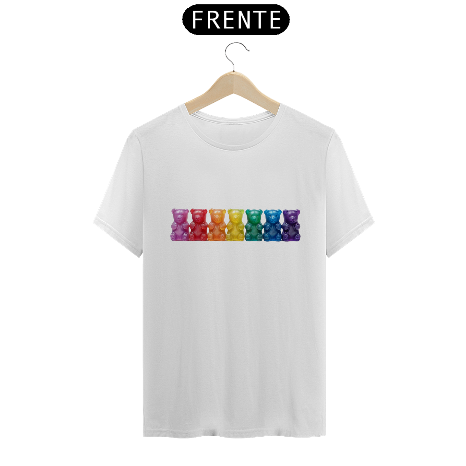 Esta estampa encantadora apresenta sete adoráveis ursinhos de goma, cada um vibrante em uma das cores do arco-íris, simbolizando a diversidade e o orgulho da comunidade Gay Bear. Os ursinhos, em tons vivos e alegres, criam uma composição cativante que celebra a individualidade e a união dentro da comunidade. Ideal para expressar seu orgulho e pertencimento, esta camiseta é uma declaração visual de diversidade e inclusão. Seja para eventos da comunidade, paradas, ou apenas para espalhar alegria no dia a dia, essa estampa colorida e cheia de vida é uma maneira marcante de mostrar seu apoio à comunidade Gay Bear.