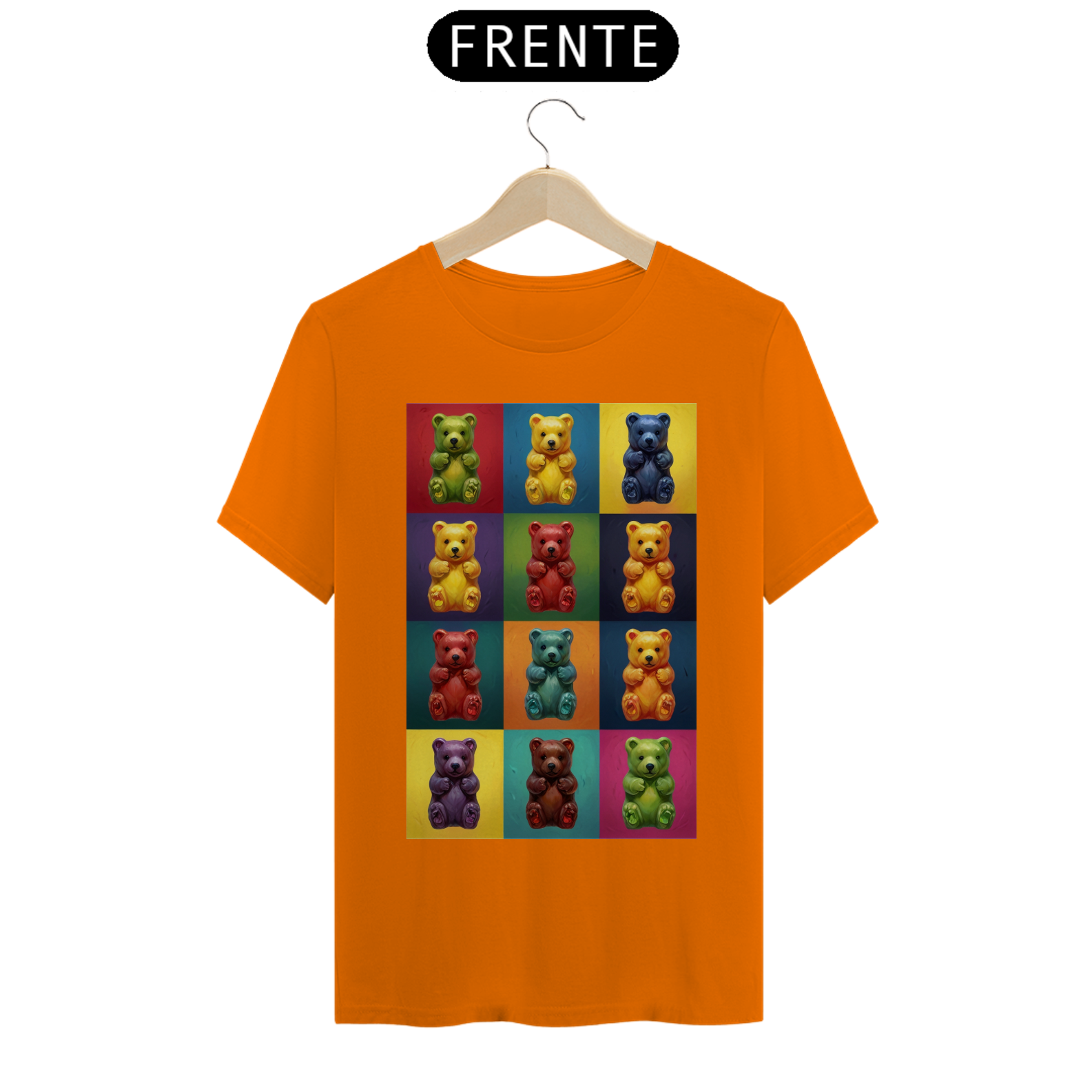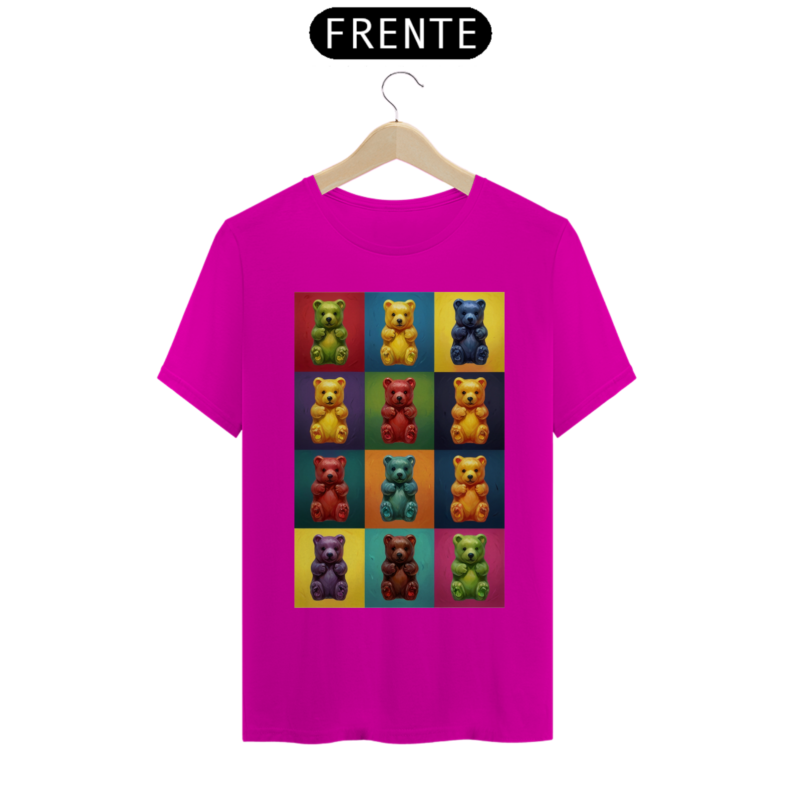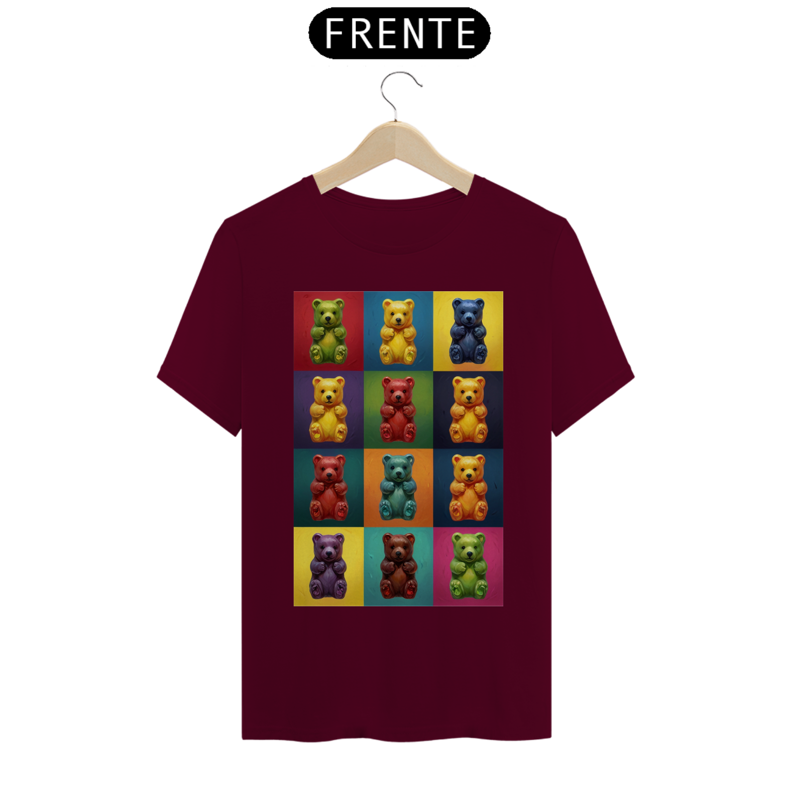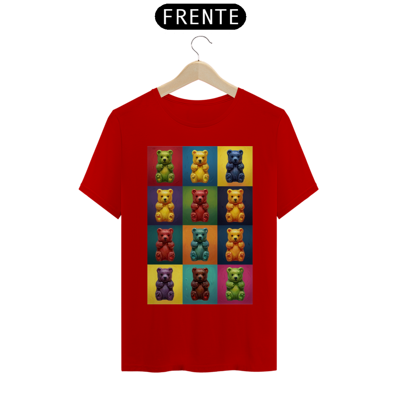 Desperte sua criatividade com esta camiseta única que combina a famosa estética de Andy Warhol com a comunidade vibrante Gay Bear. Doze adoráveis ursinhos de goma, cada um em seu próprio quadrado de cores vivas, criam uma obra de arte pop moderna que celebra a diversidade e a inclusão. Esta estampa é um tributo à individualidade e à expressão pessoal, perfeita para aqueles que desejam exibir orgulhosamente seu estilo e pertencimento à comunidade LGBTQ+.