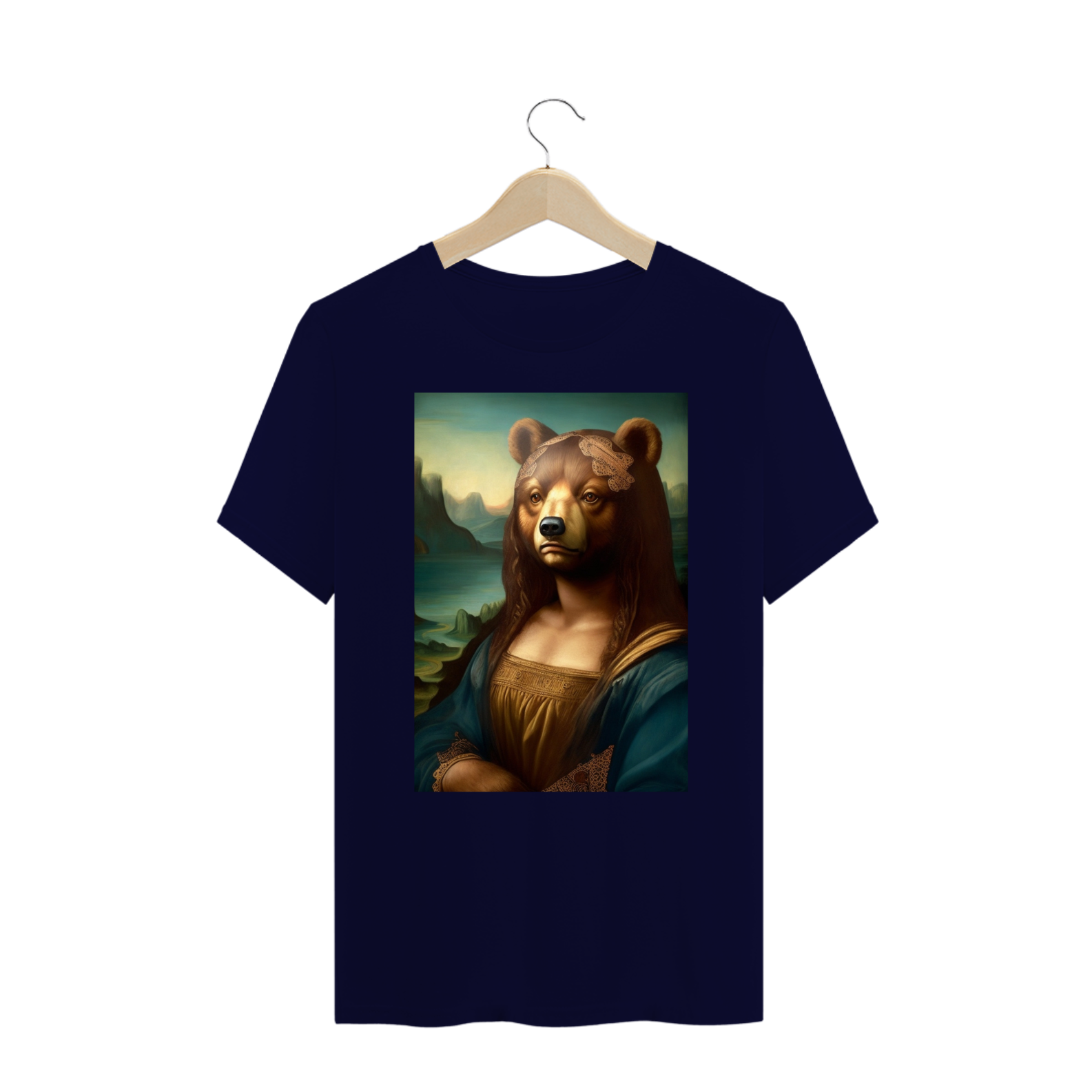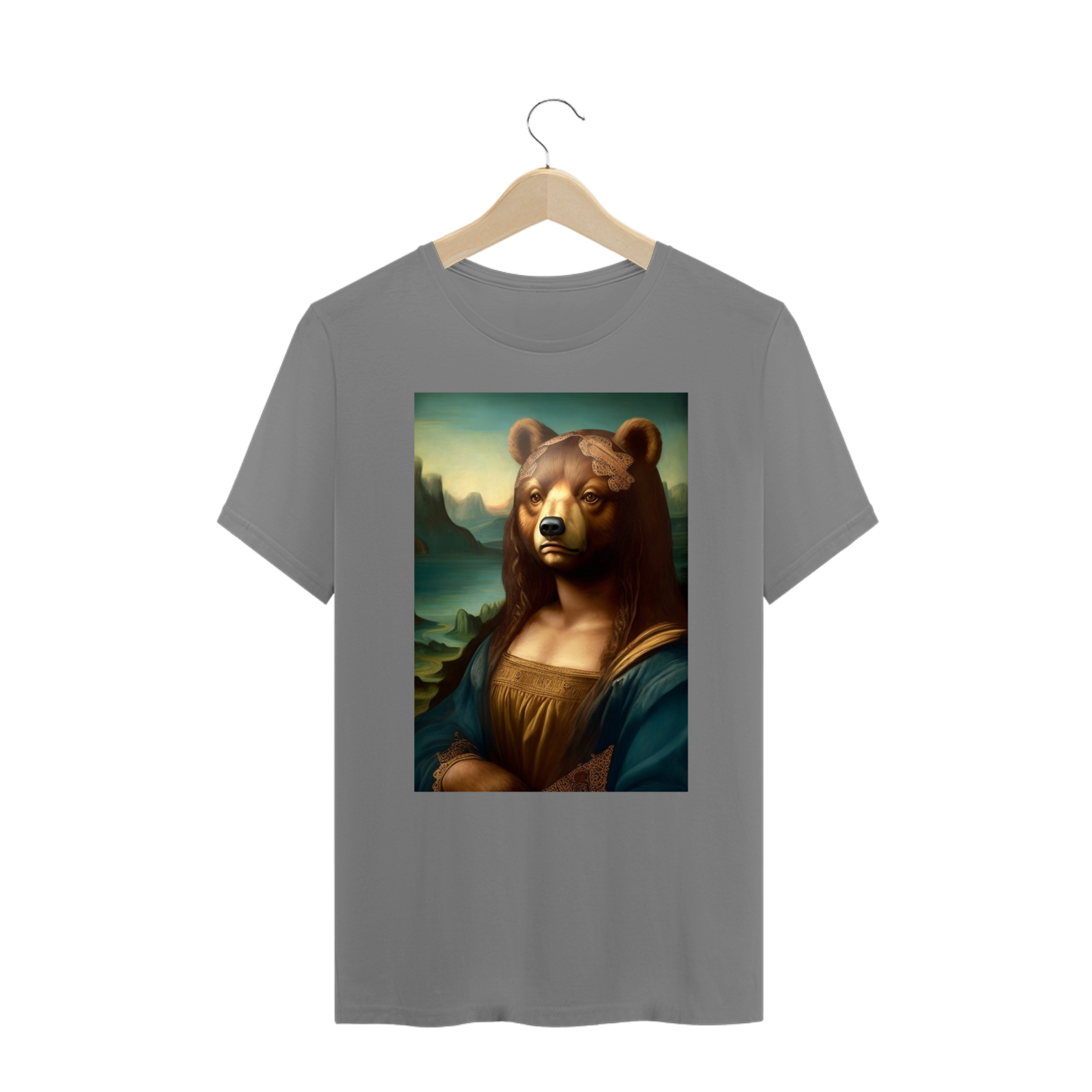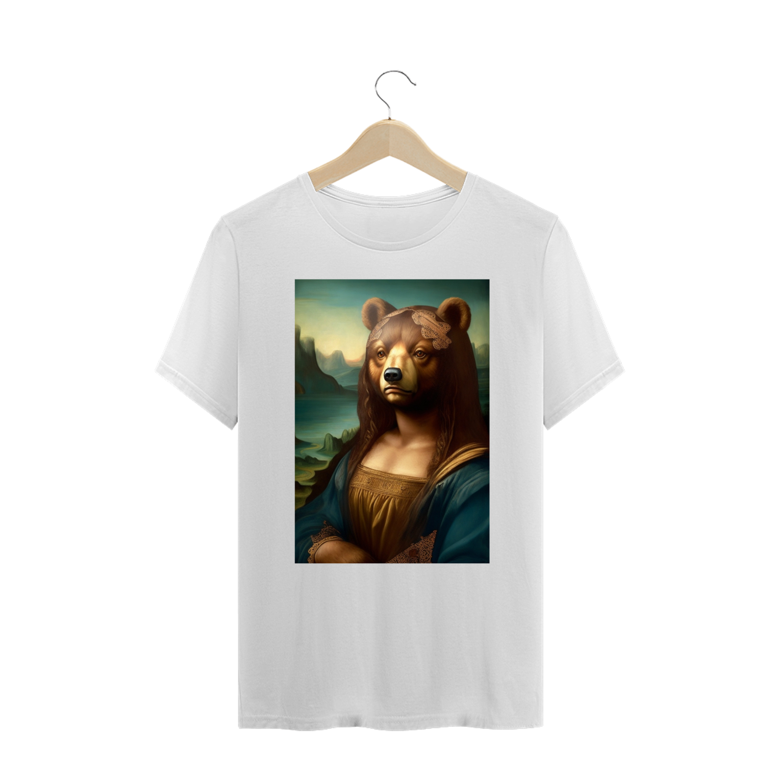 Apresentamos com entusiasmo nossa camiseta exclusiva que combina a icônica obra de arte da Mona Lisa com o espírito vibrante da comunidade Gaybear. A estampa mostra a Mona Lisa, agora transformada em um urso, voltada especificamente para a comunidade gay bear.