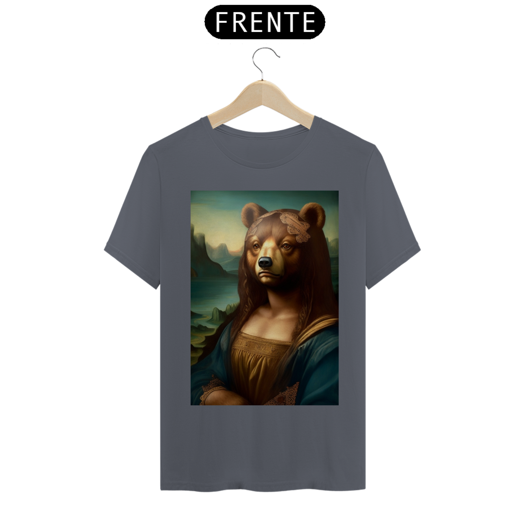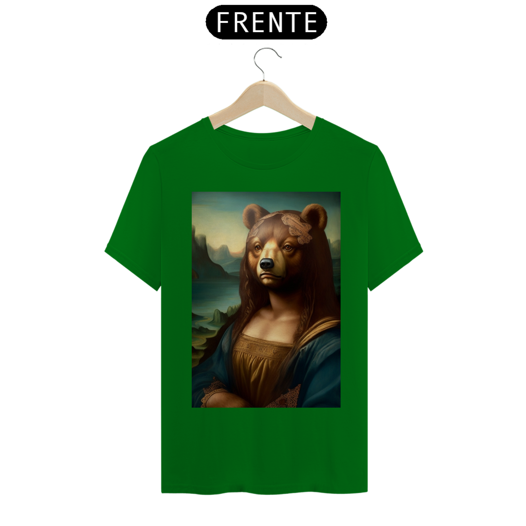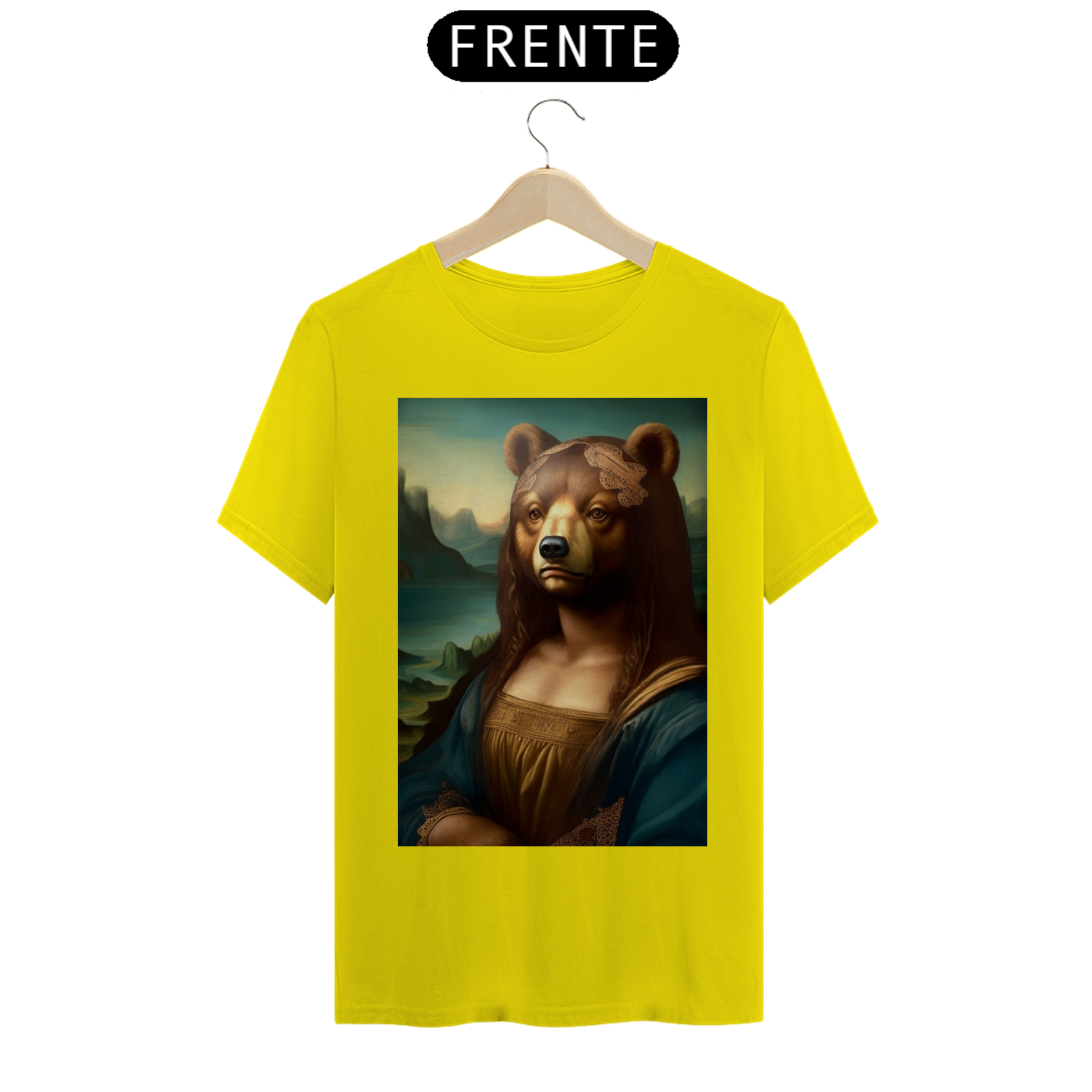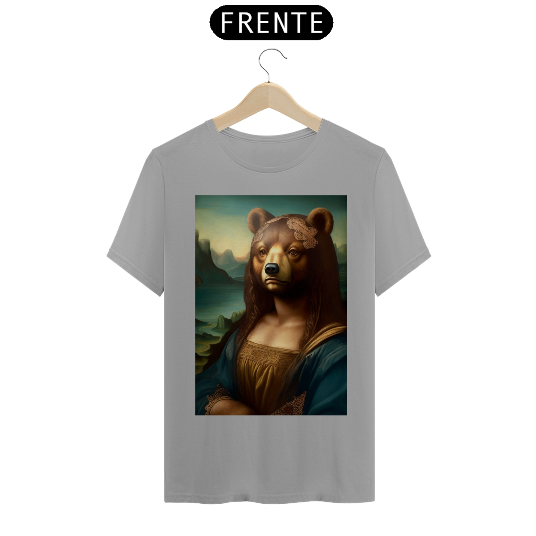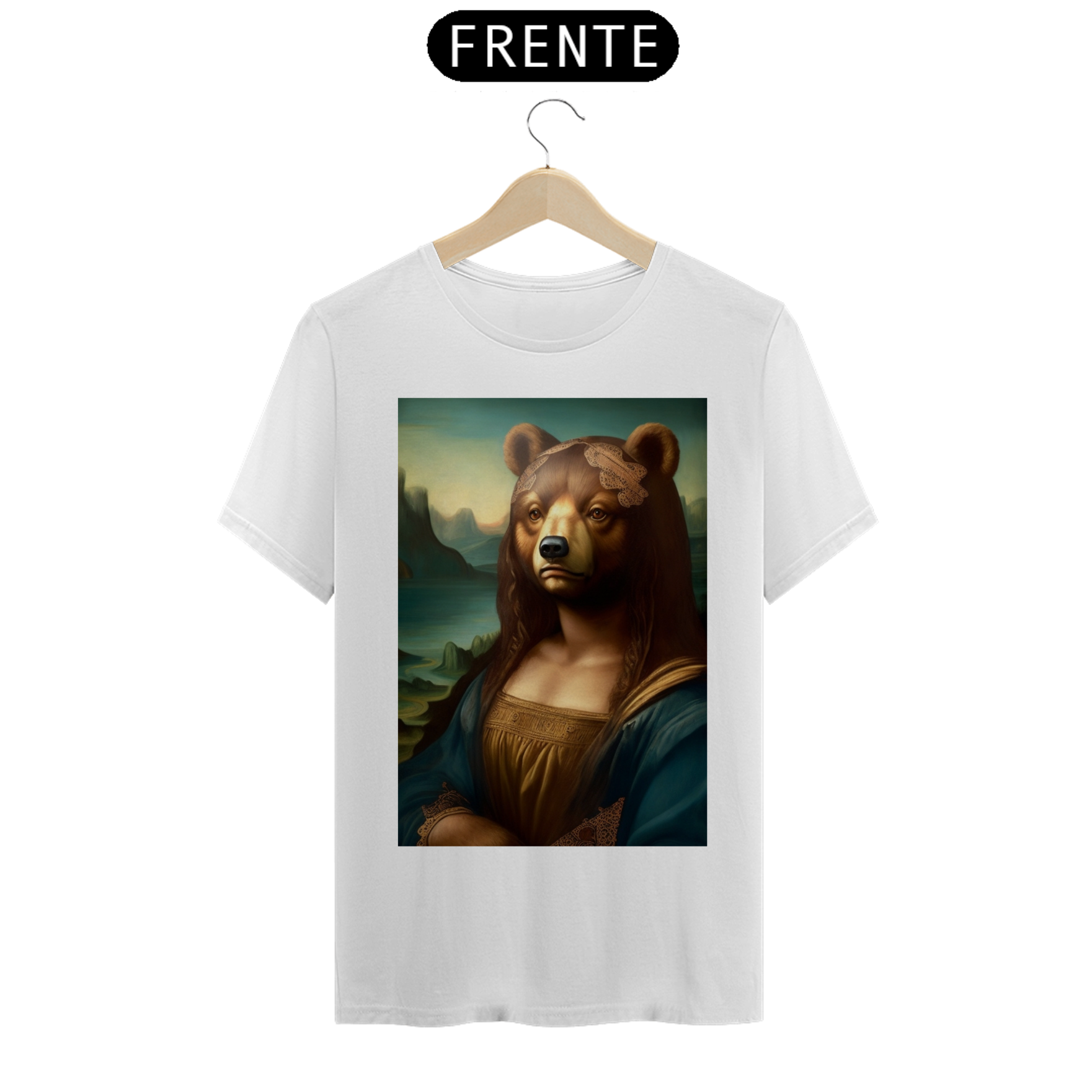 Apresentamos com entusiasmo nossa camiseta exclusiva que combina a icônica obra de arte da Mona Lisa com o espírito vibrante da comunidade Gaybear. A estampa mostra a Mona Lisa, agora transformada em um urso, voltada especificamente para a comunidade gay bear.