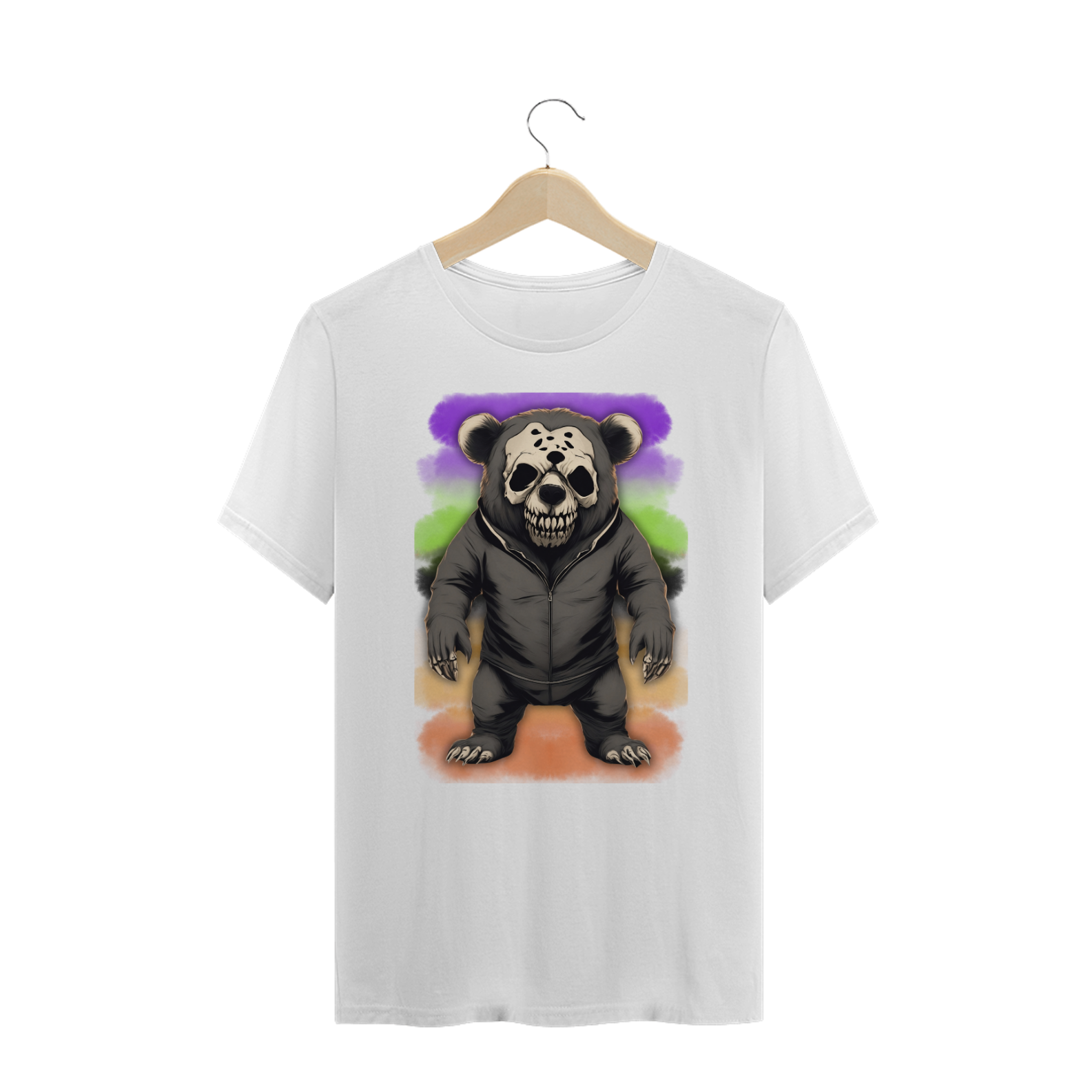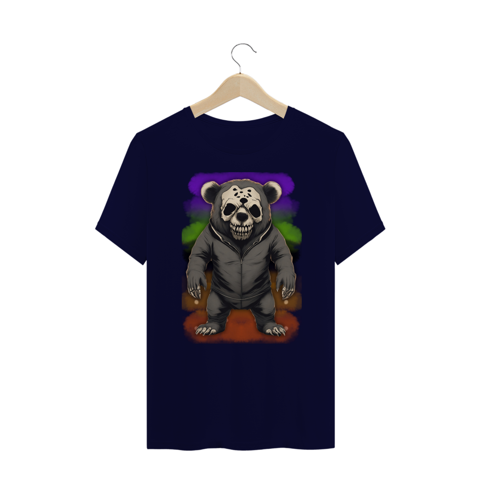 A estampa "Halloween Skull Bear" é perfeita para o Halloween, trazendo uma mistura de terror e estilo urbano com um urso macabro vestindo uma jaqueta e uma máscara de caveira. Ideal para membros da comunidade Gay Bear que desejam expressar sua individualidade de forma ousada e única durante as festas temáticas. Essa peça não passa despercebida, unindo a atmosfera assustadora do Halloween com o visual descontraído e moderno. Se você está buscando por uma camiseta que destaque seu estilo e adicione uma pitada de horror à sua celebração de Halloween, "Halloween Skull Bear" é a escolha perfeita.