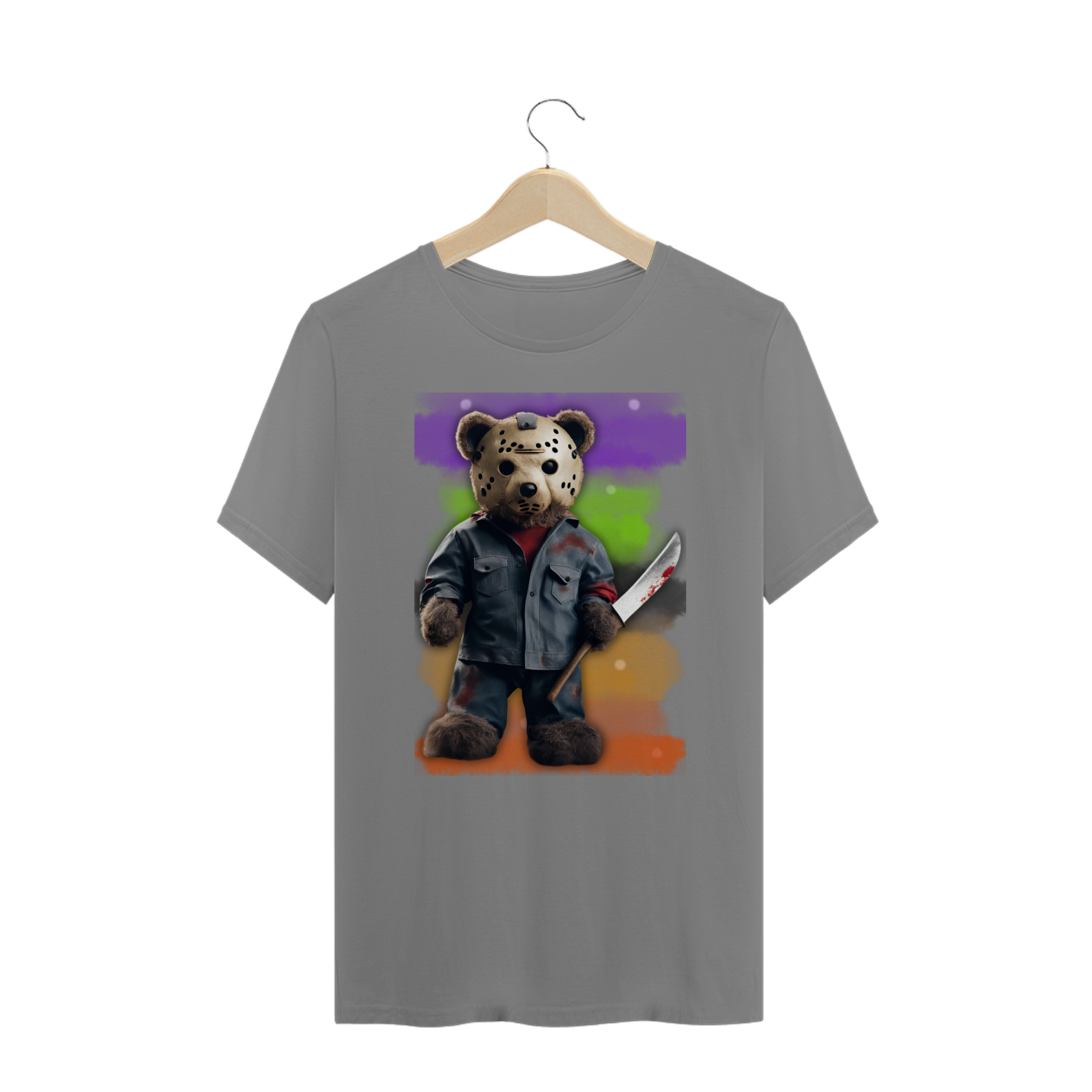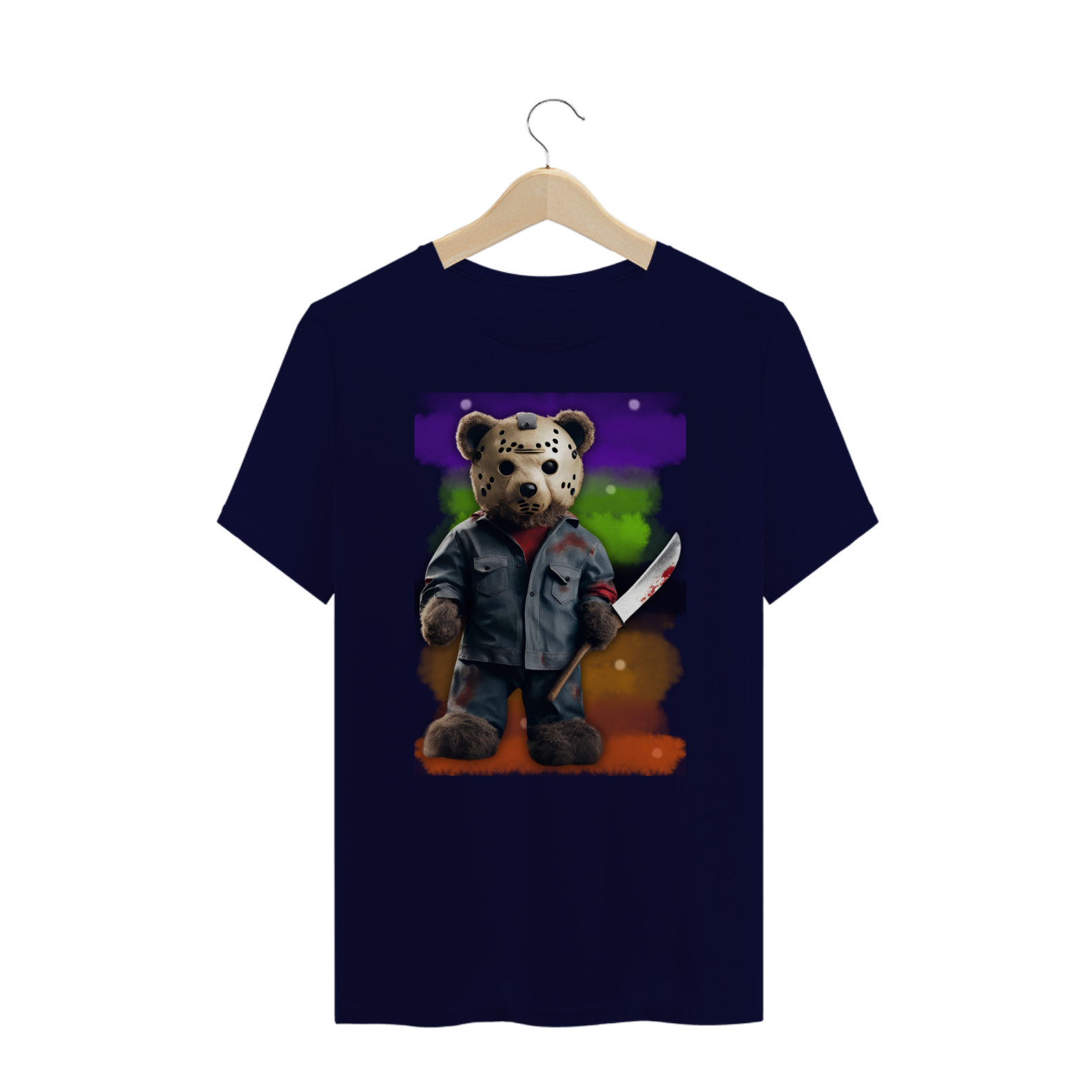 A estampa "Halloween Teddy Jason" traz uma releitura divertida e aterrorizante do clássico personagem de terror Jason Voorhees, combinando o icônico visual com a cultura Gay Bear. O ursão está vestido com uma roupa ensanguentada e segurando uma faca, trazendo uma mistura de fofura e horror que vai chamar a atenção em qualquer evento de Halloween. Ideal para quem deseja exibir seu orgulho Bear com um toque de humor sombrio, essa estampa é perfeita para a temporada assustadora. A combinação de um personagem icônico do horror com a estética Bear vai garantir que essa estampa seja um sucesso nas festas e eventos de Halloween!
