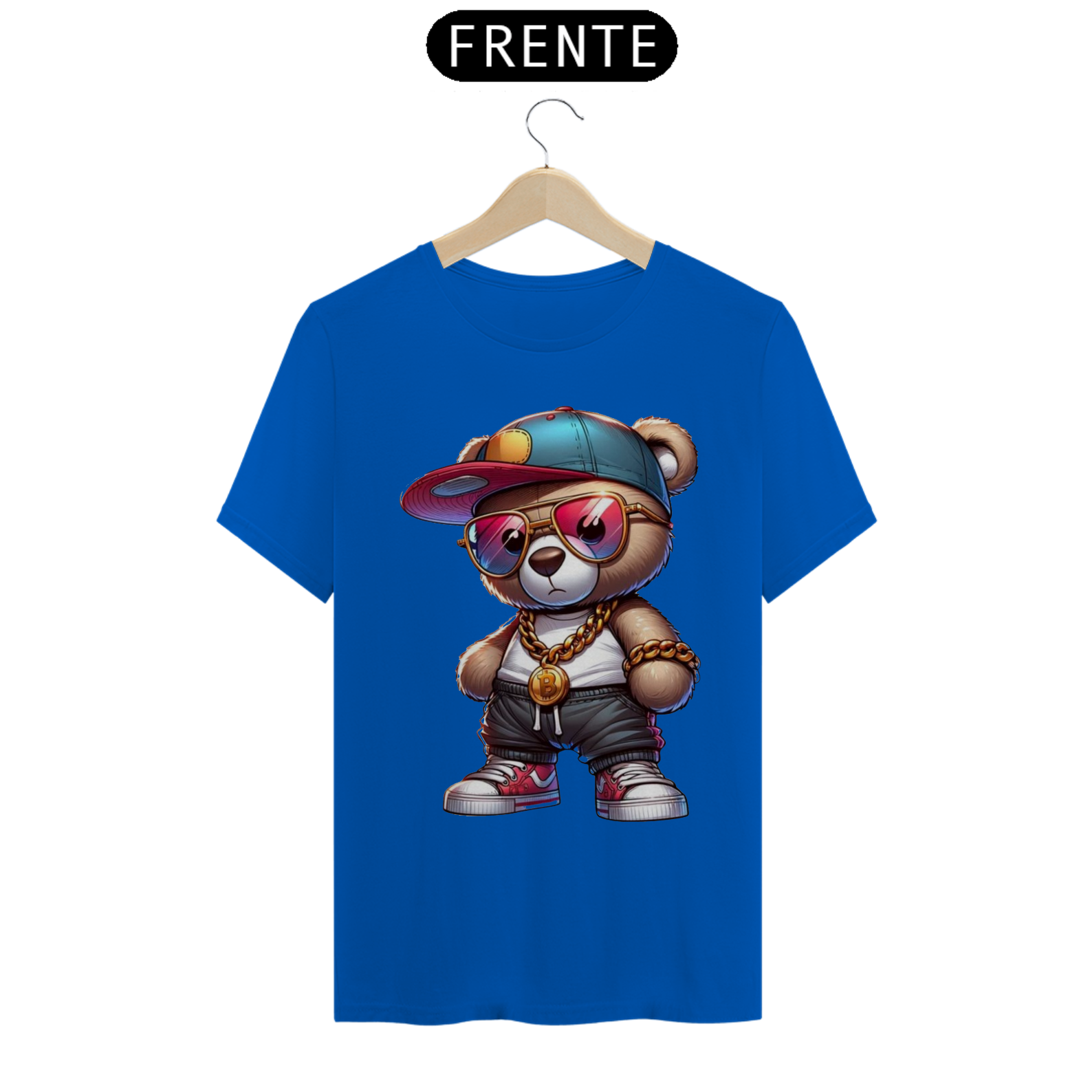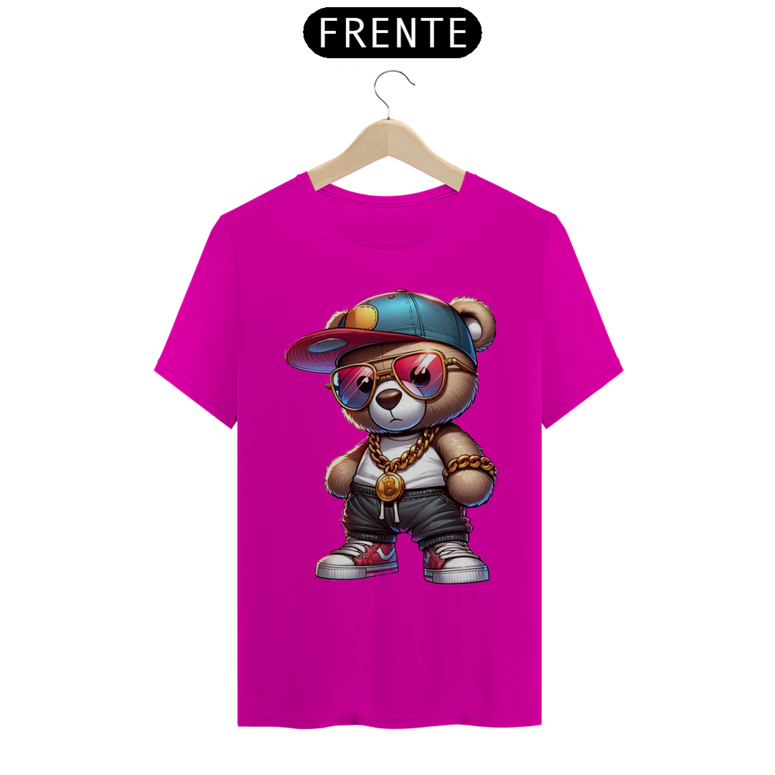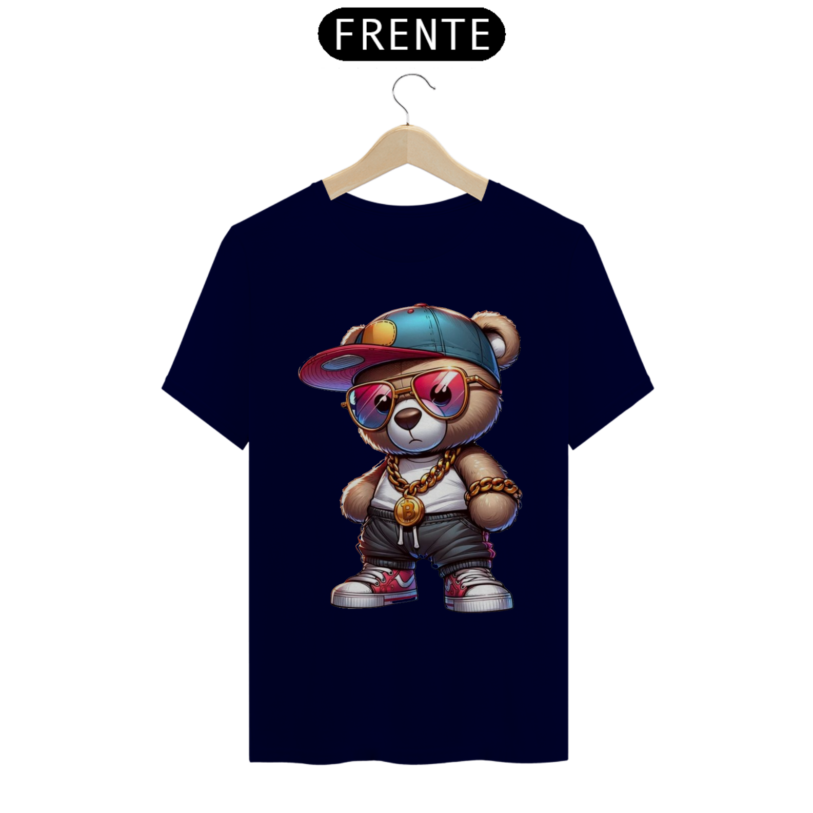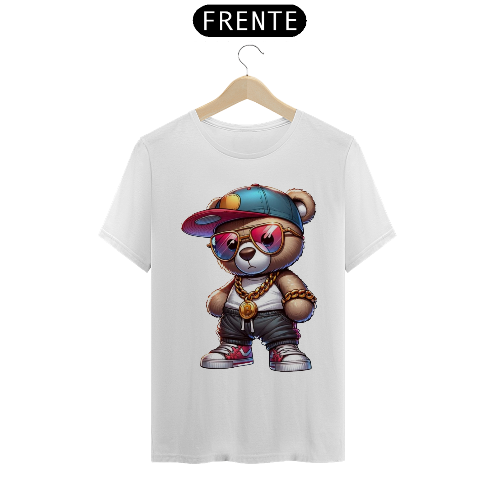 Esta estampa de camiseta apresenta um adorável ursinho incorporando todo o estilo e atitude de um verdadeiro astro do hip-hop. Vestido com roupas inspiradas na cultura urbana, como boné  e calças largas, ele transmite uma aura de confiança e autenticidade. Com sua presença marcante e uma expressão confiante, este ursinho é um símbolo de orgulho e autoexpressão para a comunidade Gay Bear. Essa estampa celebra a diversidade e a individualidade, destacando que todos têm o direito de abraçar seu próprio estilo, independentemente das normas estabelecidas.