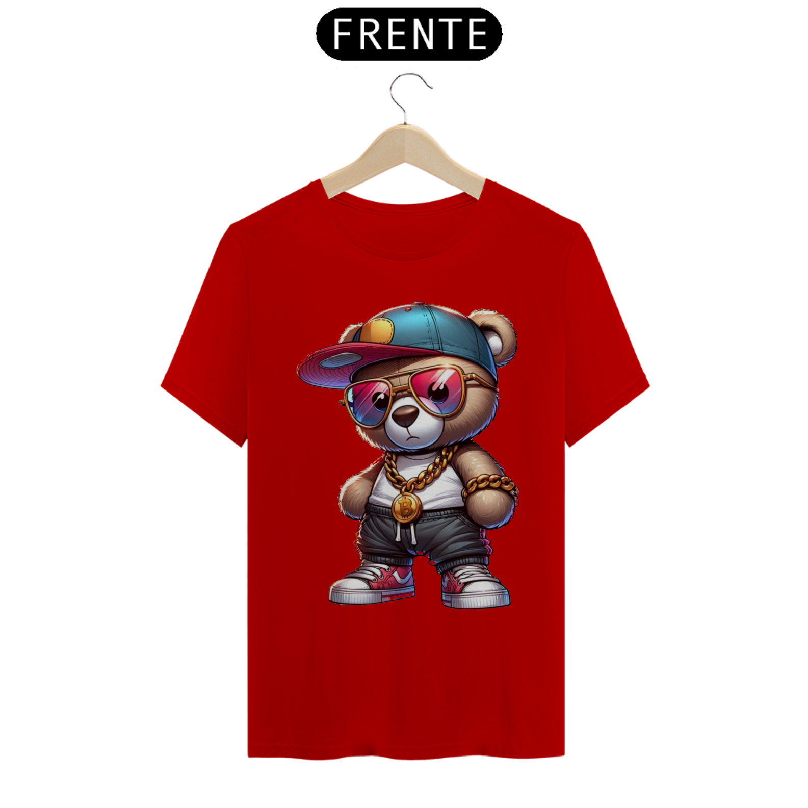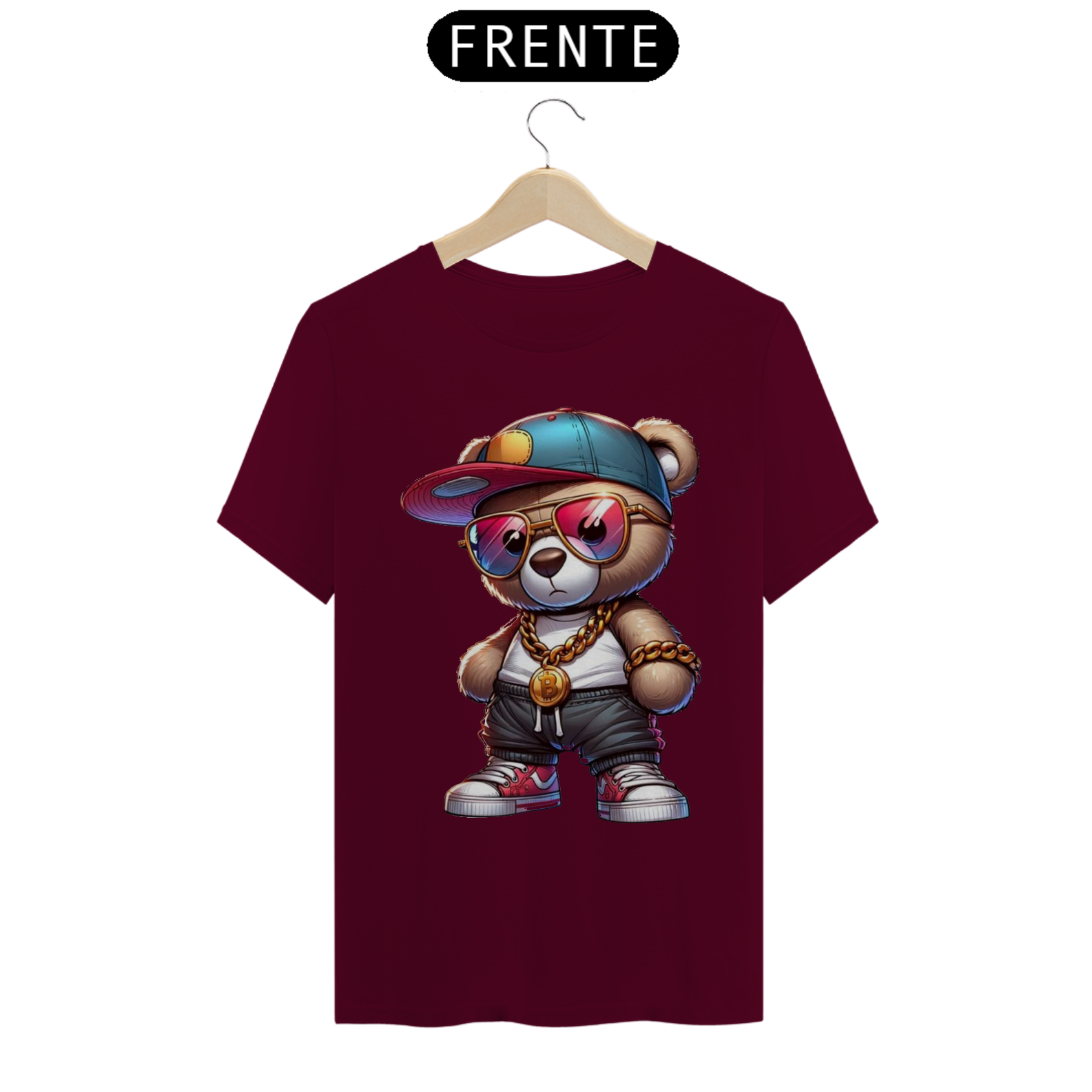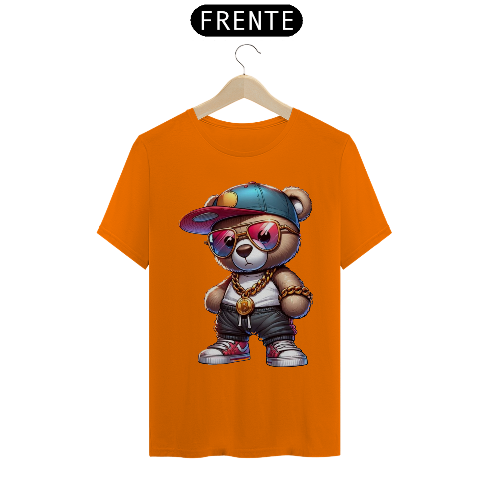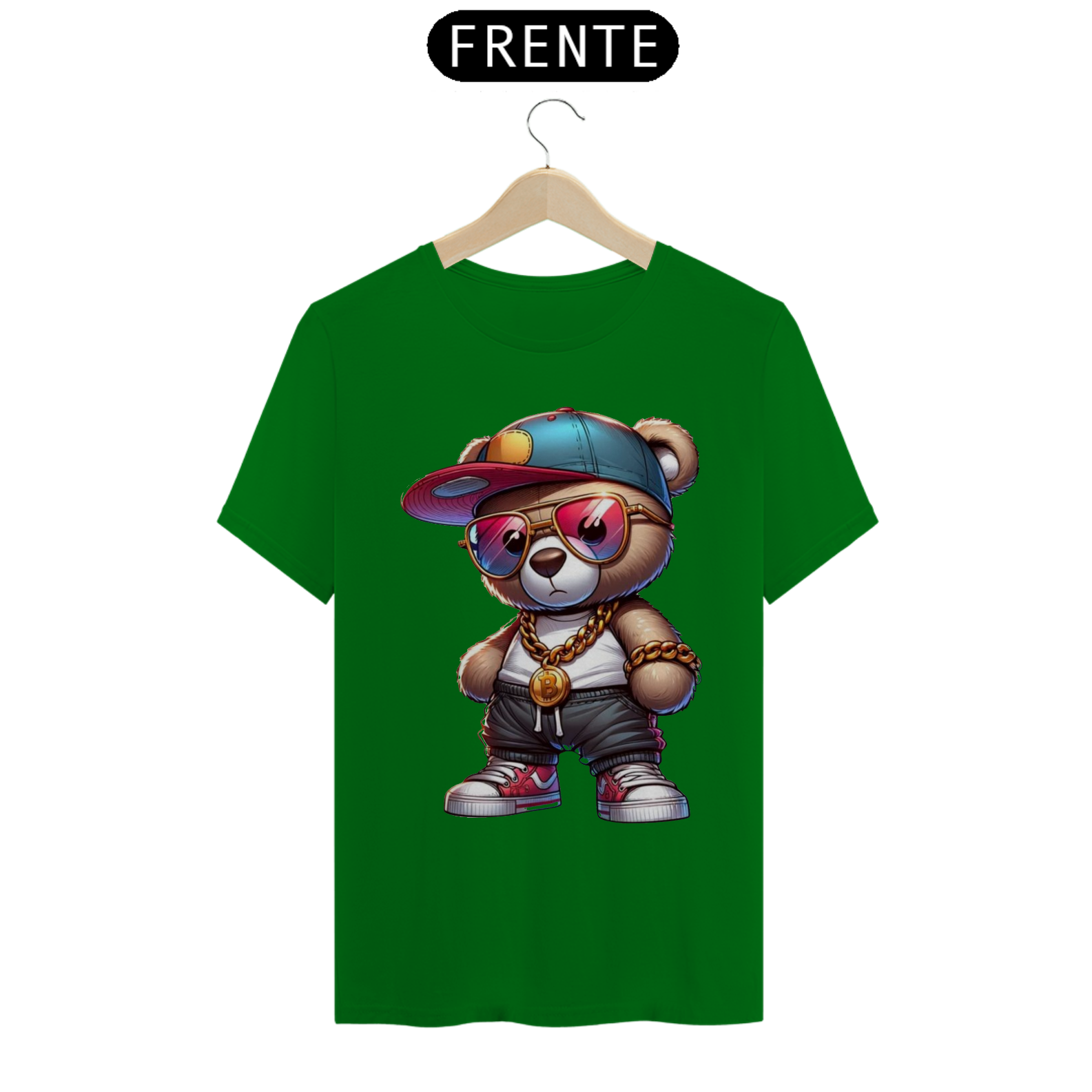 Esta estampa de camiseta apresenta um adorável ursinho incorporando todo o estilo e atitude de um verdadeiro astro do hip-hop. Vestido com roupas inspiradas na cultura urbana, como boné  e calças largas, ele transmite uma aura de confiança e autenticidade. Com sua presença marcante e uma expressão confiante, este ursinho é um símbolo de orgulho e autoexpressão para a comunidade Gay Bear. Essa estampa celebra a diversidade e a individualidade, destacando que todos têm o direito de abraçar seu próprio estilo, independentemente das normas estabelecidas.