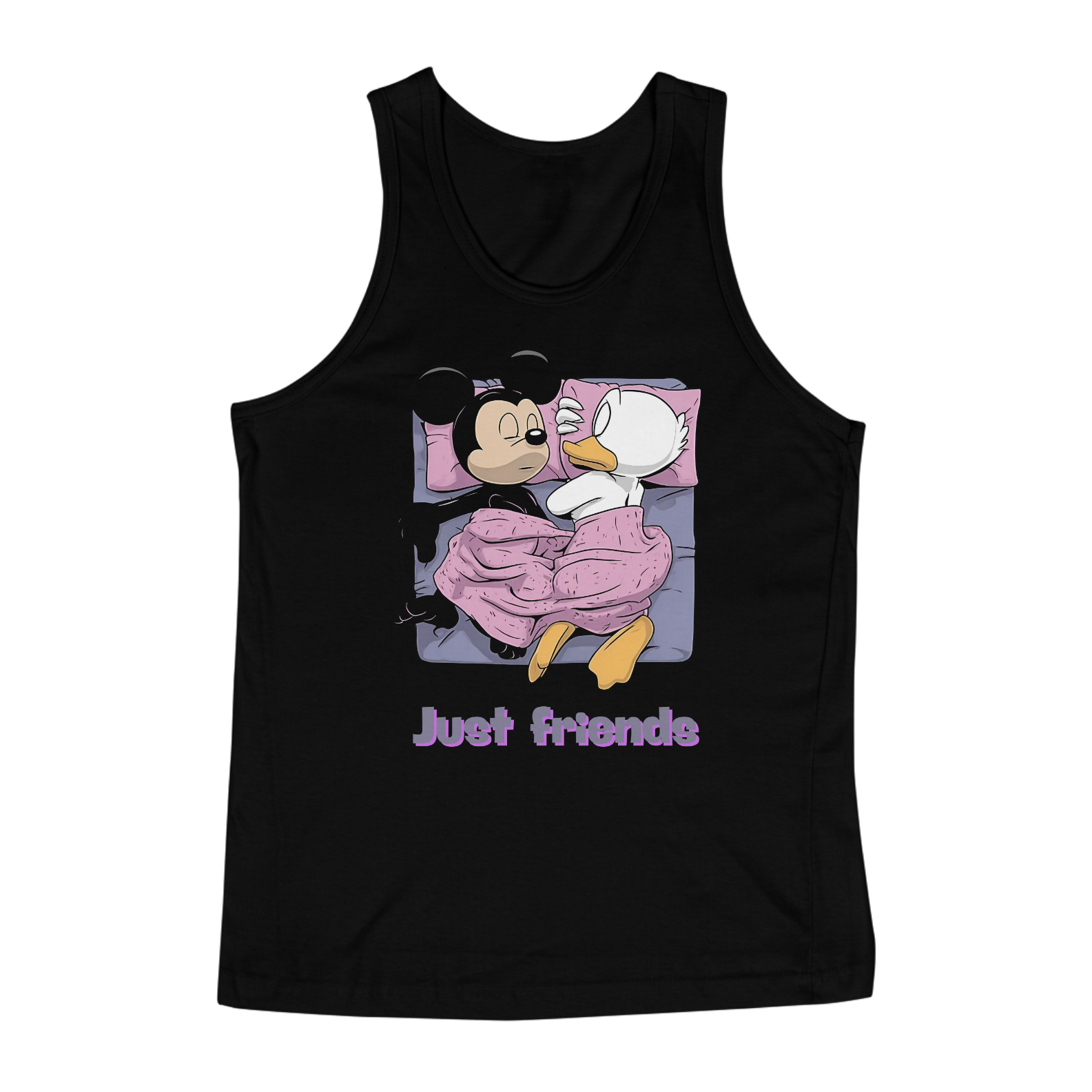 A estampa "Just Friends" traz uma abordagem divertida e provocante, perfeita para a comunidade Gay Bear. A imagem apresenta duas figuras icônicas de desenhos animados, Mickey Mouse e Pato Donald, deitados juntos em uma cama, sob um cobertor rosa, com a legenda "Just Friends" embaixo. Essa arte ousada e humorística desafia os estereótipos e celebra a amizade e a diversidade dentro da comunidade LGBTQ+, especialmente entre os Bears. É uma peça ideal para quem quer mostrar seu senso de humor e orgulho de maneira leve e descontraída. Esta estampa é perfeita para eventos sociais, encontros de comunidade, ou simplesmente para adicionar um toque de humor ao seu dia a dia. Com sua combinação de elementos clássicos da cultura pop e uma mensagem inclusiva, a camiseta "Just Friends" é uma adição irresistível ao guarda-roupa de qualquer Bear orgulhoso e bem-humorado.