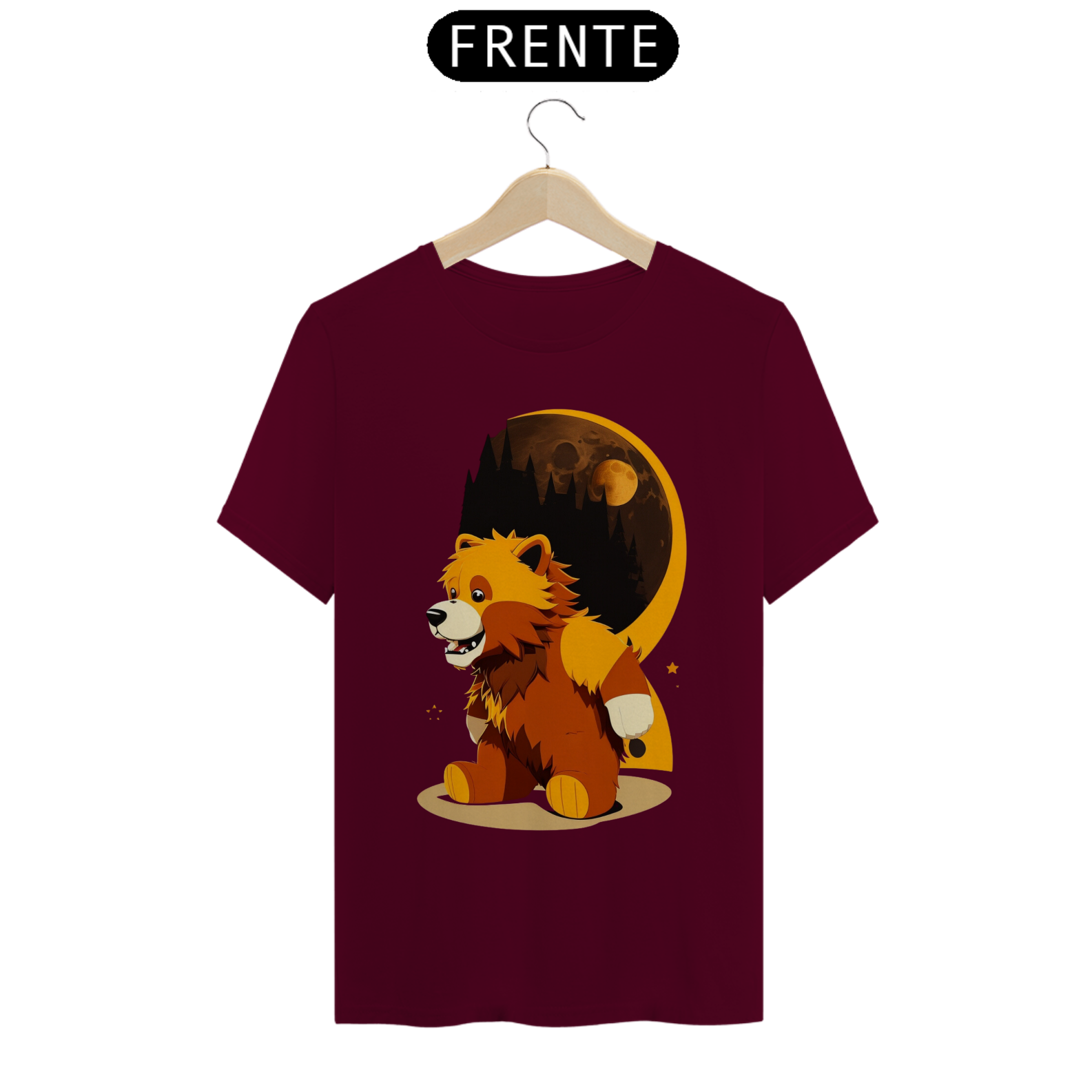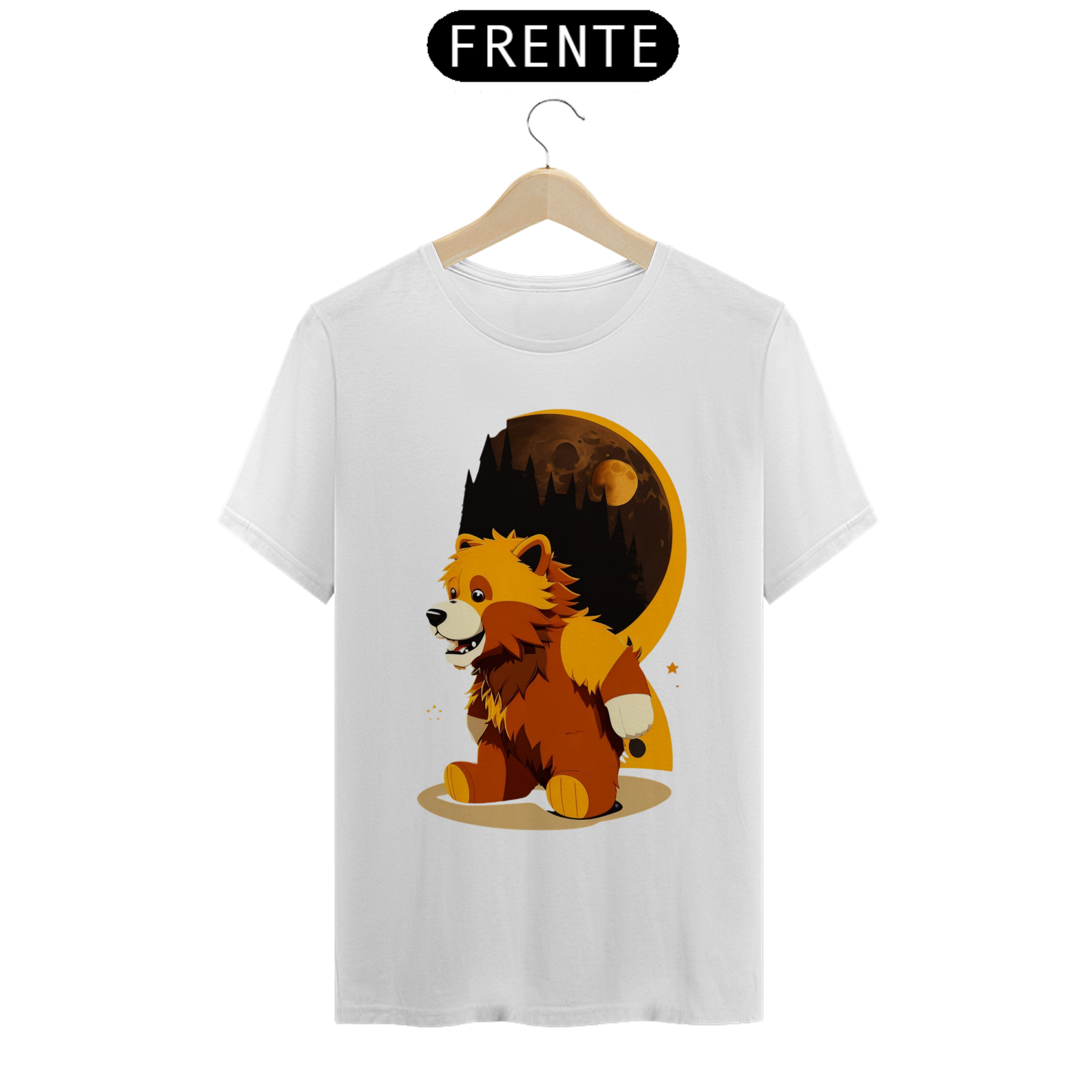 O ursinho Lobisomem possui pelagem exuberante e olhos penetrantes, transmitindo uma aura de mistério e força. Suas garras afiadas e dentes expostos demonstram seu lado selvagem, enquanto sua expressão facial revela sua essência gentil e amorosa. A estampa é repleta de detalhes, com sombras e texturas que criam uma atmosfera envolvente.