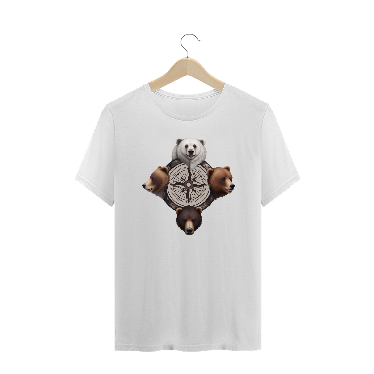 Apresentamos uma estampa magnífica e repleta de simbolismo, criada com carinho para a comunidade Gaybear. Uma mandala intrincada é o cerne desta criação, com uma rosa dos ventos imponente no centro, evocando uma sensação de orientação e exploração. Em torno da rosa dos ventos, quatro ursos majestosos representam os pontos cardeais, personificando não apenas direções geográficas, mas também os pilares da comunidade.