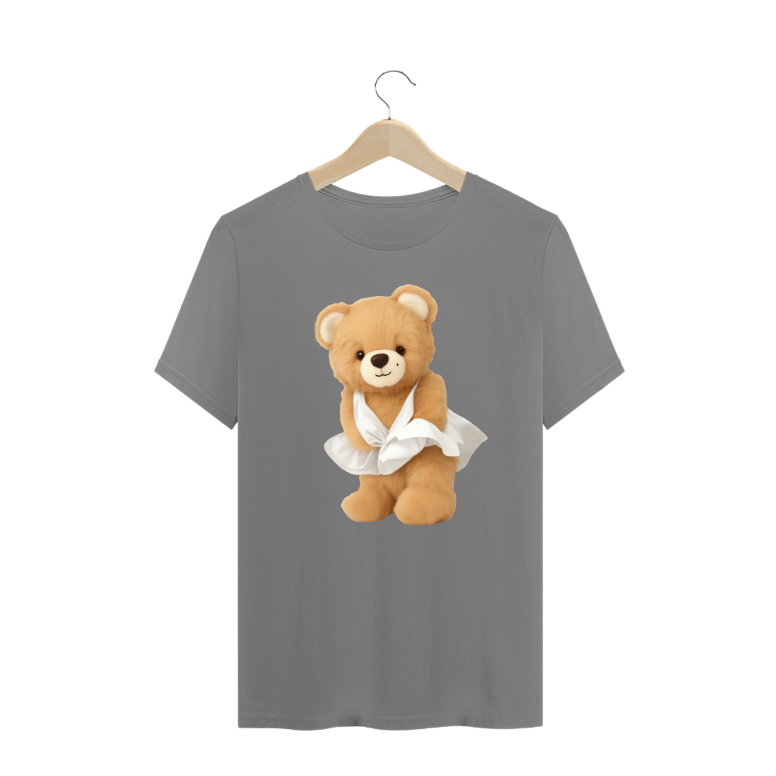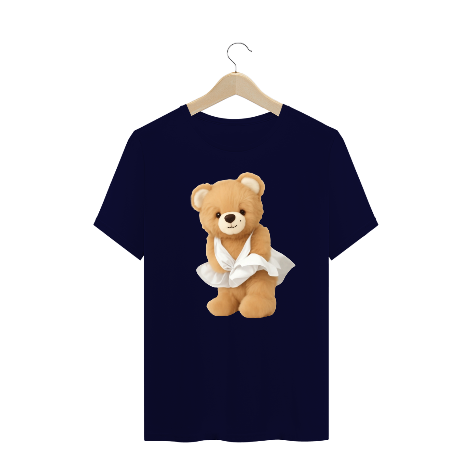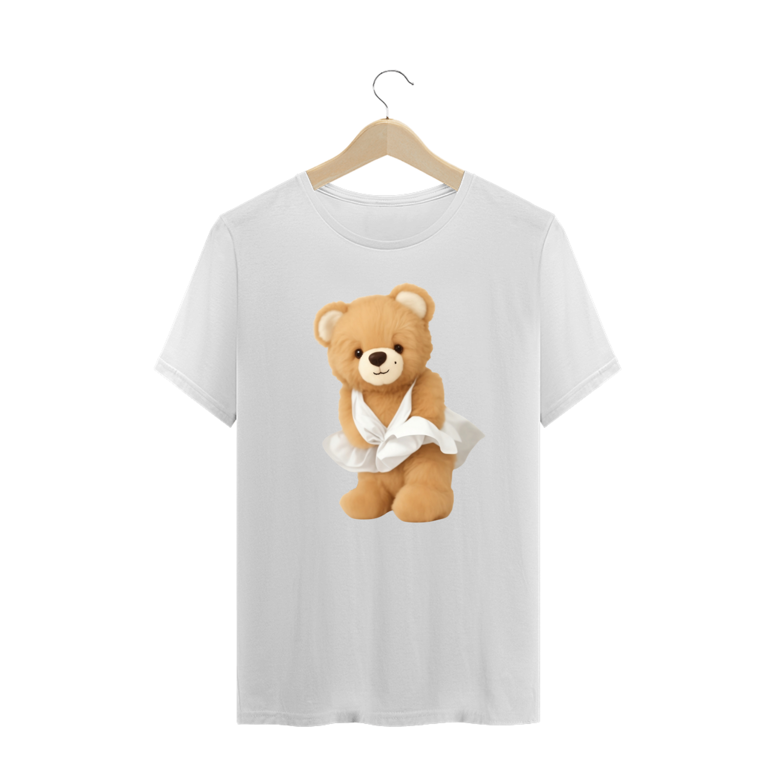 A estampa captura o espírito icônico da cena do vestido esvoaçante em "O Pecado Mora ao Lado", reimaginada com a aura extravagante da cultura Drag. A escolha do Teddy Bear como protagonista reforça o valor da autenticidade, independente de forma ou aparência.