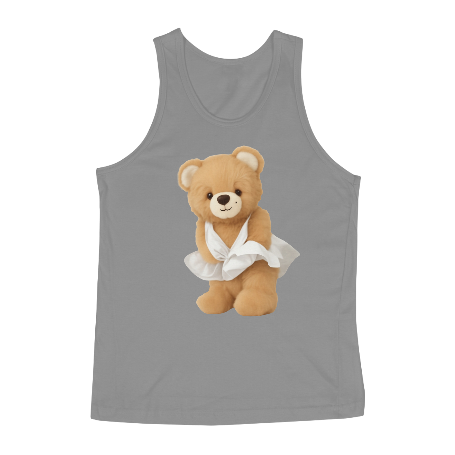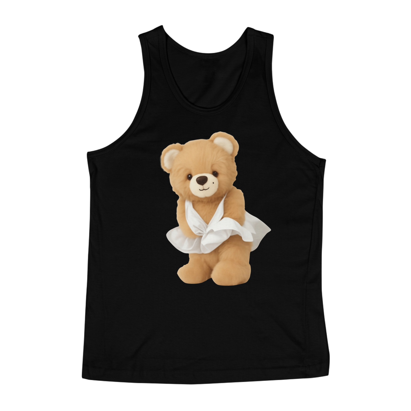 A estampa captura o espírito icônico da cena do vestido esvoaçante em "O Pecado Mora ao Lado", reimaginada com a aura extravagante da cultura Drag. A escolha do Teddy Bear como protagonista reforça o valor da autenticidade, independente de forma ou aparência.