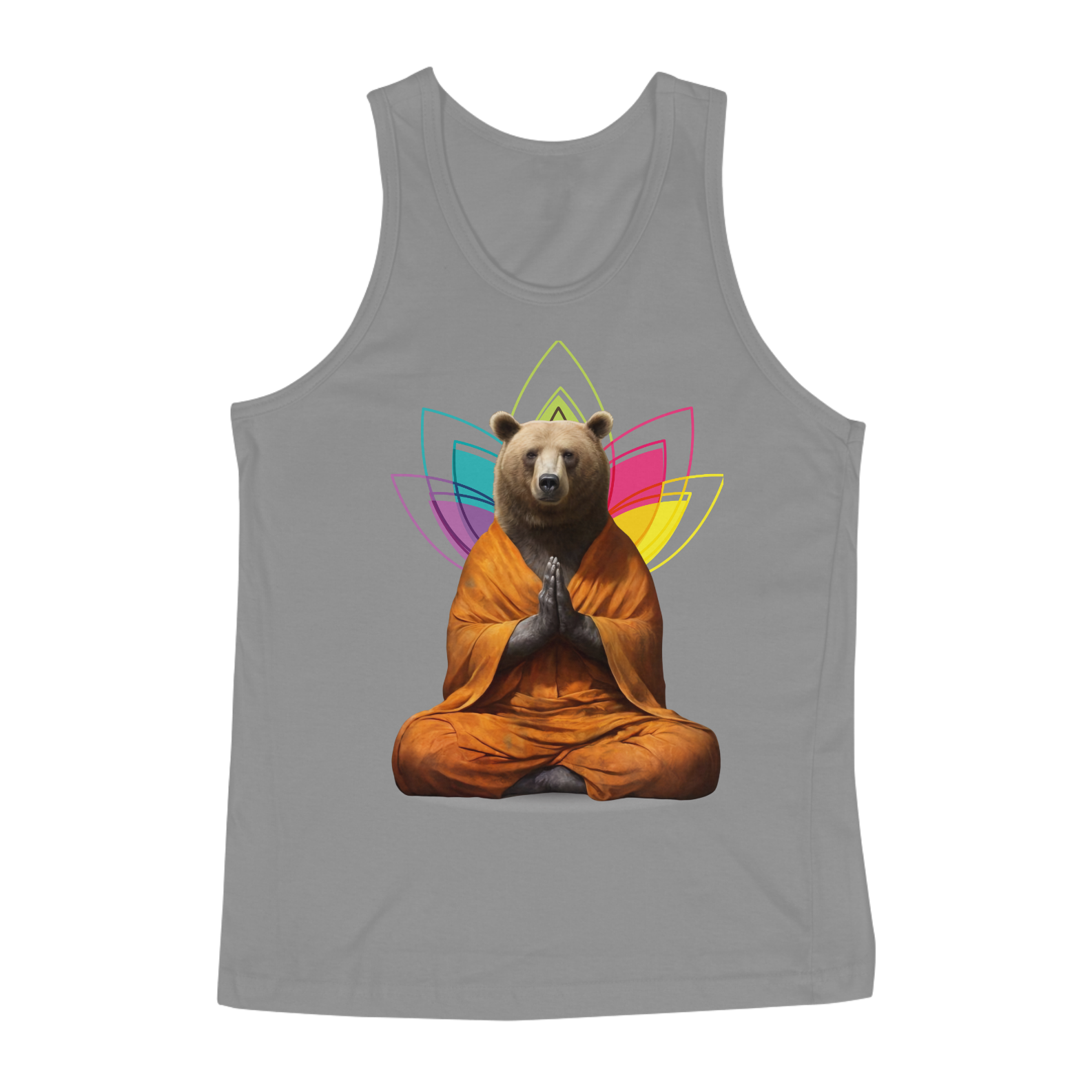 Esta estampa de camiseta é uma representação única de serenidade e orgulho dentro da comunidade Gay Bear, apresentando um urso caracterizado como um monge budista em posição de lótus, com uma flor de lótus estilizada nas cores do arco-íris ao fundo. Essa imagem é uma poderosa fusão de espiritualidade e diversidade, transmitindo uma mensagem de paz interior e aceitação de todas as formas de amor e identidade. Ao vestir essa camiseta, você não apenas exibe sua conexão com a comunidade, mas também promove uma mensagem de equilíbrio e inclusão.