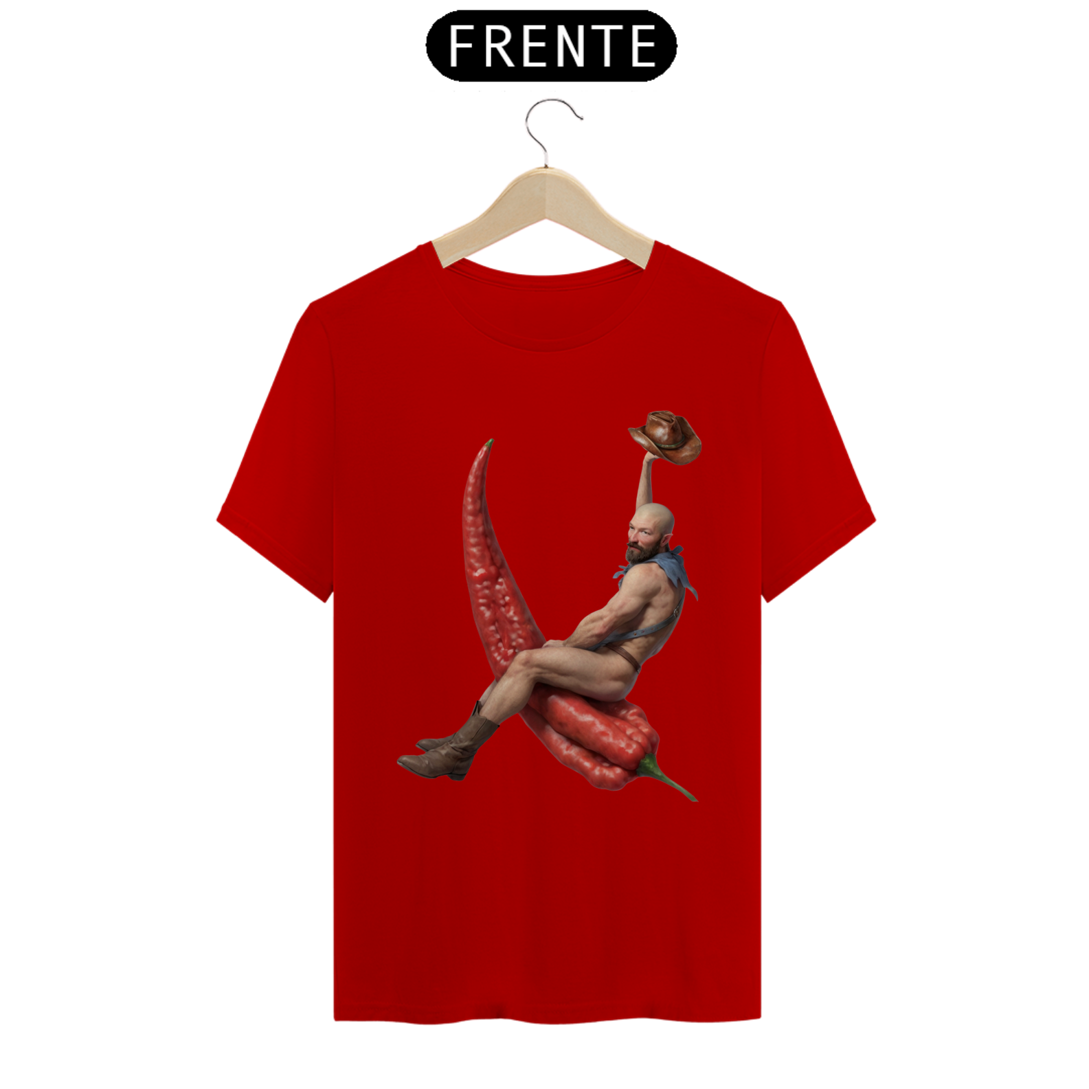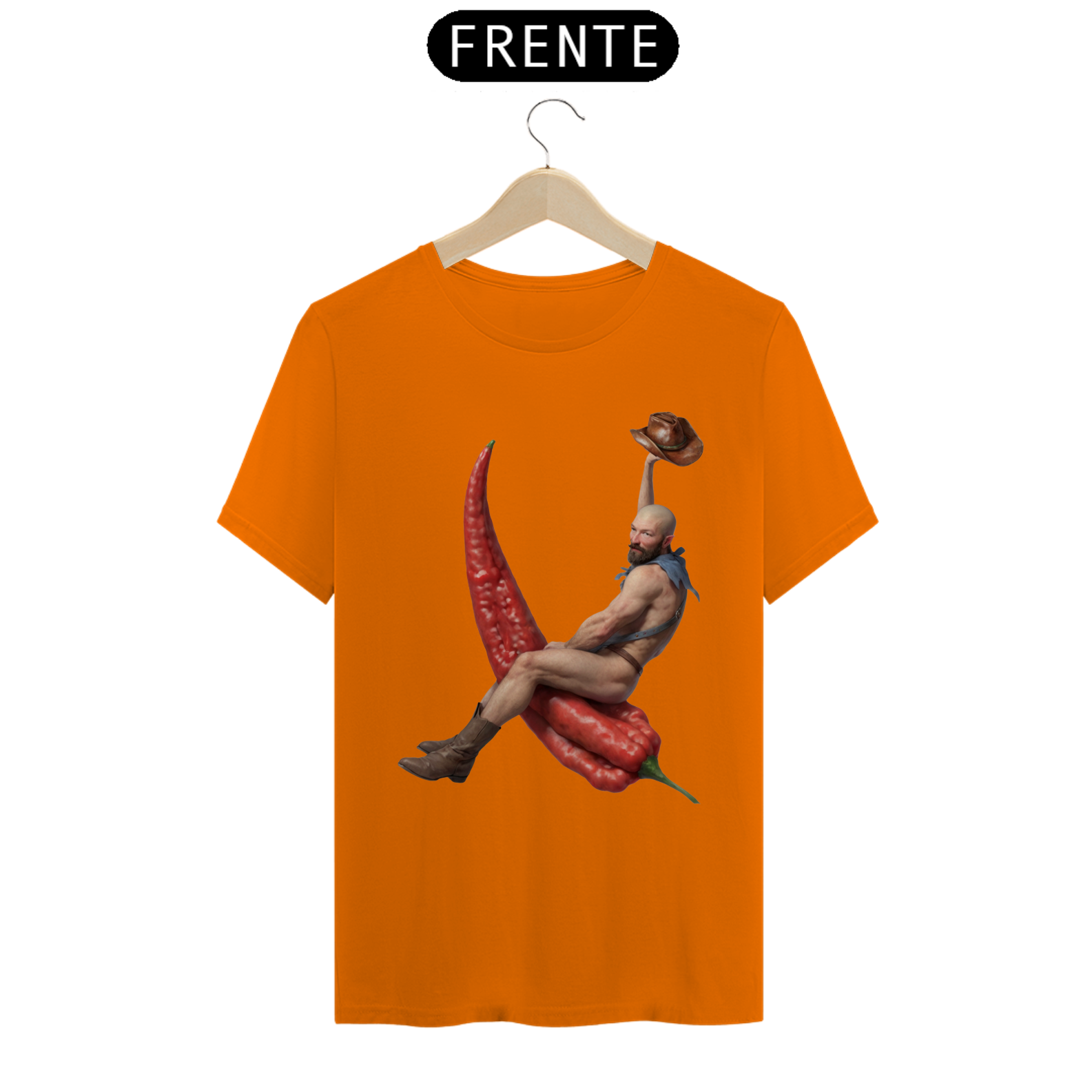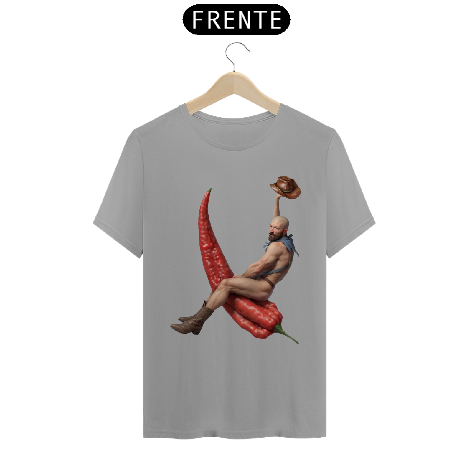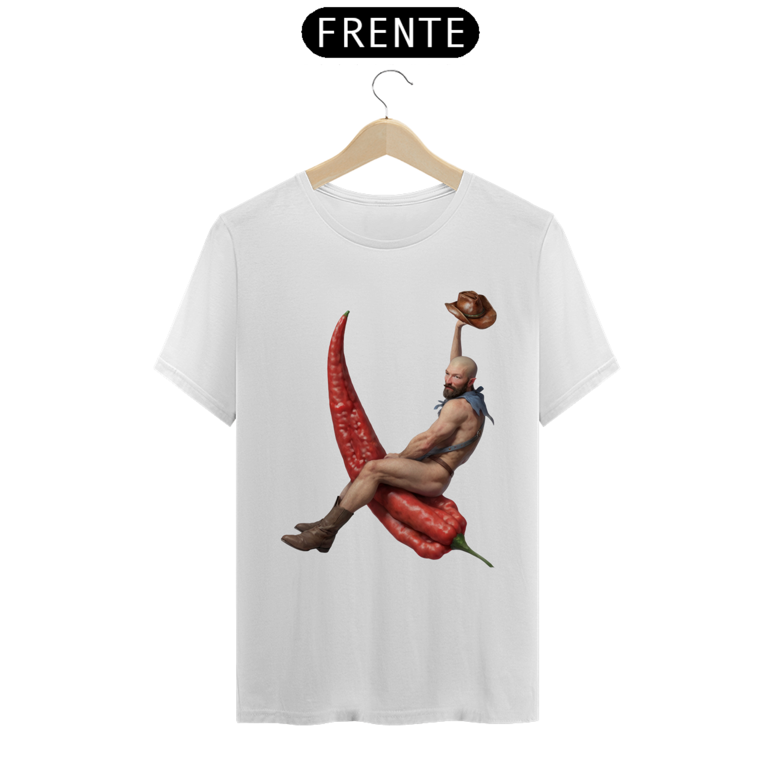 Esta estampa de camiseta apresenta um design único e ousado, mostrando um cowboy barbado montando uma pimenta chili em um estilo divertido e cheio de personalidade. Vestindo apenas botas e um lenço no pescoço, o cowboy exala confiança e charme, enquanto domina sua incomum montaria. Ideal para aqueles que apreciam moda com uma pitada de humor e irreverência, essa estampa é uma celebração da individualidade e da diversidade dentro da comunidade Gay Bear. Com sua combinação única de elementos ocidentais e um toque picante, essa camiseta certamente se destacará em qualquer ocasião.